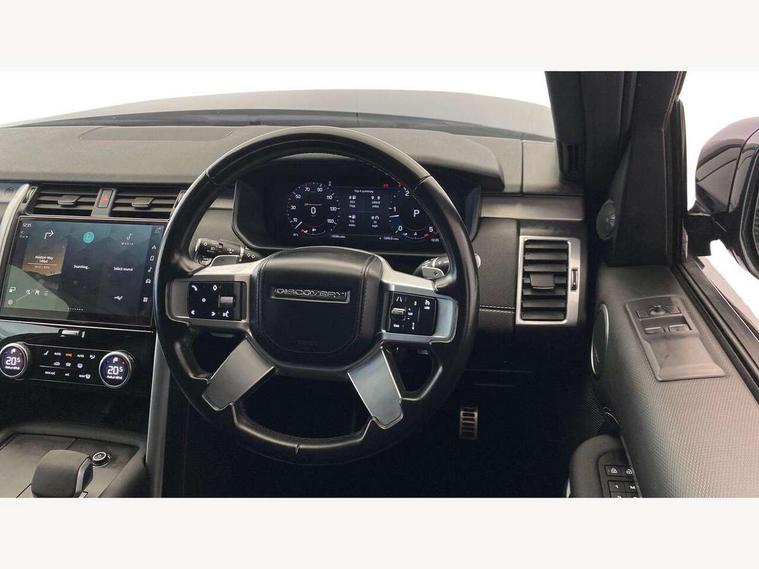11.4" touchscreen, 3D surround camera, Adaptive cruise control, Blind spot assist, Driver condition monitor, Electric power assisted steering (EPAS), Front and rear parking aids, Lane keep assist, Pivi pro connected, Power inner tailgate, Rear collision monitor, Rear traffic monitor, Remote, Remote boot release, Speed proportional steering, Sport shift selector, Traffic sign recognition adaptive speed limiter, Trip computer, Tyre pressure monitor, Wade Sensing, Android Auto, Apple CarPlay, Digital Audio Broadcast radio-DAB, Dynamic volume control, Front and rear 12V with front USB incl. USB C in centre console, USB C in central stowage, USB A and C in UIP, 2 USB C, 1 USB A in R2 and 2 USB in R3, Meridian surround sound system - 14 speaker + subwoofer, 18 channel amplifier, 700W, Acoustic laminated windscreen, Animated directional indicators, Auto dimming rear view mirror, Automatic headlight levelling, Centre high mounted stop light, D300 badge, Darkened LED tail lights, Electric heated/power fold memory door mirrors with approach lights and auto dimming driver side, Electric windows with one touch open/close and anti-trap, Heated rear window, Heated windscreen, Matrix LED headlights with signature DRL, Metal treadplates with R-Dynamic branding, Obscured row 2 and row 3 windows, Privacy glass, Puddle lights, Rain sensitive windscreen wipers, Rear fog lights, Rear wash wiper, Variable intermittent wiper, Central hinged twin lidded storage, Electric adjustable steering column, First and second row door bins, Fixed bulkhead behind row1, Footwell lights, Front passenger seat ISOFIX points, Glovebox storage, High sided rubber mats, In-facia storage, Leather steering wheel, Loadspace hooks, Loadspace light, Loadspace rubber mat, Lockable glove box, Lower centre console storage, Luggage tie downs in loadspace, Multi function steering wheel, Overhead lighting console, Premium cabin lighting, Rear isofix, Shopping bag hook, Third row storage, Twin front cupholders with cover, Two zone climate control, Under floor stowage, Windsor leather upholstery, Online pack with data plan - Discovery, R-dynamic black exterior pack - Discovery HSE, Customer configurable autolock, Electronic traction control, Emergency braking, Front side airbags, Power operated child locks, Seat belt reminder, Immobiliser, Intrusion sensor, Keyless entry system, Locking wheel nuts, Perimeter and volumetric alarm, Remote central locking, 12V power sockets, ABS and EBA, Adaptive dynamics, Brake pre-fill technology, CBC - (Cornering brake control), Dynamic stability control, Electronic air suspension, Electronic brake force distribution (EBD), Front axle open differential, Gradient acceleration control, Hill Descent Control, Hill launch assist, Particulate filter (DPF), Push button start, Roll stability control, Torque vectoring brake, Trailer stability assist, All terrain tyres,