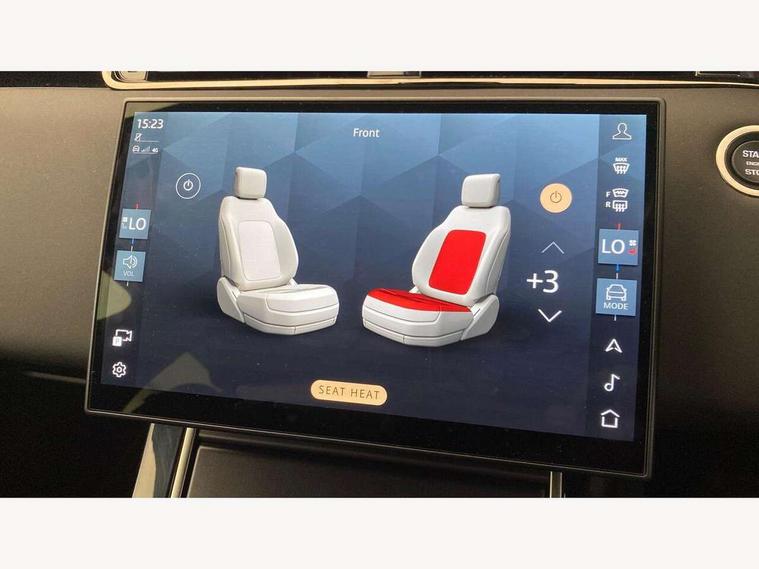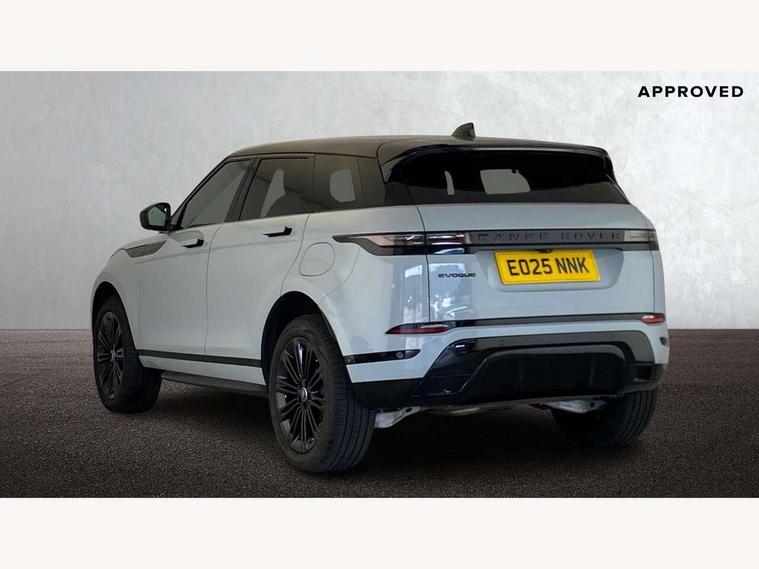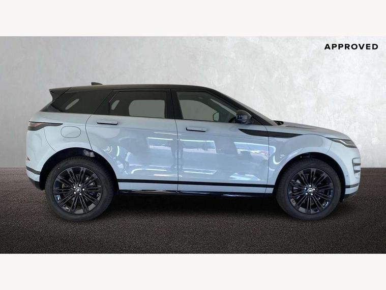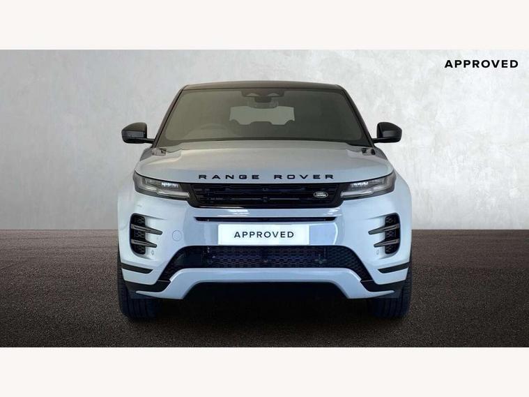 11.4" touch screen, Adaptive cruise control, Android Auto, Apple car play, Blind spot assist, Bluetooth connectivity, Brake pad wear indicator warning light, Driver condition monitor, eCall emergency system, Eco mode, Electronic power assisted steering (EPAS), Front and rear parking aid, InControl remote, Interactive driver display, Land Rover InControl apps, Lane keep assist, Pivi pro connected includes diamond pivi variant, smart settings, connected navigation pro, nuance speech licence, Powered tailgate/boot lid, Rear collision monitor, Rear traffic monitor, Traffic sign recognition with adaptive speed limiter, Voice control system, Wireless device charging, All terrain progress control, Diesel exhaust fluid (DEF) large tank, Efficient Driveline, Large fuel tank, Passive suspension, Terrain Response 2, Digital Audio Broadcast radio-DAB, Steering wheel mounted controls, Acoustic laminated windscreen, Auto headlights, Automatic headlight levelling, Electric windows with one touch open/close and anti trap, Flush deployable exterior door handles, Front and rear recovery eyes, Heated rear window with timer, Heated washer jets, Heated windscreen, Pixel LED headlights with signature DRL and LED tail Lights, Power fold, auto-dimming, heated door mirrors with approach lights and auto dimming driver side, Rain sensing windscreen wipers, Rear animated directional indicators, Rear fog lights, Rear side wing doors, Rear wiper, Side repeater indicators in mirror, Tailgate spoiler, Third brake light, Winter wiper park position, 14 way driver memory electric front seats with 2 way manual headrests + 4 way lumbar support, bolsters, 40:20:40 split folding rear seats with centre headrest and armrest, Ambient interior lighting, Bright metal pedals, Carpet mats, Chrome tread plates with range rover branding Includes stainless steel loadspace scuff plate with etched graphic, Customer configurable single point entry, Electrically adjustable steering column with memory function and easy entry/exit, Front and rear cupholders, Heated steering wheel, Isofix system on outer rear seats, Overhead lighting console, Overhead stowage for sunglasses, Passive front head restraints, Rear air vents, Rear head restraints, Satin chrome gearshift paddles, Single passenger seat, Sunvisors with illuminated vanity mirrors, Twin sliding front centre armrest, Online pack with data plan - Evoque, Power socket pack 2 - Evoque, 3 rear 3 point seatbelts, Anti-lock braking system (ABS), Brake hold function, Customer configurable autolock, DSC - Dynamic Stability Control, Electronic brake force distribution, Electronic parking brake, Electronic traction control, Emergency braking, Front and rear seatbelt reminder, Hill descent control, Hill launch assist, Low traction launch, Occupant protection assist, Passenger seat occupant detector, Power operated child locks, Roll stability control, Six airbags - Driver and passenger airbags/driver knee airbag/front side airbag and curtain airbags, Torque vectoring brake, Tyre pressure monitoring system, Alarm, Immobiliser, Intrusion sensor, Keyless entry, Locking wheel nuts,