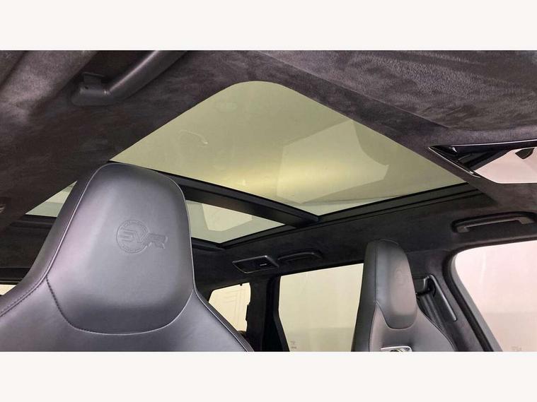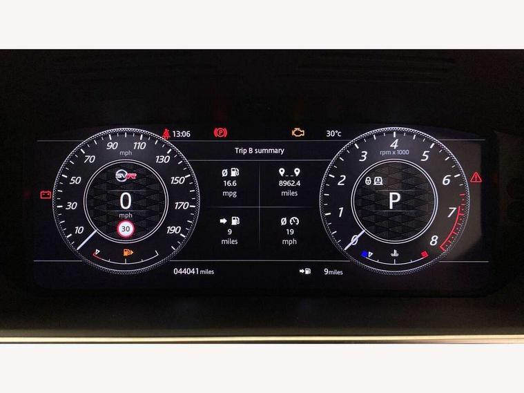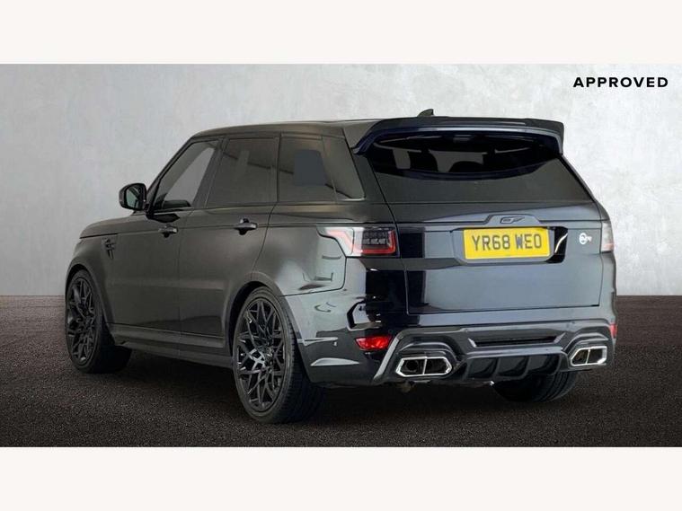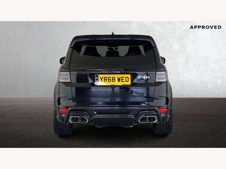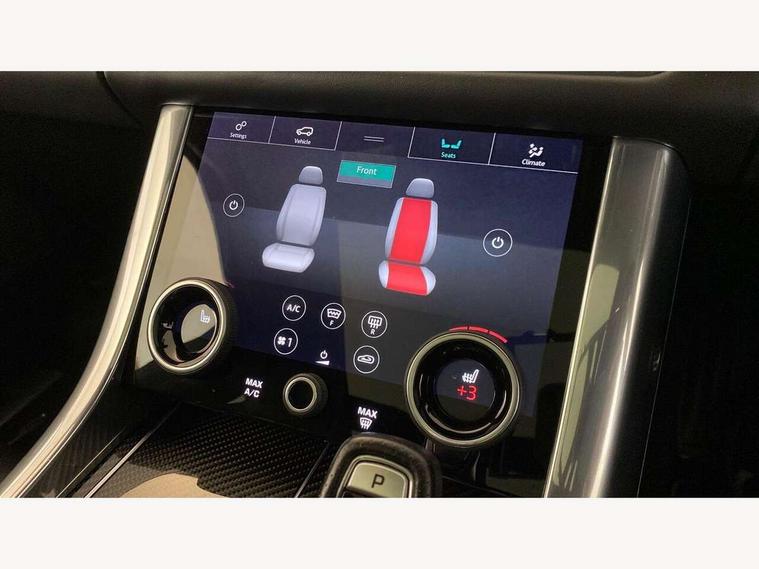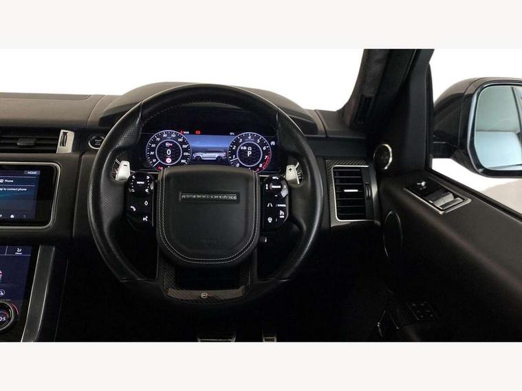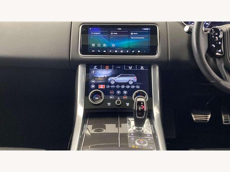Bluetooth telephone connection, Clear exit monitor, Driver condition monitor, Dynamic response, Electric gesture tailgate/boot lid, InControl secure, Mist sensor, Navigation pro system with 10" touch screen, app interface and media storage, Pro services and wifi hotspot, Push button starter, Rear cross traffic alert, Rear park distance control, Speed sensitive power steering, TFT Virtual Instrument Panel, Traffic sign recognition, Trip computer, Adaptive dynamics, All terrain progress control, Electronic differential lock, Sports suspension, Terrain Response 2 with dynamic program, Twin speed transfer box, Bluetooth audio streaming, DAB Digital radio, InControl protect, USB/aux input socket, Adaptive brake lights, Auto dimming door mirrors, Auto dimming rear view mirror, Automatic headlights, Body coloured side sills and bumpers, Electric heated, adjustable, folding door mirrors with memory + approach lamp, Follow me home headlights, Heated rear window, LED rear lamps, Quad tailpipes, Rear wash/wipe, Remote window closing, SVR badge, Trailer stability assist, 16 way driver/passenger electrically adjustable sports seats with memory, 2 way rear head restraints, 4 way lumbar support with memory function, 60/40 split folding rear seat, Aluminium gear shift paddles, Auto air recirculation, Bright metal foot pedals, Climate control memory, Configurable Ambient interior lighting, Driver's footrest, Front and rear cupholders, Front and rear premium carpet mats, Front door storage bin, Front map lights, Front seat back map pockets, Front stowage pocket, Front/rear passenger grab handles, Glovebox, Heated steering wheel, Integrated front head restraints, Isofix child seat preparation, Leather steering wheel, Luggage compartment lighting, Multifunction steering wheel, Performance seats, Pollen filter, Reach/rake electric adjustable steering column + entry/exit tilt away, Rear centre armrest, Roller blind loadspace cover, Sports pedals, Suede cloth ebony headlining, Three 12V accessory power outlets, Two tone perforated semi-aniline leather upholstery, Extended leather pack - Range Rover Sport, InControl connect Pack - Range Rover Sport, 3 point seatbelts on all seats, ABS + EBD + EBA, Auto lock system when vehicle in motion, Auto locking differential, Cornering brake control (CBC), Curtain airbags, DSC - Dynamic Stability Control, Dual stage driver/passenger airbags, Electric child locks, Electronic parking brake, Electronic traction control, Front seatbelt pretensioners, Front side airbags, Height adjustable front seatbelts, Hill descent control, Low traction launch, Roll stability control, Seatbelt warning, Torque vectoring brake, Tyre pressure monitoring system, Immobiliser, Intrusion sensor, Keyless entry, Locking wheel nuts, Perimetric and volumetric anti theft alarm, Remote locking, Tracker system,