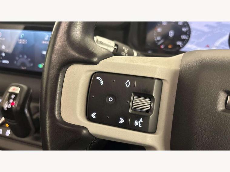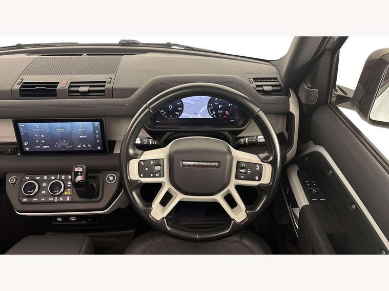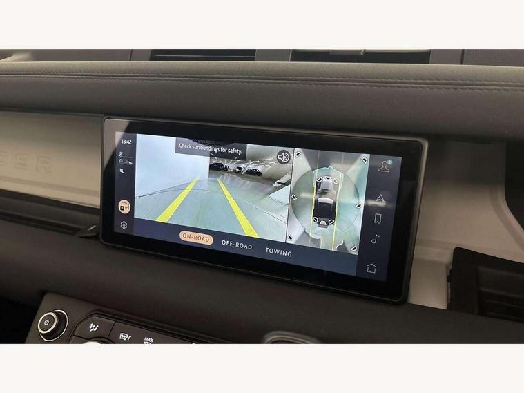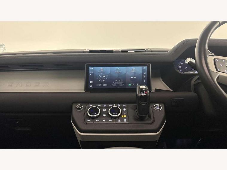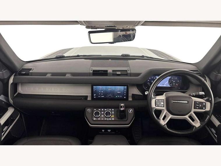 10" touch screen, 360 degree parking aid, 3D Surround Camera with 360 View, 180 Rear View, Front Traffic Detection, Forward Vehicle Guidance, Tow Hitch Assist and clear sight Ground View, Android Auto, Apple CarPlay, Assisted tailgate with soft close, Blind spot assist, Bluetooth system, Clear exit monitor, Click and go integrated base unit, Connected navigation pro, Cruise control + speed limiter, Driver condition monitor, Interactive driver display, Lane keep assist, Less CE Device Charging, PAS, Rear traffic monitor, Traffic sign recognition with adaptive speed limiter, Trip computer, Wade Sensing, Adaptive dynamics, Configurable Terrain Response, Electronic air suspension, Terrain Response, DAB Radio (Digital Audio Broadcasting), Meridian 400w sound audio system with 11 speakers and subwoofer, Pivi pro connected, Auto high beam assist, Automatic headlight levelling, Automatic headlights, ClearSight interior rear view mirror, Electric heated/power fold door mirrors with approach lights and auto dimming driver side, First Edition badge, Folding fabric roof, Front fog lights, Heated windscreen, LED tail lights, Metal tread plates with First Edition branding, Metallic paint, Premium LED headlights with signature DRL, Privacy glass, Puddle lights, Rain sensing windscreen wipers, Rear fog lights, Trailer stability assist, White contrast roof, 12 way heated electric memory front seats with 2 way manual headrests, 12V power socket in loadspace, 3 individual front seats with centre jump seat and folding front centre armrest, 40:20:40 fixed rear seats with centre armrest, Cabin lighting, Carpet mats, Electric reach + rake adjustable steering column, Grained Leather and Robust Woven Textile upholstery, Heated steering wheel, Leather gearshift, Leather wrapped steering wheel with PU DAB, Light oyster morzine headlining, Loadspace Hook, Multifunction steering wheel, Rear headrests, Rear ISOFIX, Sunvisors with illuminated vanity mirrors, Twin front cupholders with cover, Core exterior pack - Defender, Non-smoker package, Online pack with data plan - Defender, 5 x 3 point seatbelts, 6 x 3 point seatbelts, ABS, Cross car beam in Light Grey Powder Coat, Driver and passenger airbags, Emergency braking, ESP + traction control, Hill launch assist, Remote for (e-Call, Optimised assistance call, InControl app, Climate, beep and flash and door), TPMS (Tyre pressure monitoring system), Alarm, Immobiliser, Intrusion sensor, Keyless entry and go, Locking wheel nuts,