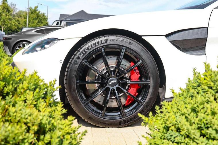 Bluetooth Telephone preparation, Cruise control, Organic electroluminescent (OEL) displays, Rear parking sensor, Satellite navigation system, Servotronic speed sensitive power steering, Trip computer, Sports suspension, Auxiliary input socket, DAB Digital radio, iPod connection, USB connection, Bright headlamp surrounds, Bright tailpipe finisher, Dipped beam Xenon headlights, Electric folding mirrors, Electric front windows, Gloss black front splitter and rear diffuser, Heated door mirrors, Heated rear windscreen, LED rear lamps, Climate control, Driver and passenger seat memory, Front head restraints, Glass ECU, Tech pack - V8 Vantage Coupe, ABS + EBD + EBA, DSC - Dynamic Stability Control, Front side airbags, Hill hold assist, Hydraulic Brake Assist (HBA), Traction control, Tyre pressure monitoring system, Alarm, Immobiliser, Remote central locking + boot release, Tyre repair kit,
