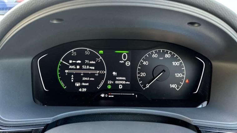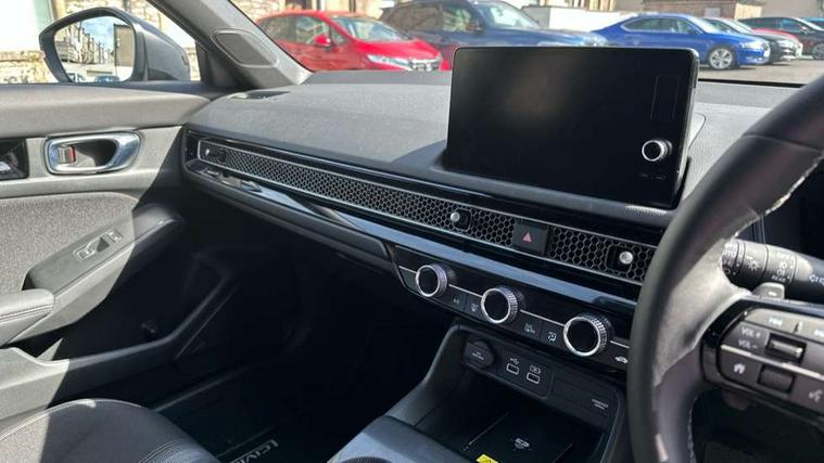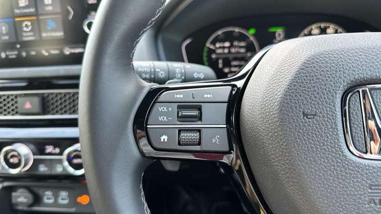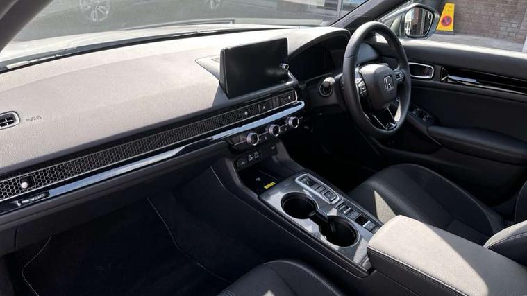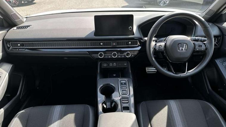 7" Multi information display screen, Adaptive cruise control, Adaptive motion for electric power steering, Adjustable speed limiter, Agile handling assist, BLIS (Blind Spot Information System) with Cross Traffic Monitor, Bluetooth hands free telephone connection, Driving modes, Economy mode, Electric power steering wheel with variable gear ratio steering, Emergency call service, Emergency stop signalling system, Forward collision warning, Front and rear parking sensors, Honda CONNECT with Navigation 9" touchscreen, AM/FM/DAB, Apple Carplay and Android Auto, live traffic info, Honda sensing, Idle stop, Intelligent speed limiter, Lane departure warning system, Lane keep assist, Low speed following, Power meter, Rear parking camera, Road departure mitigation, Smartphone wireless charging plate, Tailgate, Traffic jam assist, Traffic sign recognition, Wireless apple carplay, Vehicle stability assist, 'Shark fin' mobile antenna, 2x USB Front socket (1 data & 1 charge), 8 Speakers, Digital Audio Broadcast (DAB) Tuner, Front tweeters, Steering wheel mounted audio controls, Aspherical driver door mirrors, Auto dimming rear view mirror, Auto headlight adjuster, Auto headlights, Automatic coming/leaving home lighting function, Automatic rain sensing wipers, Black window frames, Body colour door handles, Electric adjustable heated door mirrors, Electric front and rear windows, Electrically folding door mirrors, Headlight extension black, High beam assist, High level LED brake light, LED daytime running lights, LED front fog lights, LED front turn type, LED Headlights, LED rear lights, Low gloss black window garnish, Material finish grille, Pop up hood, Privacy glass, Rear side wing doors, Rear wiper, Single hidden exhaust pipe, Variable front intermittent wipers, 3 seat bench in 2nd row, 60/40 split folding rear seat, Cargo accessory power socket, Cargo net hooks, Driver and front passenger seat armrests, Driver's electric lumbar adjustment, Driver's seat height adjustment, Dual climate control air conditioning system, Fabric/synthetic leather upholstery, Front accessory power socket, Front map lights, Front/rear courtesy lights, Glovebox light, Heated front seats, Hybrid emblem, Isofix points/i size, Leather steering wheel, Meter Illumination white, Passenger seat back pocket, Platinum chrome interior door handles, Rear air vents, Rear head restraints, Rear reading lights, Rear seat centre armrest, Single front passenger seat, Stainless steel sports pedals, Sunvisors with illuminated vanity mirrors, Tilt/telescopic adjustable steering wheel, Tonneau cover, Trunk light, USB Rear number 2 x charge, White ambient roof light, 3x3 point rear seatbelts, ABS+EBD+Brake assist, Airbags - driver and front passenger, Airbags - Knee (AS), Airbags - Knee (DR), Anti-whiplash front headrests, Brake hold function, Collision mitigation braking system, Collision mitigation throttle control, Deflation detection system, Driver SRS airbag (single stage inflation), Electronic parking brake with auto hold, Front and rear curtain airbags, Front and rear seat belts with emergency locking retractor (ELR), Front centre airbag, Front side airbags, Hill start assist, Low speed brake system, Manual child lock in rear doors, Passenger airbag deactivate switch, Rear airbags, Regenerative braking/deceleration paddle control, Immobiliser, Mirrors and windows key fob, Remote central locking with 2 jack knife keys, Security alarm, Selectable door unlock, Smart entry + Smart start, Superlocking, Tilt sensors, Ultrasonic security sensor, Tyre repair kit,