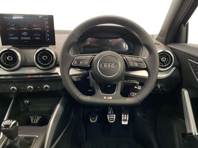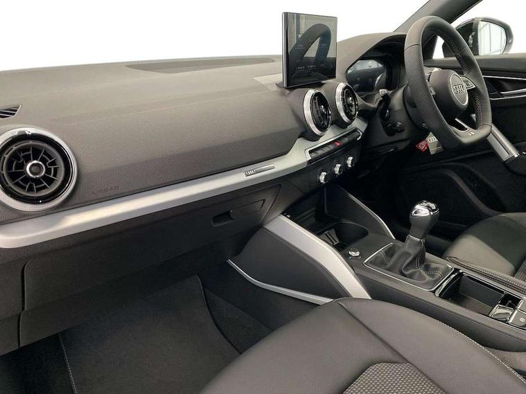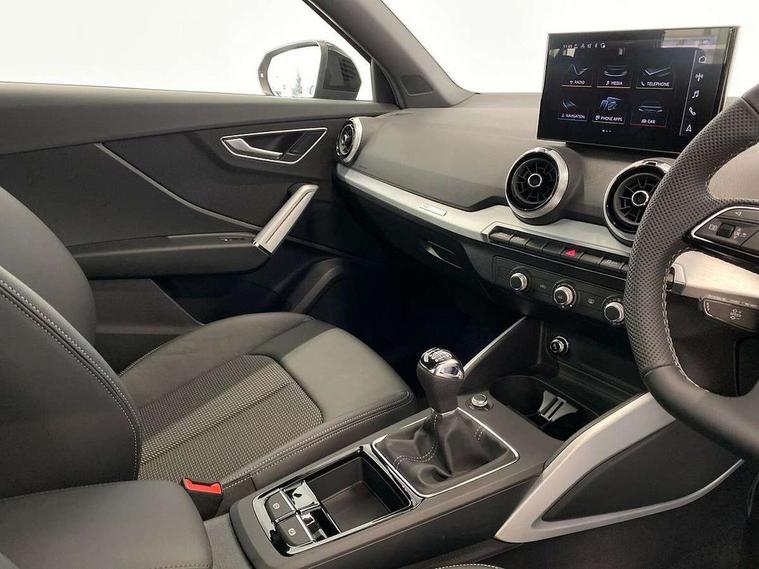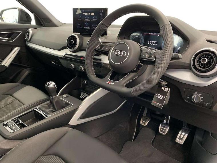 3D map display, Audi connect navigation and infotainment includes innovative services, Audi connect remote and control connects your vehicle to your smartphone, Audi drive select: power steering assistance + engine (modes: comfort, auto, dynamic, individual), Audi smartphone interface - Apple carplay/Android Auto, USB connect, 2xSDXC card readers, voice control for navi, telephone, music and 3rd party apps, Audi virtual cockpit, Automatic start/stop system with recuperation, Bluetooth interface includes bluetooth audio streaming, Camera based traffic sign recognition, Cruise control, Distraction and Fatigue warning, E-call, Jukebox hard drive memory for music (10GB), Lane departure warning, MMI navigation plus with 8.8" touchscreen, Natural voice recognition, Power operated tailgate, Progressive steering, Rear parking sensors, Sport suspension, 6 passive loudspeakers, DAB Digital radio, USB type C port, Audi beam, Auto dimming rear view mirror, Black window trims, Bumper in full body colour paint finish, Electrically adjustable, folding, auto dimming and heated door mirrors with integrated LED side indicators, Front windscreen with grey tinted sunband, LED daytime running lights, LED headlights with dipped beam, high beam, position lights, indicators, LED rear lights, LED third brake light, Privacy glass - dark tinted rear and rear side windows from B-pillar backwards, Rear side wing doors, Rear wiper, Variable front intermittent wipers, Wheel arch trims in manhattan grey, 12v socket in front, 3 seat bench in 2nd row, 3 spoke flat bottomed multi-function leather sport steering wheel, 4-way electric lumbar support for front seats including manual seat height adjustment for both front seats, 60/40 split folding rear seat bench, Black carpets, Black cloth headlining, Front and rear head restraints, Front centre armrest, Front sport seats, Front/rear floor mats, Height/reach adjust steering wheel, Illuminated door sill trims with S logo, ISOFIX child seat mounting in front passenger and rear outer seats, Manual air conditioning, Single front passenger seat, Stainless steel pedals, Black styling pack - Q2, 3x3 point rear seatbelts, 6 airbags - Front, curtain and front side airbags, Electromechanical parking brake, Electronic stabilisation control including ABS, ASR and EDL, Front passenger airbag deactivation, Hill hold assist, Pre-sense front with pedestrian recognition, Seatbelt monitoring, Tyre pressure warning light with visual and acoustic warning, Warning triangle and first aid kit, Anti theft alarm, Anti theft wheel bolts, Electronically operated child locks, Remote central door locking, Aluminium interior element, Black dashboard, Gloss black centre console, Matt brushed aluminium trim inlays, Tool kit,