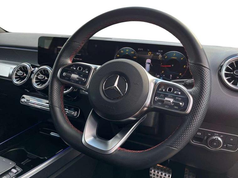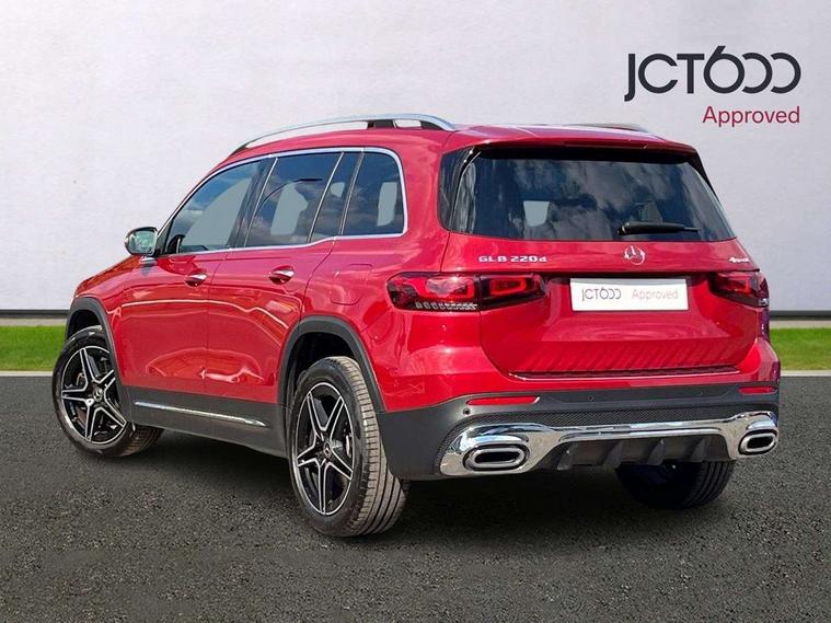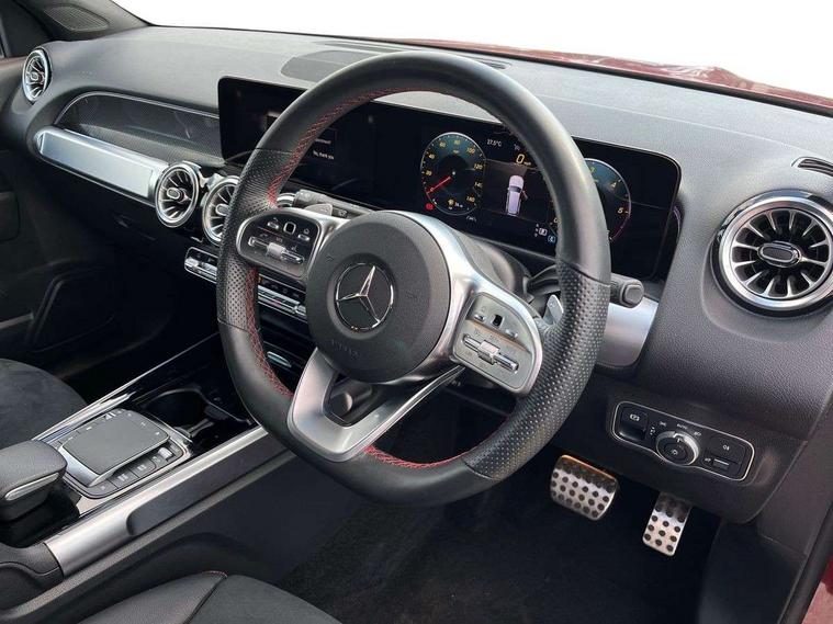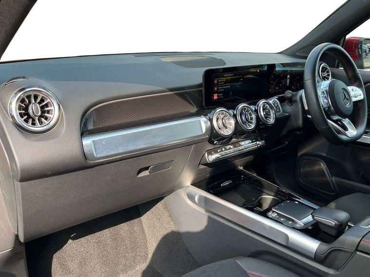 10.25" Digital instrument cluster display screen, 10.25" Digital media screen display, Active lane keeping assist, Attention assist - Monitors steering behaviour and long journey fatigue, Brake pad wear indicator warning light, Car wash mode, Cruise control with limiter, DYNAMIC SELECT with a choice of driving modes (ECO, Comfort, Sport and Individual), ECO start/stop function, Fluid level warning indicator for fuel, oil, coolant and washer fluid, Hard disk navigation, Hey Mercedes Voice activation, Lamp failure indicator, Mercedes me connect including emergency call system, accident recovery, breakdown management and maintenance, Mercedes me remote services, Outside temperature gauge, Owners manual and service booklet in English, Parameter steering system, Pre-installation of private car share, Preinstallation for parking damage notification, Radio aerial integrated into front and rear windshields, Service indicator (ASSYST), Smartphone integration with Apple CarPlay and Android auto, Speed limit assist, Trip computer in multifunction display with current consumption indicator, 23.8 litre AdBlue fuel tank, Comfort suspension, Rear axle multi-link, DAB digital radio tuner, MBUX multimedia system with DAB digital radio and touchpad including satellite navigation, Mercedes Benz sound system (225 W) with 10 speakers, 1 central speaker, speakers on doors, a tweeter on door, one sub woofer + boost amplifier, Pre installation for Mercedes Benz Link, USB (type C) port in front stowage compartment, USB (type C) ports (2) in stowage compartment, Adaptive brake lights, Aerial for GPS, AMG bodystyling door panels black grained with chrome plated inserts, AMG bodystyling front apron with chrome splitter, AMG bodystyling rear apron with diffuser optics and chrome trim element, AMG specific front and rear bumper including underride guard in high gloss chrome, Beltline strips and weather strip in chrome, Body coloured bumpers, Body coloured door handles with chrome insert for keyless entry, Body coloured door mirror caps, Electric adjustable and heated door mirrors with integrated LED side indicators, Exhaust system with dual flow exhaust pipes (non-functional), Front and rear electric windows, Headlamp assist automatic headlamp activation, Heated glass rear windscreen + timer control, High level LED third brake light, Interior mirror with black reading lamps and frameless, LED high performance headlamps with integrated LED daytime running lights, LED tail lamp, Polished aluminium roof rails, Privacy glass with dark tinting on rear side windows and rear window, Radiator grille with pins in chrome and single louvre with chrome insert, Rain sensor windscreen wipers, Rear fog lamp, Rear side wing doors, Rear wiper, Two visible tailpipe trim elements exhaust, 3 seat bench in 2nd row, 3 spoke multifunction sport steering wheel in nappa leather, Air conditioning - Two zone thermotronic luxury automatic climate control with display, AMG sports pedals with brushed stainless steel surfaces and black rubber studs, Artico man-made leather/Microcut microfibre upholstery with red contrast stitching, Automatic child seat recognition sensor, Black floor mats with AMG lettering, Black roof lining, Fore/aft adjustment rear seats, Freight packaging with tie-down hooks, Front centre armrest with stowage, Front door sills with illuminated changeable cover, Front passenger grab handle with brushed side silver chrome, Galvanished gear shift paddles on steering wheel, Heated front seats, Height/reach adjustable steering column, Interior lighting - 64 colour Ambient lighting, Luggage net on driver/front passenger seat backrest, Net in front passenger footwell, Rear armrest with two integral cup holders for drinks, Rear seat easy entry, Single front passenger seat, Sports seats with adjustable head restraints, Stowage compartment in centre console, Stowage compartment with retractable cover, Third row of seats for two people on rear seat, Touchpad on center console, Twin front cup holders, Two outer rear seat isofix and top tether child seat fixing points, Interior lighting with light and sight pack - GLB, Keyless go comfort pack - GLB with easy pack tailgate, Mirror pack - GLB, Off-road engineering package - GLB, Parking pack - GLB, Seat comfort package - GLB, 3 rear 3 point seatbelts, Active bonnet pedestrain safety measure which detects an impact and raises bonnet by 65mm, Active brake assist includes forward collision warning system with autonomous braking, Adaptive brake assist with hold function and hill start assist, Airbags - kneebag for driver, Anti-lock braking system (ABS) with brake assist, Childproof locks manually operated for rear doors and electrically operated for rear power windows, Crash responsive emergency lighting, Curve dynamic assist, Driver and front passenger head and sidebags, Driver and front passenger windowbags, Dual stage driver and front passenger airbags, Electronic parking brake, Electronic stability programme with acceleration skid control, Front and rear seatbelt reminder, Front brake callipers with Mercedes Benz lettering, Front passenger seat occupancy sensor, Perforated and ventilated front brake discs, Tyre pressure monitoring system, Warning triangle and first aid kit, Guard 360 degree vehicle protection - Anti theft alarm system, tow away protection with visual, acoustic warning and alarm, Interior monitoring system, KEYLESS-GO Spanner communicates with the vehicle within two metres of the door, Remote central locking and crash sensor with emergency opening function, Thatcham category 1 alarm system with immobiliser and interior protection, Vehicle key with decorative surround in chrome, Black air vents with chrome surround, Carbon structure trim, 19" AMG 5 twin spoke light alloy wheels painted in high gloss black with high sheen finish, Summer tyres, Tirefit tyre sealant kit,