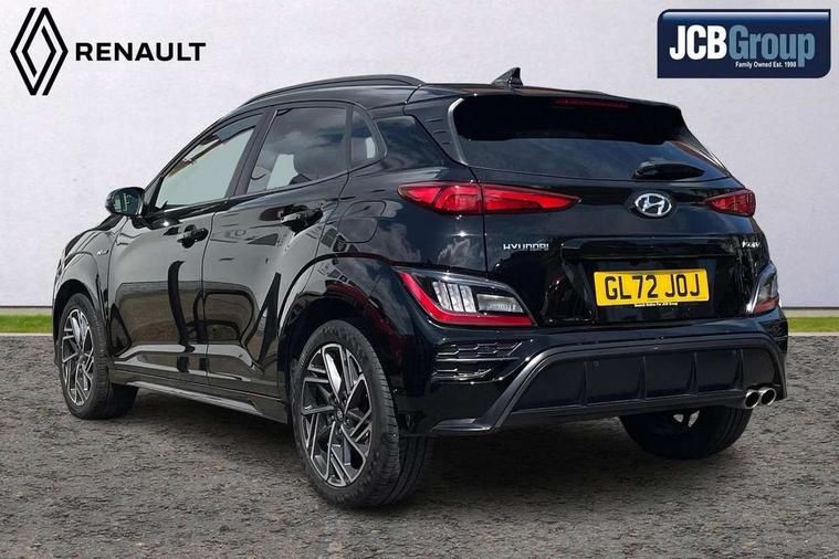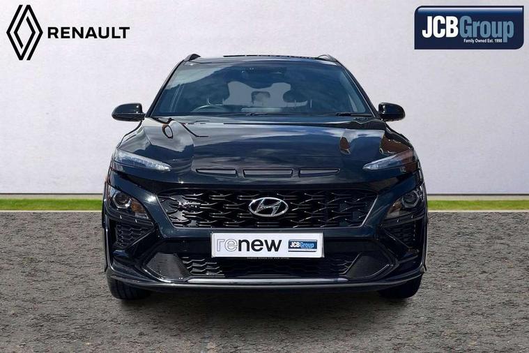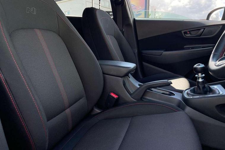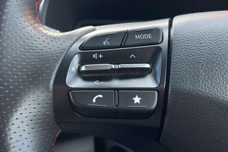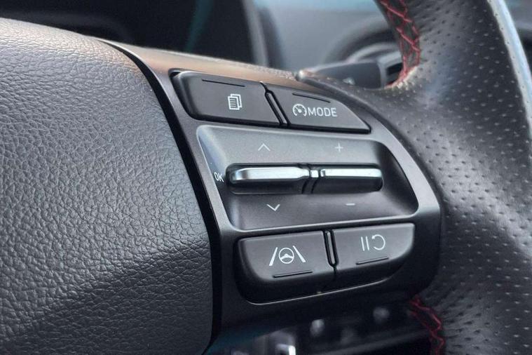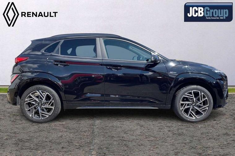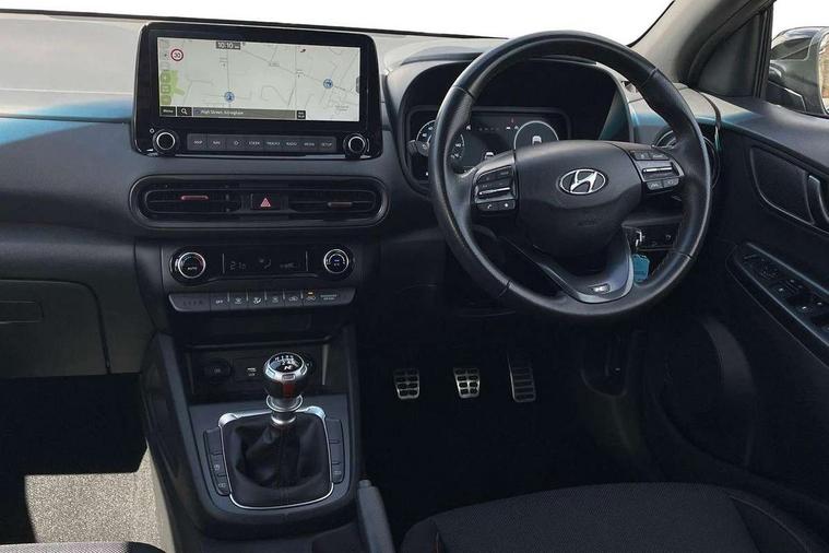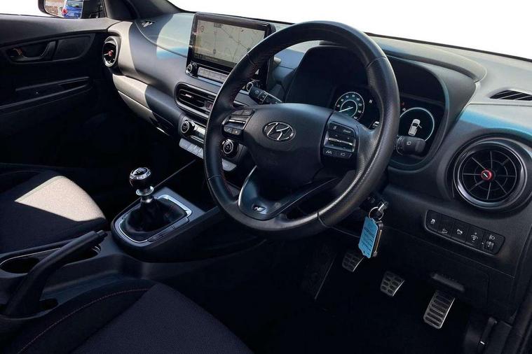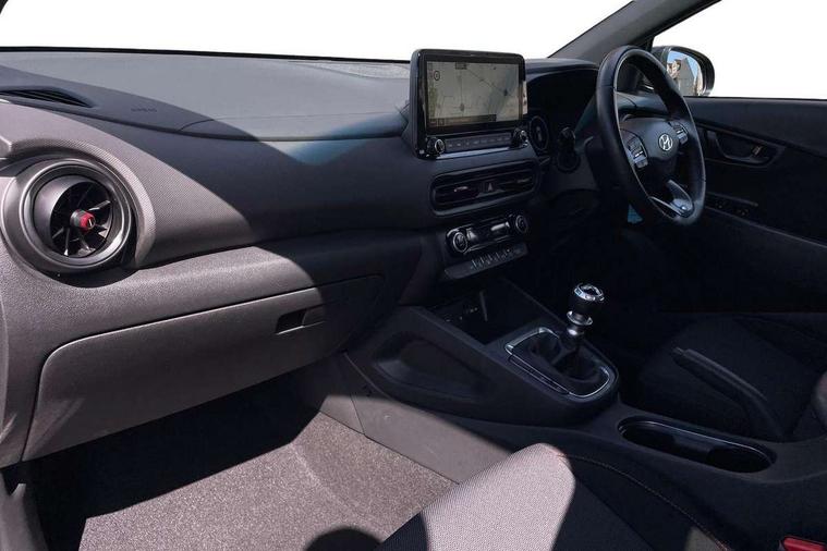 10.25" touchscreen centre console display satellite navigation with live services and mapcare, Bluetooth connectivity, Cruise control + speed limiter, Digital clock, Driver attention warning, Driver supervision instrument cluster with 10.25" LCD display, eCall emergency call system, Forward collision avoidance assist with pedestrian detection, Lane follow assist, Lane keep assist, Leading vehicle departure alert (LVDA), Parking system with rear camera and guidance system, PAS, Phone connection with apple carPlay and android auto, Rear parking sensor, Roadside assistance, Windscreen washer fluid sensor and warning indicator, Wireless phone charging pad, 6 speed intelligent manual transmission, Front and rear USB ports, Krell premium audio system with 8 speakers including external amplifier and subwoofer, RDS and Digital DAB, Steering wheel mounted audio/phone controls, Auto dimming rear view mirror, Automatic headlights with dusk sensor, Automatic windscreen wipers with rain sensor, Black radiator grille, Body colour bumpers, Body colour door mirrors and handles, Body colour side cladding, Body coloured garnish, Door mirror integrated indicators, Electric front/rear windows with drivers one touch/anti-trap, Electrically adjustable and heated door mirrors, Halogen headlights, LED daytime running lights, LED rear lights, Positioning Lights - LED, Power folding door mirrors, Privacy glass - Rear windows and tailgate, Rear roof spoiler with integrated LED brake light, Rear side wing doors, Rear skid plate - silver, Rear wiper, Roof rails, Solar glass with front door glass and windscreen shade band, Windscreen auto defog function, 12V power outlet in front console, 3 seat bench in 2nd row, 60/40 split folding rear seat, Adjustable head restraints, Air conditioning climate control, Ambient lighting, Centre interior light, Cloth upholstery, Door scuff plate, Driver and passenger front seat pockets, Driver's seat electric lumbar support, Driver's seat height adjustment, Driver/passenger sunvisors and illuminated vanity mirrors, Front interior light, Front passenger seat manual adjustments, Height/reach adjustable steering column, Isofix rear child seat fastenings, Leather wrapped steering wheel and gear knob, Luggage compartment lighting, Luggage hooks, Luggage net, Metal paint effect interior door handles, Metal pedals, N logo on the gear shift, Parcel shelf, Rear centre console with air vents, Single front passenger seat, Sunglasses holder, Vertical adjustment rear head restraints, Trailer wiring package - Kona, Airbags - front, front side and curtain airbags, Anti-lock brake system (ABS), Childproof rear door locks, Downhill brake control, EBD + Brake Assist, Electronic stability control, Fasten seatbelt reminder, Fixed 3 point for second row centre passenger seatbelt, Front seatbelt pretensioners, Height adjustable front seatbelts, Hill start assist control (HAC), Manual parking brake, Passenger airbag deactivate switch, Rear seat alert, Traction control, Tyre pressure monitoring system, Alarm/immobiliser, Deadlocks, Folding key, Locking wheel nuts, Remote central locking, 18" Alloy wheels,