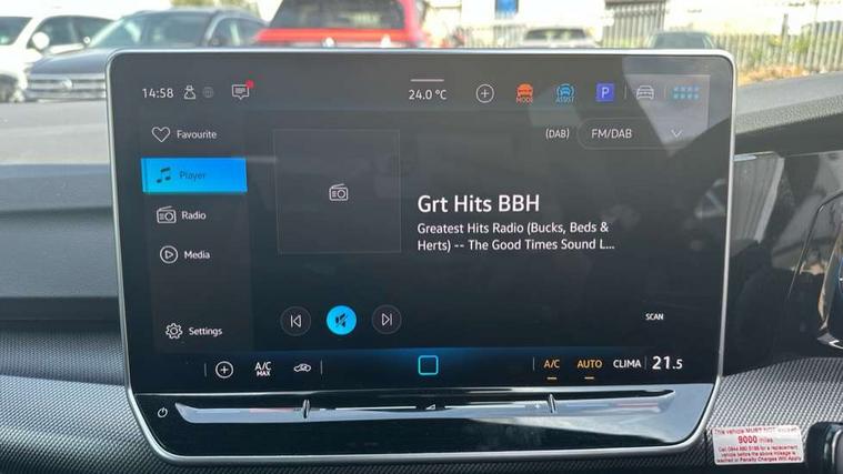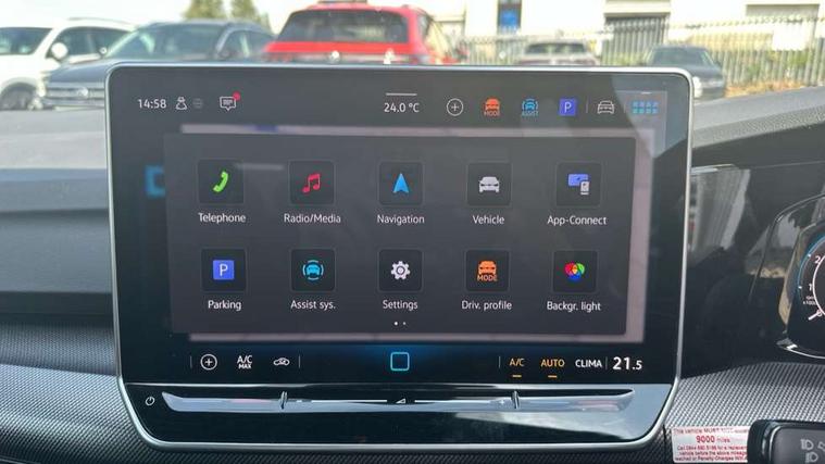 Activated carbon canister, Adaptive cruise control (ACC), Advanced driver attention and drowsiness monitor, Dynamic road sign display, Dynamic steering, E-Sim card for online connectivity, eCall emergency call system, Multi-color Digital cockpit pro, selection of different info profile possible, Multifunction front facing camera for distance control, Navigation system, Oncoming vehicle braking when turning including swerve support, Preparation for light assist system, Speed limiter, Speedo, rev counter, electronic odometer, trip, service interval display, exterior temperature and fuel gauge, Traffic jam assist, Voice enhancer and voice control, Warning signal and warning light for front and rear seatbelts not fastened, We connect plus preparation, We connect preparation, Wireless app connect, Petrol Particulate Filter, Start-stop system with battery regeneration (recuperation - energy recovery during braking), XDS electronic differential lock for improved traction and handling, 2 USB C ports in front, 2 USB charging sockets on the centre console in the rear charging capacity upto 45W, Comfort telephony + wireless charging, without wireless aerial connection, Digital radio reception (DAB), Diversity antenna for FM reception, Gaming platform via car app, Infotainment system with 12.9" display, Mobile phone interface with inductive charging feature, 3rd brake light, Auto headlights, Automatic headlamp activation with Coming home and Leaving home feature, Body colored bumpers in R-Line style, Body colour door handles, Exterior ambient lighting with illuminated door handles, Exterior mirrors convex on the left and aspherical on the right, Front and rear electric windows, Heat insulating windshield made of laminated glass, LED daytime running lights, Rear exhaust tailpipe, Rear fog light on one side and reversing lights on both sides, Rear side wing doors, Rear windscreen washer and wiper with interval delay, Remote electrically foldable door mirrors, puddle lights and reverse activated passenger's door mirror, Welcome light with surround lighting, 12V socket in front centre console, 12V socket in luggage compartment, 3 rear head restraints, 3 seat bench in 2nd row, Ambient lighting with 30 colour incl. LED light unit in front footwell with selectable light colour, Brushed stainless steel pedals, Carpet mats, front and rear, Chrome plated radiator grille inserts, air vent surrounds and light switch surrounds, Front centre armrest, Integrated front head restraints, ISOFIX anchors for child seats on outer rear bench seats and on front passanger seat compatible for i-Size, Leather gearshift handle, Luggage compartment lighting, Premium sports seats in front, Rear cupholder and loadthough, Single front passenger seat, Soul black instrument panel, Split folding backrest with centre armrest and unsplit rear seat bench, Storm grey roof lining, Sun visors with illuminated vanity mirrors, 3 point height adj front seatbelts + pretensioners, 3 rear three point seatbelts, ABS, Autonomous emergency braking front assist with pedestrian and cyclist monitoring, Child locks on rear doors, Driver and front passenger airbag with front passenger airbag deactivation, Electronic parking brake with auto hold, ESC (Electronic Stability Control), Extended pedestrian protection measures, Rear disc brakes, Two tone horn, Tyre pressure loss indicator, Volkswagen roadside assistance, Anti theft wheel bolts, Preparation for alcohol interlock, Decorative inserts carbon grey for dashboard and front door trim panels,