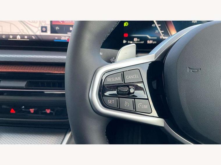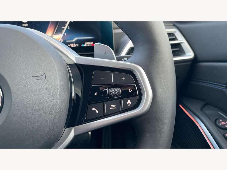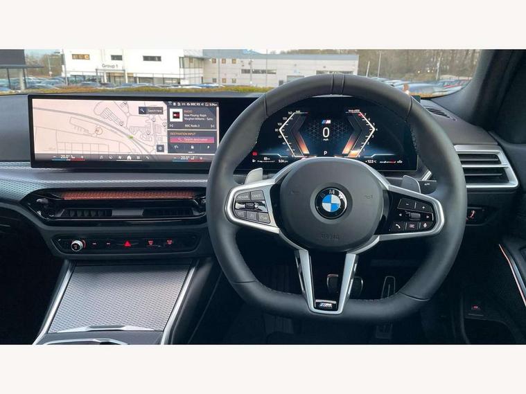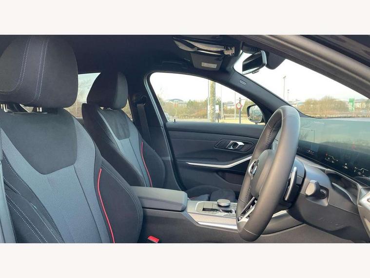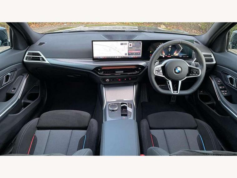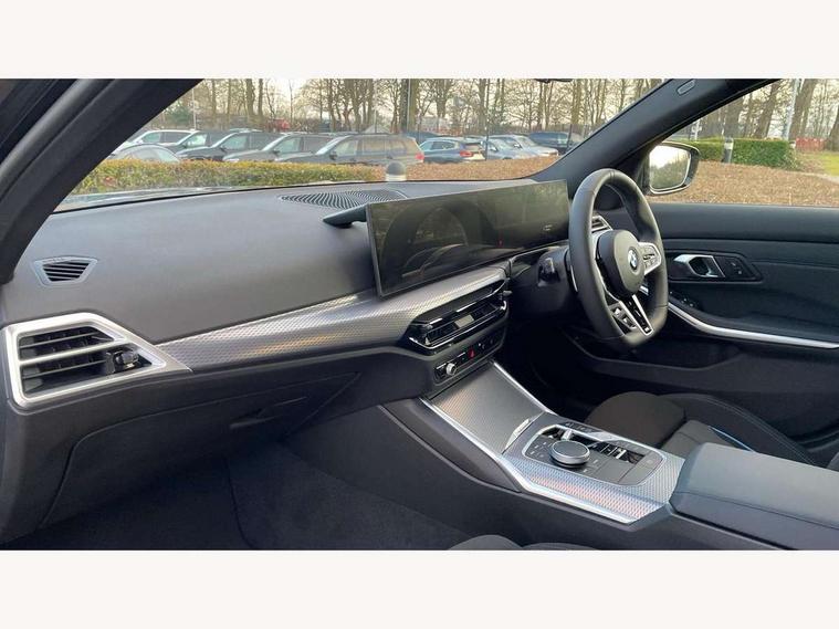 Active guard plus, Attentiveness assist, Automatic Start/stop button, Bluetooth Wi-Fi interface, BMW iDrive, BMW Teleservices, ConnectedDrive Services - last state call, Live cockpit plus with Navigation + 12.3" instrument display + 14.9" display, Intelligent voice assist, 2 USB, 4G LTE connect, Oil sensor for level and grade, Personal e-SIM, Shifting point display, Variable sport steering, Double joint spring strut front axle, Fuel tank breather system, Sport automatic transmission with steering-wheel mounted gearshift paddles and launch control, DAB tuner, 3rd brake light, Auto dimming rear view mirror, Automatic headlight beam throw control with load dependent regulating reaction, dynamic compensation of braking dive and acceleration squat, Bi-LED Low and high beam headlights, BMW emblem, engine compartment lid and tailgate, Body colour roof fin, Door sill strips, Electric windows - front and rear, with open/close fingertip control, anti-trap facility and comfort closing, Fading support, Follow me home headlight function, Front and rear bumper system with replaceable deformation elements, Front apron plastic in body colour, Fuel filler flap - right rear in body colour, Heat protection glazing on front windows and windscreen, Heated washer jets, High gloss chrome kidney frame with high gloss black kidney struts, LED daytime running lights, LED rear lights, LED turn indicator, Licence plate panel integrated into front bumper and tailgate, M high gloss shadow line exterior trim, Matt black B-pillar finsher, Matt black window recess cover, One piece front bumper cover including towing eye cover in body colour, Rain sensor with automatic headlight activation, Rear boot, Rear side wing doors, Reversing lights, Side frame decorative moulding black matt, Trailer stabilisation logic, Visible exhaust tailpipe finisher, Welcome lights in interior and door handle area, 12V power socket in front storage compartment, 2 front cupholder in centre console with clamping elements and matt black inlay, 3 seat bench in 2nd row, 3 spoke M Sport multifunction flat bottom leather steering wheel, 3 zone automatic air conditioning, 40:20:40 split folding rear seat with loading system, Anthracite headlining, Armrest integrated in front and rear door trim + front centre console armrest, BMW ID, Cruise control operation in steering wheel, Driving experience mode switch, Folding rear centre armrest with 2 cupholders, Front and rear headrests, Front and rear velour floor mats, Front footwell lighting, Front reading light, Heated front seats, Height adjustable mechanically and infinitely variable steering column, Illuminated armrest storage compartment, Illuminated glove compartment, Illuminated luggage compartment, Lashing eyelets in luggage compartment, Single front passenger seat, Sunvisors with illuminated vanity mirrors and ticket pocket, Toolkit located in luggage compartment, Connected pack professional - 3 Series Saloon/Touring, Interior and exterior mirror pack - 3 Series Touring/Saloon, M sport exterior styling pack - 3 Series Saloon/Touring, Parking assistant pack - 3 Series, 3x3 point rear seatbelts, BMW emergency call, Child locks on rear doors, Crash sensor activating of airbags, Unlocking doors, hazard warning lights, fuel cut off, interior lighting+activation of safety battery terminal clamp, Drive-off assistant, Driver and front passenger with seat occupancy detection for driver's and passenger side, Driver and passenger side airbags, body protection at side and airbags deploy from seat backrests, Dry braking, Dynamic brake control, Dynamic stability control + (DSC+) - Anti-lock Braking System (ABS) with brake assist and cornering brake control + Automatic Stability Control (ASC), Dynamic Traction Control - DTC, Electric parking brake including automatic hold function and automatic release of the parking brake when driving off, Electronic differential lock control (EDLC), Front airbag deactivation, Front airbags for driver and front passenger, Head airbags in 1st and 2nd row, head protection at side, curtain airbags open from headliner above 1st and 2nd row, Plastic fuel tank, Side impact protection, Tyre pressure sensors, Ventilated front and rear disc brakes, Warning triangle and first aid kit, Alarm system, Centre lock switch, Closing system with central locking, Electronic vehicle immobiliser, Locking wheel bolts,