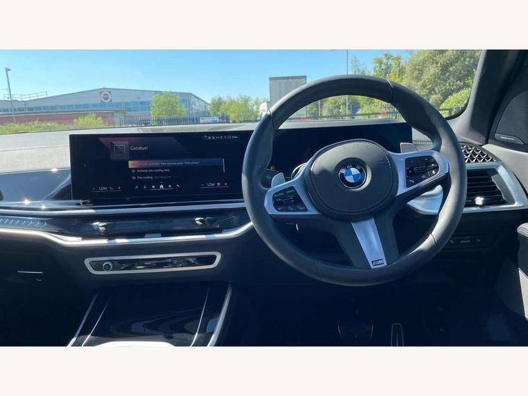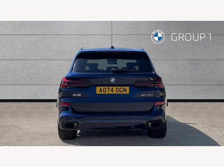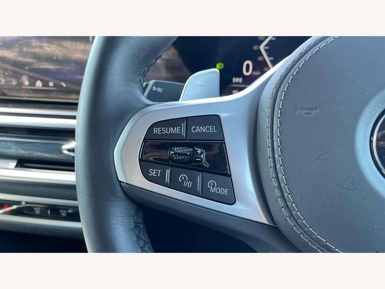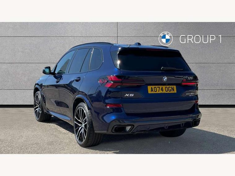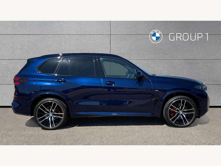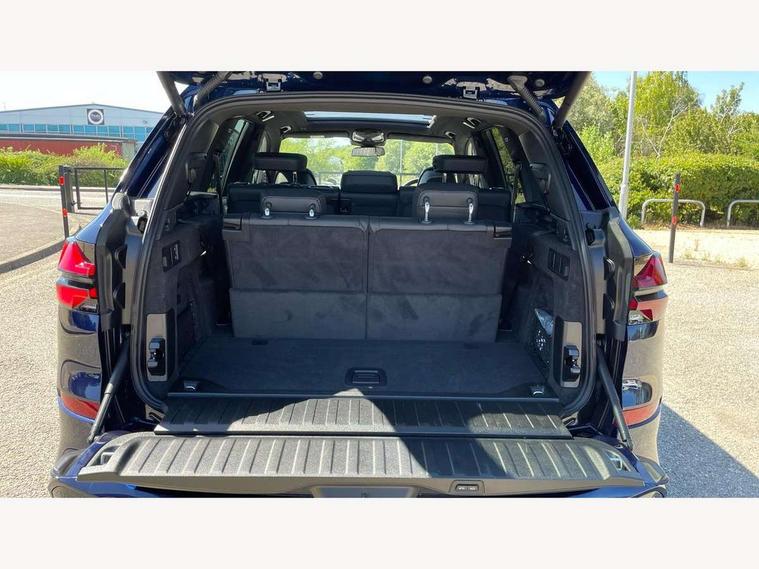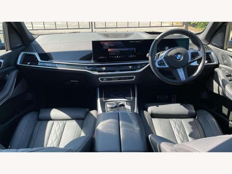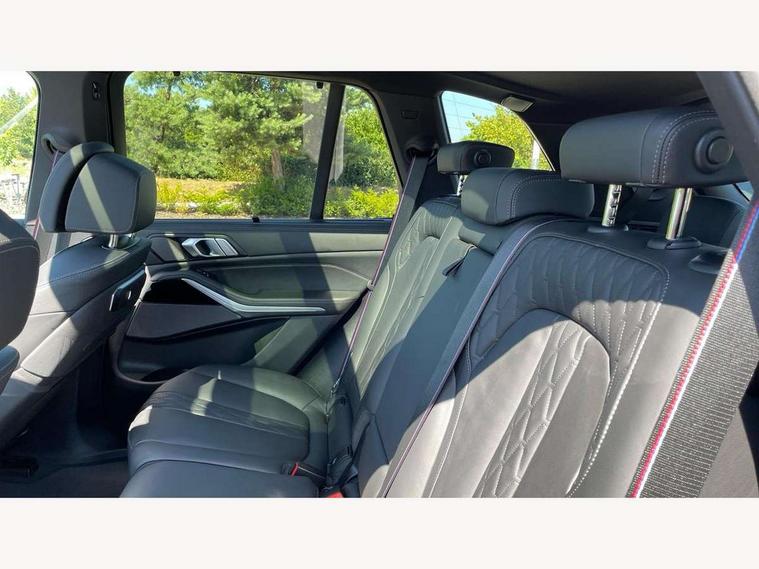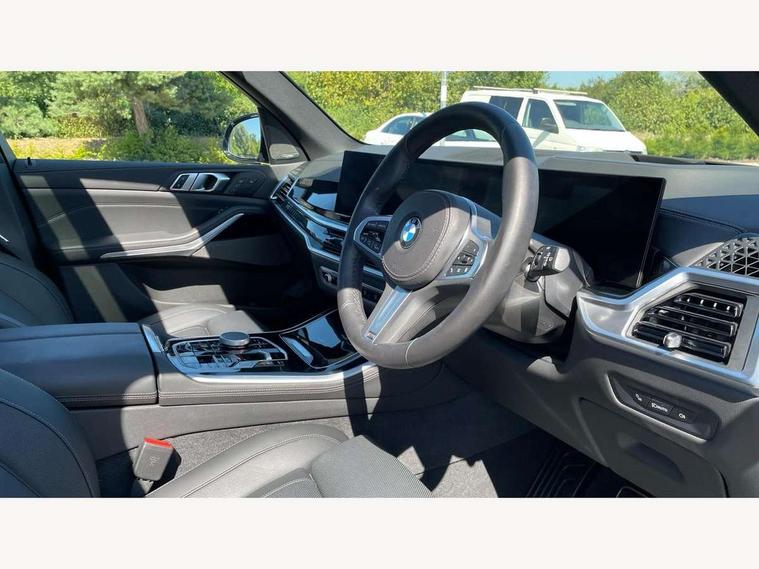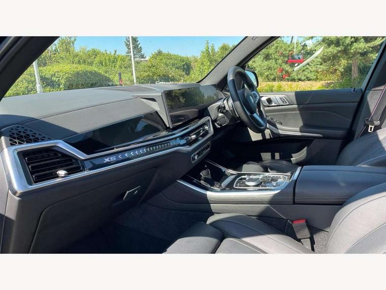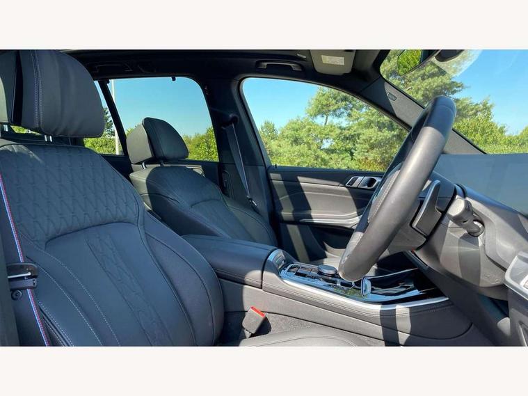 Attentiveness assist, Automatic tailgate operation, BMW ConnectedDrive online services, BMW live cockpit + with curved 12.3 instrument cluster/14.9 central display, nav/Tuner with diversity reception, RDS/4GLTE/remote software upgrade, BMW Recovery system, BMW Teleservices, Condition based service, Cruise control with brake assist, eCall emergency call system, Enhanced bluetooth with wireless charging, Integrated owner's handbook, PAS, Speed limiter, Wi-Fi hotspot, Adaptive 2-axle Front and rear air suspension, Drive performance control with ECO PRO comfort + sport mode, Eight speed steptronic sport automatic transmission and gearshift paddles on the steering wheel, Hi-Fi loudspeaker system, Adaptive LED Headlights, Front and rear electric windows, High beam assistant, High gloss black shadow line roof rails, LED daytime running lights, Rain sensor, Rear side wing doors, Third brake light in rear spoiler, Variable intermittent rear wash/wipe, 12V - Power sockets with 2x centre console and 1x luggage compartment, 2 individual folding 3rd row seats, 3 seat bench in 2nd row, Foldable rear centre armrest with 2 cupholders and storage compartment, Front and rear side armrest integrated into door trim, Headrests for all seats, Luggage compartment separating net, Single front passenger seat, Three spoke sport M leather steering wheel, Velour floormats, Ambient light interior pack in combination with third row seating - X5, Driving assistant pack with radar based driver assistance system - X5, Expanded exterior mirror pack - X5/X5 M, Luggage compartment pack for 7 seater - X5, M aerodynamics pack - X5, 3 rear seatbelts, Active protection, Airbags - driver/front passenger, rear and side, first and second row seats head airbags, front passenger seat airbag deactivation + knee airbag, Anti-lock braking system (ABS), Automatic Stability Control (ASC), Brake energy regeneration, Cornering brake control (CBC), Crash sensor activating central locking release, hazard warning lights, fuel cut off, interior lighting + activation of safety battery terminal clamp, DSC - Dynamic Stability Control, Dynamic Traction Control - DTC, Electromechanical parking brake with automatic drive away release and auto hold function, Electronic brake force distribution, Hill start assistant, M Sport blue painted brake calipers with 'M' designation, Mechanical child proof lock on rear doors, Tyre pressure monitoring system, Tyre pressure sensors, Ventilated front and rear disc brakes, Warning triangle and first aid kit, Alarm system, Closing system with central locking, Comfort access system, Locking wheel bolts,