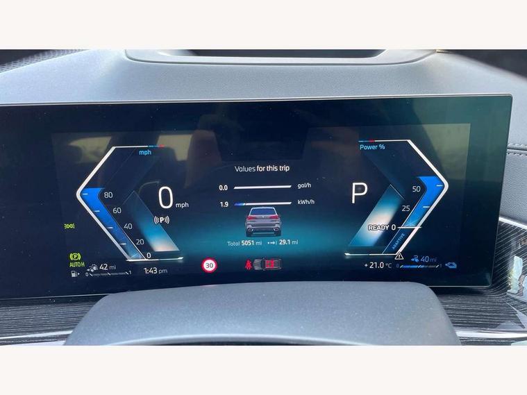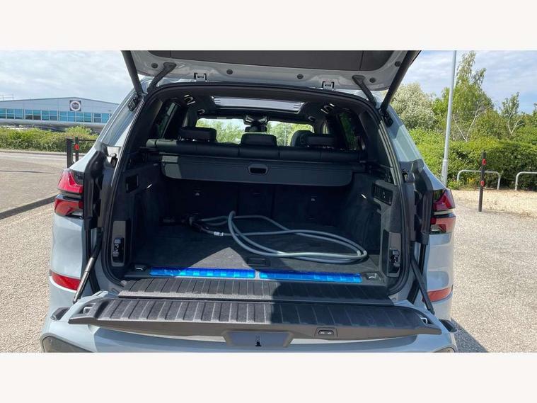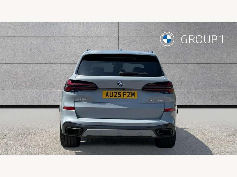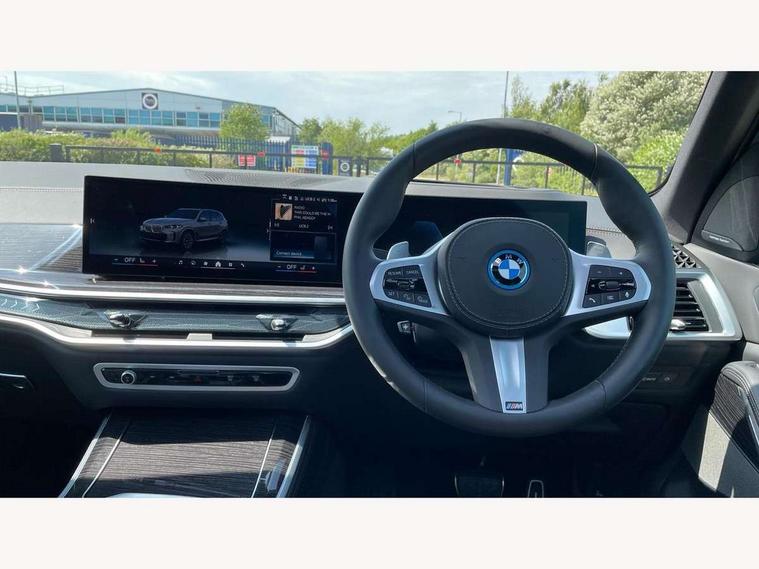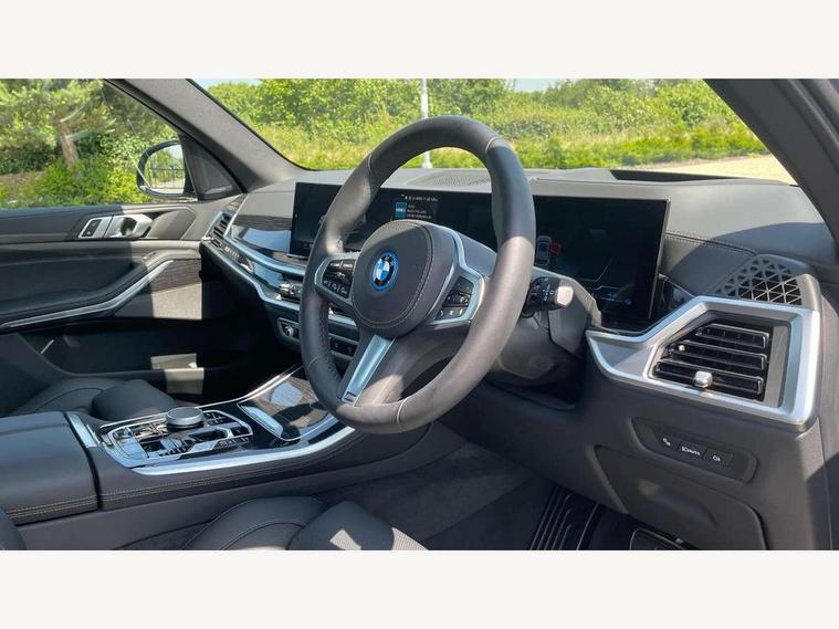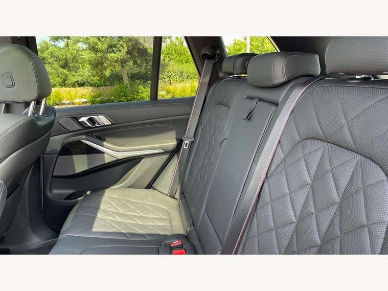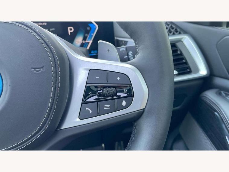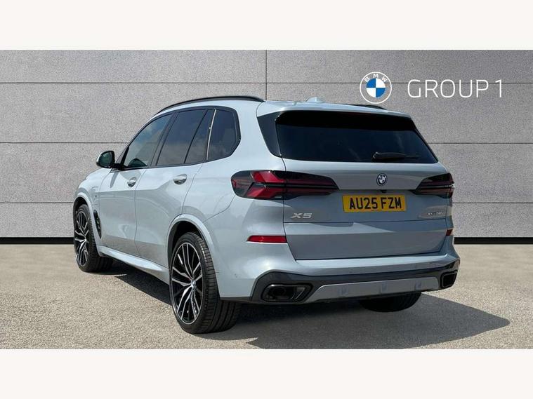 Attentiveness assist, Automatic tailgate operation, BMW ConnectedDrive online services, BMW live cockpit + with curved 12.3 instrument cluster/14.9 central display, nav/Tuner with diversity reception, RDS/4GLTE/remote software upgrade, BMW Teleservices, Condition based service, Cruise control with brake assist, eCall emergency call system, Enhanced bluetooth with wireless charging, Integrated owner's handbook, PAS, Speed limiter, Wi-Fi hotspot, AC Fast charging preparation (Maximum charging power 11kW), Adaptive 2-axle Front and rear air suspension, Drive performance control with ECO PRO comfort + sport mode, Eight speed steptronic sport automatic transmission and gearshift paddles on the steering wheel, Adaptive LED Headlights, Front and rear electric windows, High beam assistant, High gloss black shadow line roof rails, LED daytime running lights, Rain sensor, Rear side wing doors, Third brake light in rear spoiler, Variable intermittent rear wash/wipe, 12V - Power sockets with 2x centre console and 1x luggage compartment, 3 seat bench in 2nd row, Foldable rear centre armrest with 2 cupholders and storage compartment, Front and rear side armrest integrated into door trim, Headrests for all seats, Luggage compartment separating net, Lumbar support with height and depth adjustment in backrest, Single front passenger seat, Three spoke sport M leather steering wheel, Velour floormats, Ambient light interior pack - X5, Driving assistant pack with radar based driver assistance system - X5, Expanded exterior mirror pack - X5/X5 M, M aerodynamics pack - X5, Parking assistant pack - X5, 3 rear seatbelts, Acoustic protection for pedestrians, Active protection, Airbags - driver/front passenger, rear and side, first and second row seats head airbags, front passenger seat airbag deactivation + knee airbag, Anti-lock braking system (ABS), Automatic Stability Control (ASC), Brake energy regeneration, Cornering brake control (CBC), Crash sensor activating central locking release, hazard warning lights, fuel cut off, interior lighting + activation of safety battery terminal clamp, DSC - Dynamic Stability Control, Dynamic Traction Control - DTC, Electromechanical parking brake with automatic drive away release and auto hold function, Electronic brake force distribution, Hill start assistant, M Sport blue painted brake calipers with 'M' designation, Mechanical child proof lock on rear doors, Tyre pressure monitoring system, Tyre pressure sensors, Ventilated front and rear disc brakes, Warning triangle and first aid kit, Alarm system, Closing system with central locking, Comfort access system, Locking wheel bolts,