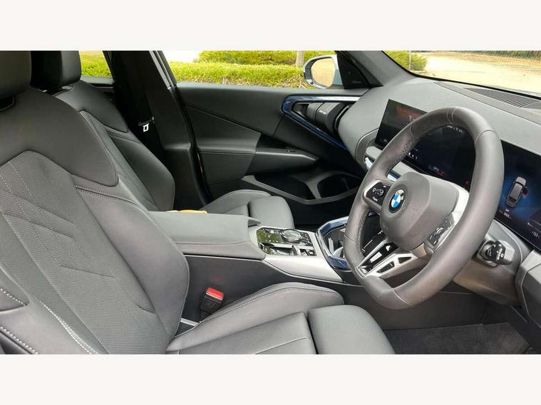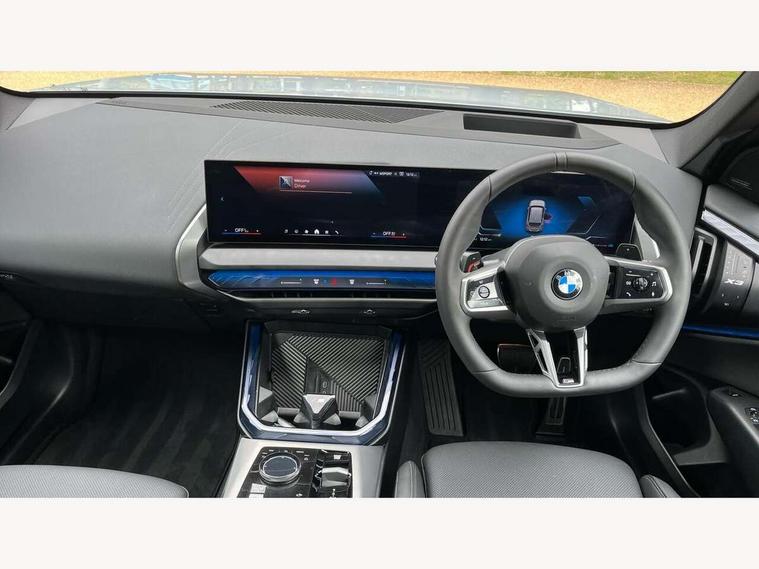 Active guard professional, Attentiveness assist, Automatic operation of tailgate, BMW ConnectedDrive online services, BMW iDrive, BMW Online services, BMW Teleservices, Brake pad wear indicator, Condition based service, Cruise control with brake function + speed limiter, Drive off assistant, Driving Assistant Plus Preparation, Flat tyre monitor, Language version English, My Mode - Personal, Efficient, Sport, Relax, Expressive, Parking assistant, Reversing assist camera, Servotronic system, Variable sport steering, Dynamic stability control, Multiple control arm rear axle, Steptronic transmission with gearshift paddles, Two-joint strut-type front axle with tension strut, DAB tuner, Personal eSim, 4 tailpipe tips, B-pillar trim panel in black high-gloss, BMW badge on front and rear, BMW M-specific front/rear bumpers and side sills, BMW M-specific radiator grille with horizontal bars in Dark Silver and M logo, Daytime running lights, Door handles flush to the surface with lock barrel on driver's side, Dynamic brake lights, Electric adjustable and heated door mirrors, Electric window trap release and convenient opening/closing feature, Headlight beam throw control, Heated rear window, Heated windscreen washer jets, High beam assistant, LED 3rd brake light, LED rear lights, LED tail lights, Locking of the doors, M high-gloss shadowline, M-specific Exterior mirrors, Mirror base and mirror blade in black high-gloss, Mirror triangle in black high-gloss, Rain sensor with automatic headlight activation, Rear side wing doors, Rear wiper, Reversing light, Side window frame in black high-gloss, Windscreen wipers, 12v power socket in front centre console and luggage compartment, 2 x USB Type C ports for charging and data transmission (front centre console) and 2 x USB Type C ports for charging (rear centre console), 3 rear headrests, 3 seat bench in 2nd row, 3 zone automatic air conditioning, 40:20:40 split folding rear seat with loading system, Ambient lighting, Anthracite headlining, Electric adjustable seats with memory function, Floor mats in velour, Footrest and pedals in black plastic, Four grab handles integrated in roof lining, Front armrest with integrated control panel, Front centre console trim in black high-gloss, Front head restraints, Front passenger seat, Front sports seats, Glove compartment, i-Size / ISOFIX attachment points on both outer rear seats, with covers in black, Luggage compartment separating net, M sport leather steering wheel, Multifunction steering wheel, Rear side armrests integrated into door trim, Selector lever with toggle operation, Steering column adjustment, Sun visors with illuminated vanity mirrors, Three upper retaining strap clips integrated into the rear panels of the seat backrests, Through loading system, Two front cupholders and two in the rear center armrest, Wireless charging tray, Connected pro package - X3, Driving assistant package - X3, Interior and exterior mirror package - X3, 3 point seatbelts, Airbag deployment is controlled with respect to the intensity and scope, Anti-lock braking system (ABS), Automatic hold function, BMW emergency call, Brake assist, Brake drying, Brake energy regeneration, Braking readiness, Central airbag, Child locks on rear doors, Cornering brake control (CBC), Crash Sensor - activation of central locking release, hazard warning light and interior lighting, Driver and front passenger front and side airbags, Dynamic brake control, Electromechanical parking brake, Front and rear disc brakes, Head airbags, Integrated braking system, Post Crash Collision Warning with braking function, Trailer stability control, Tyre pressure sensor, Warning triangle, Alarm system, Closing system with central locking, Comfort access system, Locking wheel bolts, Start/stop button with keyless motor start with acoustic drive, Tyre repair kit,