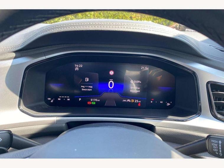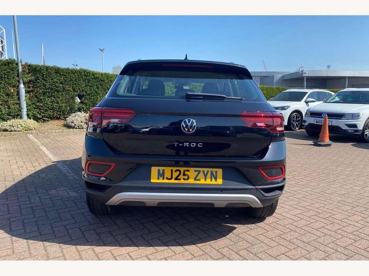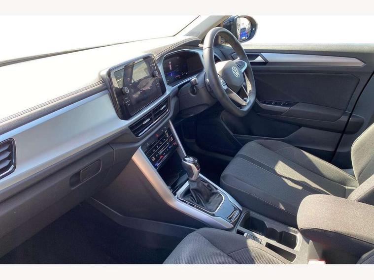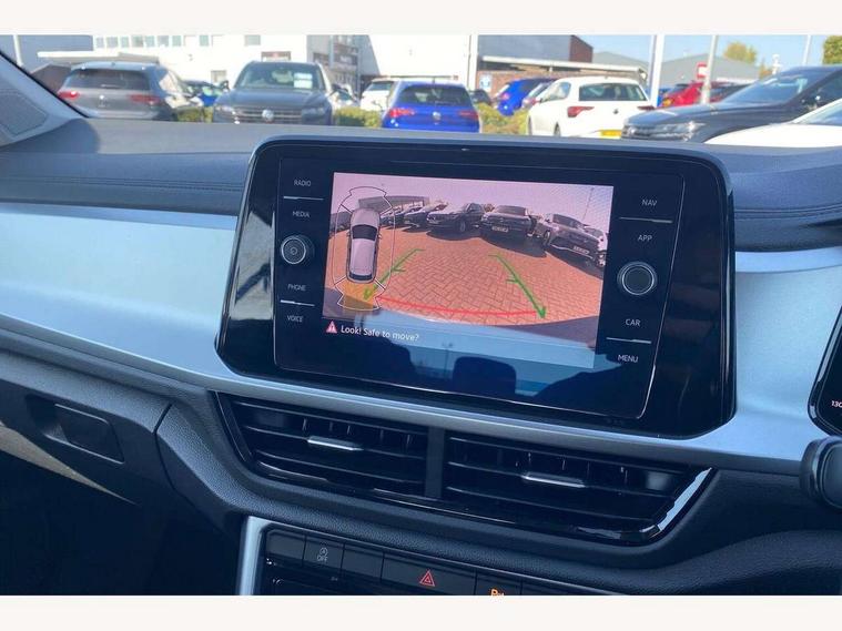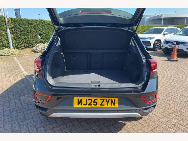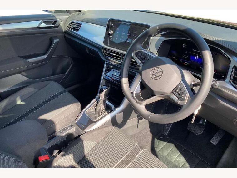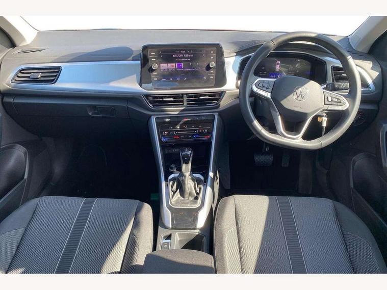 Advanced driver attention and drowsiness monitor, Dynamic road sign display, Emergency call service, Lane keeping system Lane Assist, Mobile phone interface, Modified key software - reduce switch off time for key status change to Long no motion, Online services, Park assist including front and rear parking sensors, Power assisted speed sensitive steering, Service interval indicator, Tailgate/trunk lid release from outside, Think blue trainer driver tips and journey analysis, Warning sound and light for front seatbelts unfastened, Wireless app connect, Battery regeneration during braking, Front shock absorption, Rear shock absorption chassis with increased ride height, Start/stop function with battery regeneration, DAB Digital radio, Diversity antenna for FM reception, Front and rear 6 speakers, Music playback - MP3, WMA and AAC files, Premium USB cable in choice of either Apple or Android smartphone compatibility, SD card slot, Simultaneous pairing of 2 compatible mobile devices, Title and cover art display, We Connect and We Connect Plus functionality, Auto dimming interior rear view mirror, Automatic hazard lights activation under emergency braking, Automatic headlight control with LED separate daytime running lights with coming/leaving home function, Black roof rails, Body coloured bumpers and radiator grille with chrome trim and front fog lamps with chrome bezel, Body coloured exterior mirror housings and door handles, Electrically adjustable and heated door mirrors, Extended roof spoiler, Exterior mirrors aspherical on driver side, convex on front passenger side, External USB type C socket and charging sockets, Front windscreen wiper with intermittent wipe and 4 position delay, Heated rear window, LED 3rd brake light, LED rear combination lamps, LED rear number plate lights, Power windows with comfort operation and circuit breaker, Rain sensor, Rear exhaust tailpipe, Rear fog light on one side and reversing lights on both sides, Rear side wing doors, Rear wash/wipe with intermittent wipe setting, Remote electrically foldable door mirrors, puddle lights and reverse activated passenger's door mirror, 12V power socket in centre console, 3 rear head restraints, 3 seat bench in 2nd row, 4 load lashing points in luggage compartment, Air care climatronic air conditoning system with active combination filter and 2-zone temperature control, Ambient lighting with mirror logo projection, Cloth upholstery, Door and side trim panel in cloth, Drawer under drivers seat, Driver/front passenger seat height adjustment, Front centre armrest, Front comfort sports seats, Front cupholders x 2, Front reading light, Front seat back storage pockets, Glove compartment door with light, Instrument lighting, white adjustable panel illumination, Interior light delay, Isofix child seat preparation, Leather gearshift handle, Load-through provision with cup holder when folded down ('Unsplit rear seat bench, split folding backrest, with centre armrest), Luggage compartment lighting, Lumbar support for driver's and front passengers seat, Non-folding front passenger seat backrest, Single front passenger seat, Storage compartment in left and right luggage area, Storage compartment in rear doors, Storage compartments in driver and front passenger doors, Sunvisors with illuminated vanity mirrors, Variable boot floor, height adjustable and removable, Driver assistance pack without proactive passenger protection - T-Roc Life/Match, 3 point height adj front seatbelts + pretensioners, 3 point seatbelts in outer rear with ECE label, ABS, Child locks on rear doors, City emergency braking and pedestrian monitoring, Driver and front passenger airbag with front passenger airbag deactivation, Driver and front passenger safety-optimised head restraints, Drivers seatbelt reminder, Electronic parking brake, Electronic Stability Control (ESC) inc EDL (Electronic Differential Lock) and ASR (Traction Control), Front and rear passengers curtain airbag system including front side airbags, Front disc brakes, Hill start assist, Predictive pedestrian protection, Rear disc brakes, Two tone horn, Tyre pressure loss indicator, Volkswagen roadside assistance, Alarm with interior protection, Pewter matt decorative inserts for intrument panel, centre console and door panels at the front, Trims for alloy wheels,
