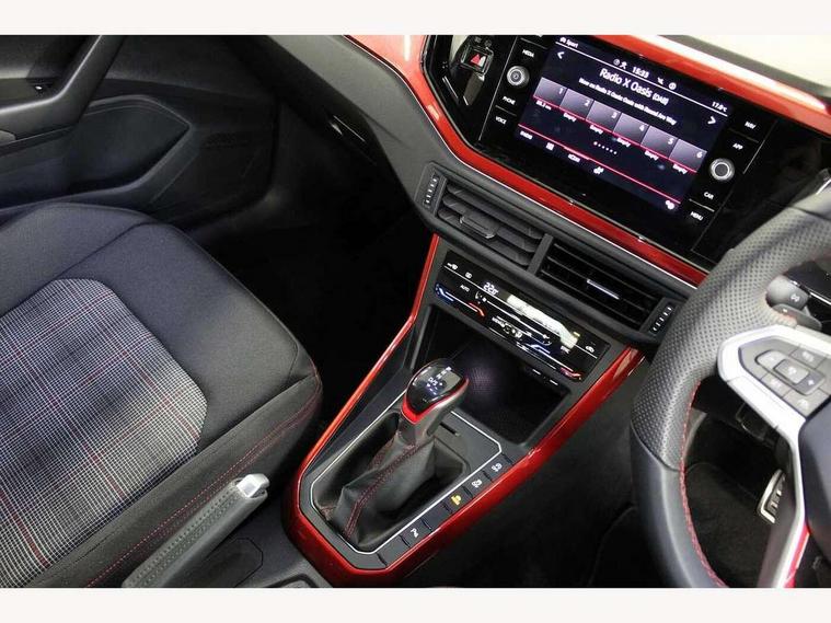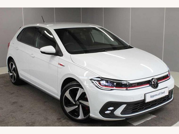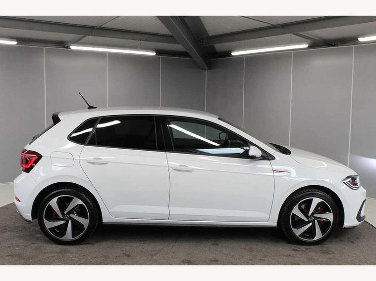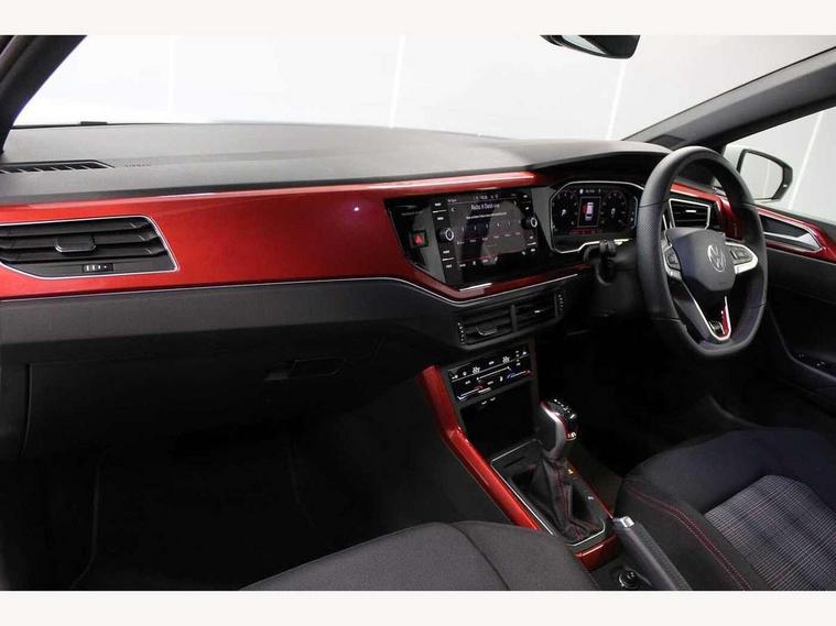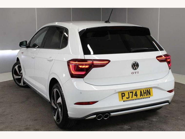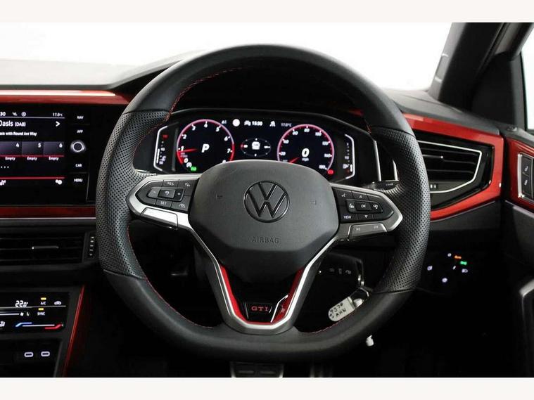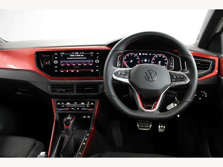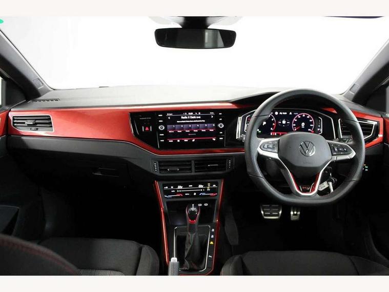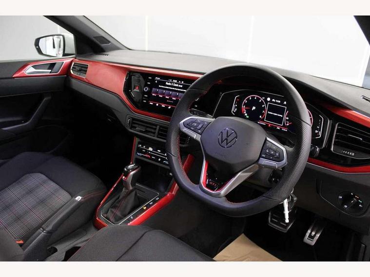 Adaptive cruise control with follow-to-stop and speed limiter, Advanced driver attention and drowsiness monitor, Bluetooth mobile phone interface, Digital Cockpit Pro with 10.25" Display, Dynamic road sign display, Eco mode, Emergency call service, Multifunction camera, Power assisted speed sensitive steering, Preparation for We connect and We connect plus, Speedo and rev counter, electronic odometer, trip, service interval display and fuel gauge, Travel Assist - Lane keeping system and traffic jam assist, Travel assist including emergency assist, Trip computer, Warning signal and warning light for front and rear seatbelts not fastened, Washer fluid level indicator, Wireless app connect, Adaptive chassis control, Front wheel drive, Heavy duty rear axle, Rear shock absorpion sports version, Sports select suspension lowered by 15mm, Start-stop system with battery regeneration (recuperation - energy recovery during braking), DAB Digital radio, Diversity antenna for FM reception, Front and rear 6 speakers, Body colour bumpers, Body colour door handles, Electric front windows, Front scuff plates in aluminium with GTI logo, Heat insulating darkened glass in side and rear windows, Heat insulating glass windscreen, Power folding adjustable/heated exterior mirrors and front passenger exterior mirror lowering function, Rain sensor, Rear electric windows, Rear fog light, Rear side wing doors, Rear windscreen washer and wiper with interval delay, Sport bumpers with air intakes with honeycomb structure, Third brake light, Twin chrome exhaust tailpipes, 12V power socket in centre console, 2 USB-C ports in the front, 2 USB-C charging sockets on the center console in the rear, 3 rear head restraints, 60/40 split folding rear seat and rear seat bench not split, Air care climatronic air conditoning system with active combination filter and 2-zone temperature control, Black roof lining, Carpet mats, front and rear, Chrome plated radiator grille inserts, air vent surrounds and light switch surrounds, Door and side trim panel, Driver and front passenger seat height adjustment, Driver/passenger sunvisors with illuminated vanity mirrors, Front centre armrest, Front footwell illumination, Front seat backrest storage pockets, GTI sports gearshift knob in aluminium leather, Handbrake lever handle in leather, Headliner in recycled material, Isofix child seat preparation easy-fit (for two outer rear seats, and front passenger seat) compatible with I-size, LED interior light with switch off delay and dimmer, 2 reading lights front and rear, Luggage compartment cover, Luggage compartment floor, Luggage compartment lighting, Single front passenger seat, Stainless steel pedals, Standard pedal cluster, Three spoke leather wrapped multifunction sports steering wheel with shifting paddles, IQ LED matrix headlights pack - Polo, Light and sight pack - Polo GTI, 3 point height adj front seatbelts + pretensioners, 3x3 point rear seatbelts, ABS, Driver and front passenger airbag with front passenger airbag deactivation, Drivers and front passengers safety optimised head restraints, ESC (Electronic stability control) + EDL (Electronic Differntial lock) and ASR (Traction control), Extended and predictive pedestrian/ cyclist protection, Front and rear disc brakes with red brake calipers, Front curtain and side airbags with center airbag, Hill hold control, Manual child lock in rear doors, Two tone horn, Tyre pressure loss indicator, Alarm with interior protection, Anti-theft alarm system with interior monitoring, backup horn, and towing protection, Anti-theft wheel bolts, Electronic engine immobiliser, Chrome applications on rotary light, mirror adjustment, window regulator switches, outlet with frame in black, Low rolling resistance tyres,