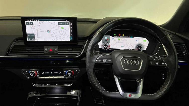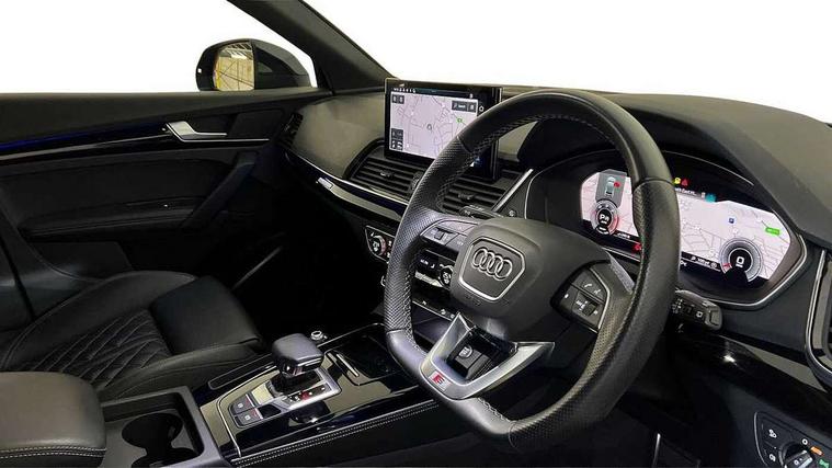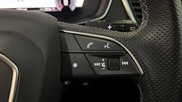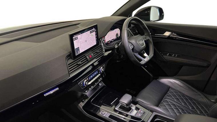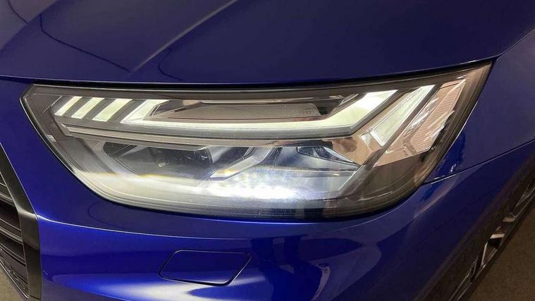 Audi connect safety and service (e-call), Audi connect with Amazon Alexa Integration, Audi drive select, Audi virtual cockpit plus with 12.3" screen and three different layout designs, Audi wireless smartphone interface, Automatic start-stop system with coasting functionality and efficiency programme, Bluetooth interface, Electro - mechanical power assisted steering, MMI navigation plus with 10.1" touch screen, Power tailgate, Reversing camera, Service interval indicator, Voice control system with Audi hotword activation "Hey Audi", Diesel particulate filter, Quattro on demand, S line sports suspension, 2 x USB charging port with aux input socket, DAB Digital radio, Acoustic windscreen, Audi beam with Audi rings logo, Audi matrix LED headlights with dynamic front and rear indicators, Audi rings at front and rear in black, Audi rings decal on rear doors, Auto dimming door mirrors, Auto dimming rear view mirror, Automatic headlights and windscreen wipers, Black door mirrors, Black roof rails, Body colour bumpers, Body colour underbody protection, Chrome plated exhaust trims, Daytime running lights, Door sills in Selenite silver, Electric adjustable/heated/folding door mirrors, Front air inlet surrounds in titanium black, Front and rear electric windows, Headlight washers, High gloss black B pillar trims and triangular rear door trim, High level LED brake light, Rear chrome trim strip below lights, Rear privacy glass and rear side windows, Rear side wing doors, Rear spoiler, Rear wiper, Roof bars, Without model and engine badging at rear, 3 rear headrests, 4 way electric lumbar support for driver and front passenger, 40:20:40 split folding 3 rear bench seat in 2nd row with rear centre armrest, Black cloth headlining, Comfort front centre armrest, Contrast stitching on seats, steering wheel and gear lever gaiter, Deluxe 3 zone electronic climate control, Electrically adjustable front seats, Fine Nappa leather upholstery with diamond pattern contrast stitching + front sport seats with S embossed logo, Front/rear floor mats, Gear lever in black leather, Heated front seats, Height adjustable front head restraints, Height/reach adjustable steering column, Illuminated door sill trims with S logo, ISOFIX child seat mounting and top tether, Luggage compartment cover, Rear seat bench plus, Removable luggage compartment floor, Single front passenger seat, Stainless steel pedals, Sunvisors with vanity mirrors, Black styling package - Q5 Edition 1, Extended interior upholstery pack - Q5, Extended LED Interior multi coloured Lighting Pack - Q5, 3 point seatbelts on all seats, 6 airbags - Driver, front passenger, curtain and side airbags, Electrically operated child locks on rear doors, Electromechanical parking brake, Electronic stabilisation control including ABS, ASR and EDL, Front and rear brake calipers painted in red, Front passenger airbag deactivation, Hill descent control, Hill hold assist, Multi collision brake assist, Pop-up bonnet for pedestrian protection, Pre sense city, Seat belt force limiter, Seatbelt monitoring, Tyre pressure warning, Warning triangle and first aid kit, Anti theft alarm, Anti-theft wheel bolts, Keyless Go access/ignition system, Remote central locking, Piano black finish inlay,