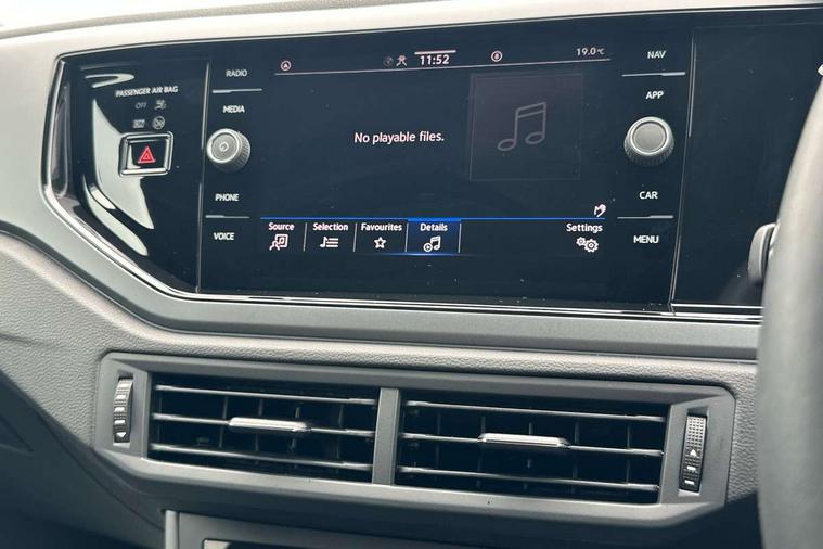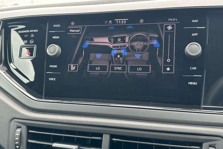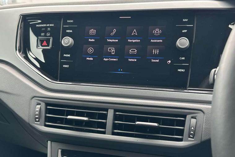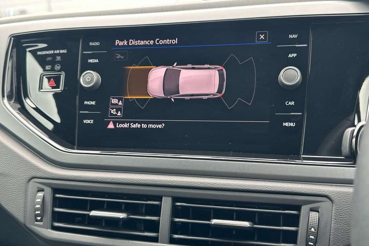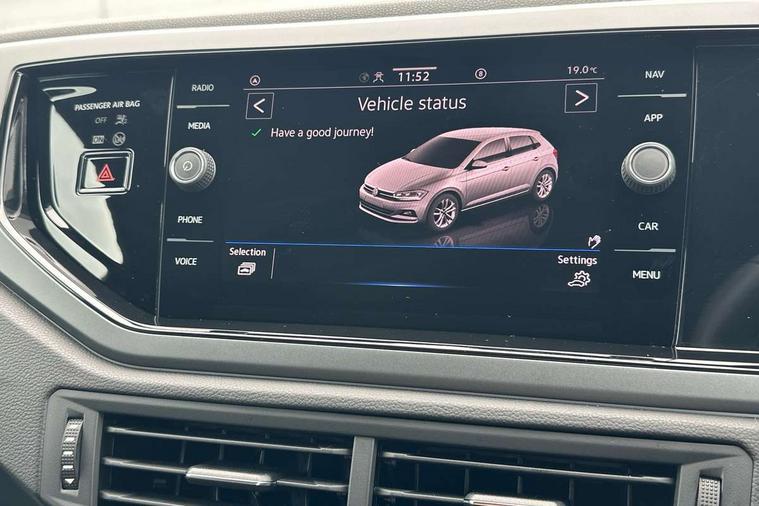 Adaptive cruise control with follow-to-stop and speed limiter, Advanced driver attention and drowsiness monitor, Bluetooth mobile phone interface, Digital Cockpit Pro with 10.25" Display, Dynamic road sign display, Emergency call service, Multifunction camera, Power assisted speed sensitive steering, Preparation for We connect and We connect plus, Speedo and rev counter, electronic odometer, trip, service interval display and fuel gauge, Standard rear axle, Travel Assist - Lane keeping system and traffic jam assist, Travel assist including emergency assist, Trip computer, Warning signal and warning light for front and rear seatbelts not fastened, Washer fluid level indicator, Wireless app connect, Front wheel drive, Rear shock absorpion, Start-stop system with battery regeneration (recuperation - energy recovery during braking), DAB Digital radio, Diversity antenna for FM reception, Front and rear 6 speakers, Body colour bumpers, Body colour door handles, Electric front windows, Front scuff plates with Black edition logo, Heat insulating glass windscreen, Power folding adjustable/heated exterior mirrors and front passenger exterior mirror lowering function, Rear electric windows, Rear fog light, Rear side wing doors, Rear windscreen washer and wiper with interval delay, Third brake light, 12V power socket in centre console, 2 USB-C ports in the front, 2 USB-C charging sockets on the center console in the rear, 3 rear head restraints, 60/40 split folding rear seat and rear seat bench not split, Air care climatronic air conditoning system with active combination filter and 2-zone temperature control, Black roof lining, Carpet mats, front and rear, Chrome plated radiator grille inserts, air vent surrounds and light switch surrounds, Door and side trim panel, Driver and front passenger seat height adjustment, Driver/passenger sunvisors with illuminated vanity mirrors, Front centre armrest, Front footwell illumination, Front seat backrest storage pockets, Front sports comfort seats, Handbrake lever handle in leather, Headliner in recycled material, Heated front seats, Isofix child seat preparation easy-fit (for two outer rear seats, and front passenger seat) compatible with I-size, Karoso artvelours cloth upholstery, Leather trimmed gear knob, LED interior light with switch off delay and dimmer, 2 reading lights front and rear, Luggage compartment cover, Luggage compartment floor, Luggage compartment lighting, Lumbar adjustment for front seats, Single front passenger seat, Stainless steel pedals, Standard pedal cluster, Three spoke leather wrapped multifunction steering wheel with shifting paddles, Black roof pack - Polo, IQ LED matrix headlights pack - Polo, Light and sight pack - Polo R-Line/Black Edition, 3 point height adj front seatbelts + pretensioners, 3x3 point rear seatbelts, ABS, Driver and front passenger airbag with front passenger airbag deactivation, Drivers and front passengers safety optimised head restraints, ESC (Electronic stability control) + EDL (Electronic Differntial lock) and ASR (Traction control), Extended and predictive pedestrian/ cyclist protection, Front curtain and side airbags with center airbag, Front/rear disc brakes, Hill hold control, Manual child lock in rear doors, Single tone horn, Tyre pressure loss indicator, Alarm with interior protection, Anti-theft alarm system with interior monitoring, backup horn, and towing protection, Anti-theft wheel bolts, Electronic engine immobiliser, Black dashboard, Chrome applications on rotary light, mirror adjustment, window regulator switches, outlet with frame in black, Dark grey anodised matt decorative inserts in dash and front door panels, 17" York alloy wheels, Low rolling resistance tyres,
