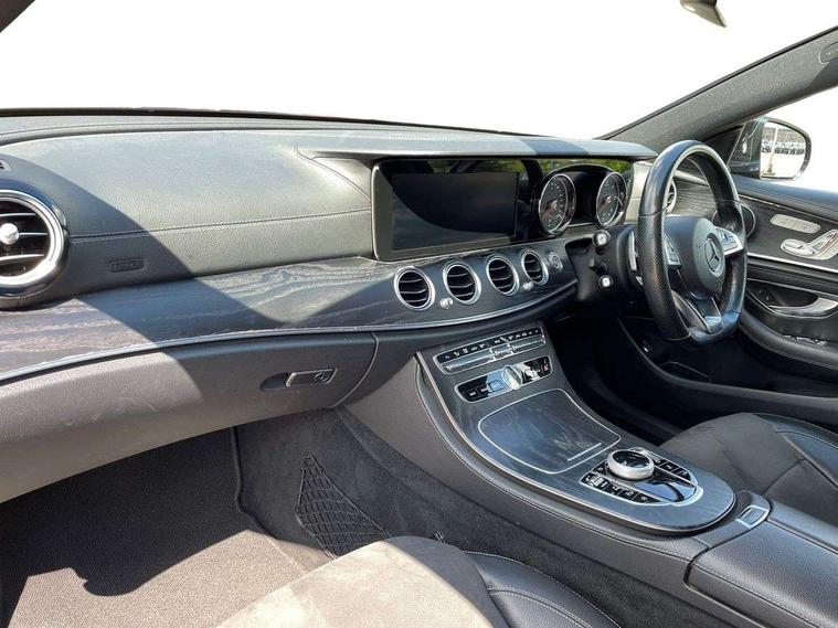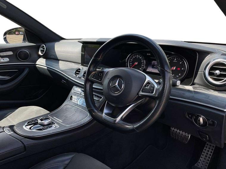 Active park assist with parktronic system, Analogue clock, Attention assist, Bluetooth interface for hands free telephone, Boot release from drivers seat, Brake wear warning light, DYNAMIC SELECT with a choice of driving modes (ECO, Comfort, Sport, Sport+ and Individual), Easy-pack tailgate - Powered opening/closing automatically, Mercedes connect me, Multi function trip computer, Park assist pilot with front and rear park assist, Remote boot release, Reversing camera, Service indicator (ASSYST), Speed sensitive power steering, Diesel particulate filter, DAB Digital radio, Media interface, Steering wheel mounted audio controls, USB/aux input socket, Adaptive brake lights, Aerial integrated in rear window, AMG bodystyling, Body colour bumpers, Body colour door handles, Body colour door mirrors, Chrome roof rails, Electrically adjustable and heated door mirrors, LED Headlights, Polished aluminium upper window surround, Polished aluminium waistline, Radiator grille with integral star and 2 louvres in matt iridium silver with chrome trim, Rain sensor windscreen wipers, 3 spoke AMG steering wheel in Nappa leather, 40:20:40 split folding rear bench seat, Ambient lighting, AMG floormats, Artico man-made leather upper dash trim, Auto Mercedes-Benz child seat recognition sensor, Black roof lining, Chrome door pins, Folding shopping box, Front and rear door pockets, Front centre armrest with storage compartment, Front door sills with Mercedes Benz lettering, Heated front seats, Height/reach adjust steering wheel, Interior rear light/integral reading lights, Isofix rear child seat fastenings, Lockable/illuminated air conditioned glovebox, Multi function steering wheel, Sports pedals with stainless steel surfaces and rubber studs, Storage compartment with 12V socket in centre console, Sunvisors with illuminated vanity mirrors, Interior lighting pack - E Class, Keyless Go comfort pack - E Class, Memory pack - E Class, Mirror pack - E Class, 3x3 point rear seatbelts, Active bonnet, Active brake assist, Childproof rear door locks, Driver and passenger side/thorax airbags, Driver/front passenger airbag, Drivers knee airbag, Electronic parking brake, Hill hold assist, Hill start assist, Pre-Safe anticipatory safety system, Seat occupancy sensor, Seatbelt warning, Tyre pressure monitoring system, Warning triangle and first aid kit, Window airbags, Alarm system/interior protection/immobiliser, Chrome surround electric key, Run flat tyres,