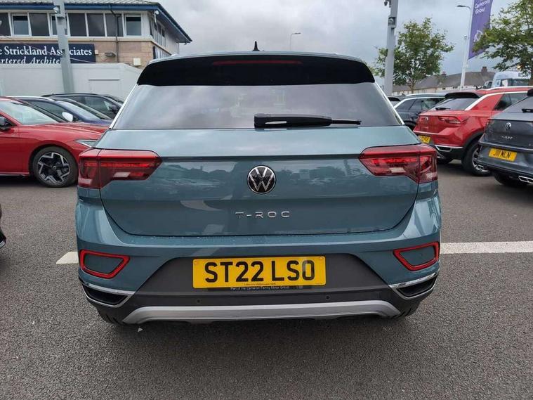 10.25" Digital cockpit pro, Bluetooth mobile phone interface, Driver alert system with fatigue detection, Driver tips and journey analysis, Emergency call service, Lane keeping system Lane Assist, Modified key software - reduce switch off time for key status change to Long no motion, Online services, Park assist including front and rear parking sensors, Service interval indicator, Tailgate/trunk lid release from outside, Think blue trainer driver tips and journey analysis, Warning sound and light for front seatbelts unfastened, Wireless app connect, Battery regeneration during braking, Start/stop function with battery regeneration, Diversity antenna for FM reception, Front and rear 6 speakers, Music playback - MP3, WMA and AAC files, Premium USB cable in choice of either Apple or Android smartphone compatibility, SD card slot, Simultaneous pairing of 2 compatible mobile devices, Title and cover art display, We Connect and We Connect Plus functionality, 3rd brake light, Auto dimming interior rear view mirror, Automatic hazard lights activation under emergency braking, Automatic headlight control with LED separate daytime running lights with coming/leaving home function, Body colour sports bumpers with silver metallic underbody fascia, Dynamic headlight range control with self adjusting whilst driving, Extended roof spoiler, Exterior mirrors aspherical on driver side, convex on front passenger side, External USB type C socket and charging sockets, Front windscreen wiper with intermittent wipe and 4 position delay, Heated rear window, LED Plus headlamps, LED rear combination lamps, LED rear number plate lights, LED tail lamp rear comination lamps, Light mode for poor weather, rain, fog or snow, Power windows with comfort operation and circuit breaker, Rain sensor, Rear exhaust tailpipe, Rear fog light on one side and reversing lights on both sides, Rear side wing doors, Rear wash/wipe with intermittent wipe setting, Remote electrically foldable door mirrors, puddle lights and reverse activated passenger's door mirror, 12V power socket in centre console, 3 rear head restraints, 3 seat bench in 2nd row, 4 load lashing points in luggage compartment, Air care climatronic air conditoning system with active combination filter and 2-zone temperature control, Chrome plated radiator grille inserts, air vent surrounds and light switch surrounds, Door and side trim panel with leatherette insert, Drawer under drivers seat, Front + rear carpet mats, Front centre armrest, Front comfort sports seats, Front cupholders x 2, Front footwell illumination, Instrument lighting, white adjustable panel illumination, Interior ambient lighting and surround lighting, Interior light delay, Isofix child seat preparation, Leather gearshift handle, LED interior light with switch off delay/dimmer and 2 front/rear LED reading lights, Load-through provision with cup holder when folded down ('Unsplit rear seat bench, split folding backrest, with centre armrest), Luggage compartment lighting, Non-folding front passenger seat backrest, Single front passenger seat, Storage compartment in left and right luggage area, Storage compartment in rear doors, Storage compartments in driver and front passenger doors, Sunvisors with illuminated vanity mirrors, Variable boot floor, height adjustable and removable, Driver assistance pack - T-Roc, 3 point height adj front seatbelts + pretensioners, 3 point seatbelts in outer rear with ECE label, ABS, Child locks on rear doors, Driver and front passenger airbag with front passenger airbag deactivation, Driver and front passenger safety-optimised head restraints, Drivers seatbelt reminder, Electronic parking brake, Electronic Stability Control (ESC) inc EDL (Electronic Differential Lock) and ASR (Traction Control), Front and rear passengers curtain airbag system including front side airbags, Front assist with city emergency braking and pedestrian monitoring, Front seat side impact airbags, Predictive pedestrian protection, Rear disc brakes, Single tone horn, Tyre pressure loss indicator, Volkswagen roadside assistance, Alarm with interior protection, Anti-theft alarm system with interior monitoring, backup horn, and towing protection, Remote central locking with SAFELOCK, radio remote control with 2 remote control folding keys, Trims for alloy wheels,