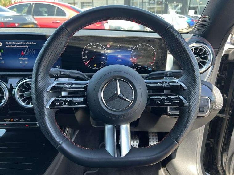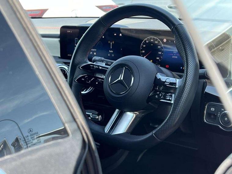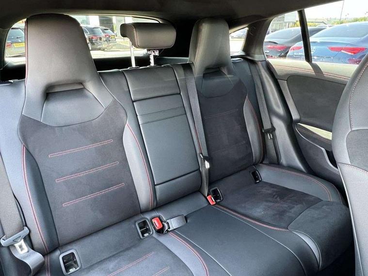 10.25 inch Instrument display with digital cockpit, 10.25 inch touchscreen central media display, Active lane keeping assist, Attention assist - Monitors steering behaviour and long journey fatigue, Bluetooth connection, Car wash mode, Cruise control with limiter, Direct steer system, DYNAMIC SELECT with a choice of driving modes (ECO, Comfort, Sport and Individual), ECO start/stop function, Fluid level warning indicator for fuel, oil, coolant and washer fluid, Hard-disk navigation, Hey Mercedes Voice activation, Lamp failure indicator, Mercedes me connect including emergency call system, accident recovery, breakdown management and maintenance, Mercedes me remote services, Outside temperature gauge, Owners manual in English, Pre-installation of private car share, Radio aerial integrated into front and rear windshields, Service indicator (ASSYST), Smartphone integration with Apple CarPlay and Android auto, Speed limit assist, Tailgate, Trip computer in multifunction display with current consumption indicator, Wireless charging in the front centre console, Comfort suspension with ride height lowering, Rear axle multi-link, DAB digital radio tuner, MBUX multimedia system, Mercedes Benz sound system (100 W) with 6 speakers, Pre installation for Mercedes Benz Link, Adaptive brake lights, AMG body styling with AMG front apron and rear apron and visible exhaust tailpipe in chrome trim elements, Body colour door handles, Electric windows, Electrically adjustable and heated door mirrors with integrated LED indicators, Exhaust system with 2 Visible tailpipe trim elements and rear apron with trim in chrome, Headlamp assist automatic headlamp activation, Heated glass rear windscreen + timer control, High gloss aluminium beltline strips, High level LED third brake light, Interior mirror with black reading lamps and frameless, LED high performance headlamps with integrated LED daytime running lights and adaptive highbeam assist, LED tail lamp, Privacy glass with dark tinting on rear side windows and rear window, Radiator grille with Mercedes-Benz pattern in chrome with central Mercedes star and single louvre with chrome inserts, Rain sensing windscreen wipers with two sensitivity settings, Rear fog lamp, Rear side wing doors, Rear wiper, Variable front intermittent wipers, Window line trim strip in high gloss aluminium, 3 seat bench in 2nd row, 3 twin spoke flattened multifunction steering wheel in nappa leather - horizontal twin spoke in high gloss black, vertical twin spoke in silver chrome, 4 way lumbar support, 40:20:40 split folding rear seats with backrest, Air conditioning - One zone thermatic automatic climate control with automatically controlled air distribution, Air vents with surround in silver chrome, Artico man-made leather/Microcut microfibre upholstery, Automatic child seat recognition sensor, Black roof lining, Brushed stainless steel sports pedals with rubber studs, Floor mats with stitched AMG lettering, Front centre armrest with stowage, Galvanished gear shift paddles in silver chrome, Heated front seats, Interior lighting - 64 colour Ambient lighting, Luggage net on driver/front passenger seat backrest, Manually height and reach adjustable steering column, Rear head restraints, Single front passenger seat, Sport seats with fixed head restraints, Stowage compartment in centre console with retractable cover, Sunvisors with illuminated vanity mirrors, Twin front cupholders, Two outer rear seat isofix and top tether child seat fixing points, Keyless go comfort pack - CLA with easy pack tailgate, Light and sight pack - CLA, Mirror pack - CLA, Parking pack with reversing camera - CLA, Seat comfort pack - CLA, USB package plus - CLA, Active bonnet pedestrain safety measure which detects an impact and raises bonnet by 65mm, Active brake assist includes forward collision warning system with autonomous braking, Adaptive brake assist with hold function and hill start assist, Anti lock braking system (ABS) with brake assist, Black seat belts, Bonnet with power domes, Brake calipers with Mercedes-Benz lettering, Brake pad wear warning indicator, Childproof locks manually operated for rear doors and electrically operated for rear power windows, Crash responsive emergency lighting, Driver and front passenger head and sidebags, Driver and front passenger windowbags, Drivers knee airbag, Dual stage driver and front passenger airbags, Electric parking brake, Electronic stability programme with acceleration skid control, ESP curve dynamic assist, Front and rear seatbelt reminder, Front passenger seat occupancy sensor, Perforated front brake discs, Three point rear seat belts, Tyre pressure monitoring system, Warning triangle and first aid kit, Alarm system with immobiliser and interior protection -Thatcham category 1, Guard 360 deg vehicle protection - tow away protection with visual, acoustic warning, interior monitoring, preinstallation for parking damage, Remote central locking and crash sensor with emergency opening function, Light aluminium with longitudinal grain interior trim, 18" AMG 5 twin spoke light alloy wheels painted in termolite grey with high sheen finish, Summer tyres, Tirefit tyre sealant kit,