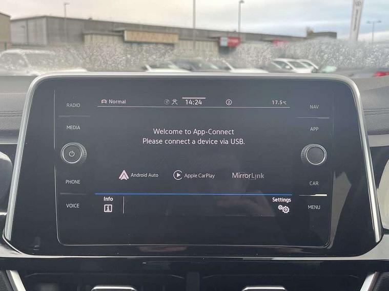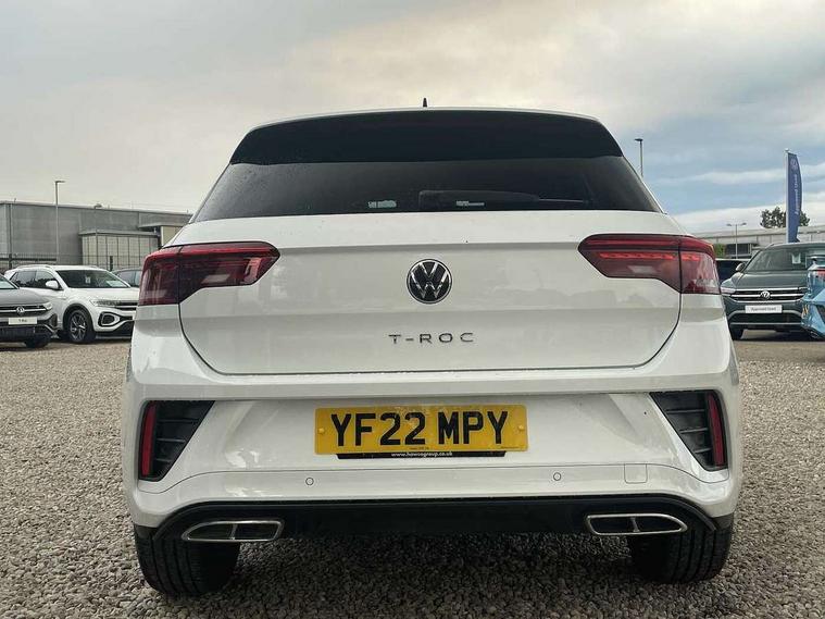 10.25" Digital cockpit pro, Bluetooth mobile phone interface, Driver alert system with fatigue detection, Driver tips and journey analysis, Emergency call service, Lane keeping system Lane Assist, Modified key software - reduce switch off time for key status change to Long no motion, Online services, Park assist including front and rear parking sensors, Service interval indicator, Tailgate/trunk lid release from outside, Think blue trainer driver tips and journey analysis, Warning sound and light for front seatbelts unfastened, Wireless app connect, Battery regeneration during braking, Start/stop function with battery regeneration, Diversity antenna for FM reception, Front and rear 6 speakers, Music playback - MP3, WMA and AAC files, Premium USB cable in choice of either Apple or Android smartphone compatibility, SD card slot, Simultaneous pairing of 2 compatible mobile devices, Title and cover art display, We Connect and We Connect Plus functionality, 3rd brake light, Auto dimming interior rear view mirror, Automatic hazard lights activation under emergency braking, Automatic headlight control with LED separate daytime running lights with coming/leaving home function, Extended roof spoiler, Exterior mirrors aspherical on driver side, convex on front passenger side, External USB type C socket and charging sockets, Front windscreen wiper with intermittent wipe and 4 position delay, Heated rear window, LED Plus headlamps, LED rear combination lamps, LED rear number plate lights, LED tail lamp rear comination lamps, Power windows with comfort operation and circuit breaker, R-Line design body coloured bumpers, Rain sensor, Rear exhaust tailpipe, Rear fog light on one side and reversing lights on both sides, Rear side wing doors, Rear wash/wipe with intermittent wipe setting, Remote electrically foldable door mirrors, puddle lights and reverse activated passenger's door mirror, 12V power socket in centre console, 3 rear head restraints, 3 seat bench in 2nd row, 4 load lashing points in luggage compartment, Air care climatronic air conditoning system with active combination filter and 2-zone temperature control, Black roof lining, Chrome plated radiator grille inserts, air vent surrounds and light switch surrounds, Door and side trim panel with leatherette insert, Drawer under drivers seat, Front + rear carpet mats, Front centre armrest, Front cupholders x 2, Front footwell illumination, Front reading light, Front scuff plates with R logo, Instrument lighting, white adjustable panel illumination, Interior ambient lighting and surround lighting, Interior light delay, Isofix child seat preparation, Leather gearshift handle, Load-through provision with cup holder when folded down ('Unsplit rear seat bench, split folding backrest, with centre armrest), Luggage compartment lighting, Single front passenger seat, Stainless steel pedals, Storage compartment in left and right luggage area, Storage compartment in rear doors, Storage compartments in driver and front passenger doors, Sunvisors with illuminated vanity mirrors, Variable boot floor, height adjustable and removable, Driver assistance pack without proactive passenger protection - T-Roc, 3 point height adj front seatbelts + pretensioners, 3 point seatbelts in outer rear with ECE label, ABS, Child locks on rear doors, Driver and front passenger airbag with front passenger airbag deactivation, Driver and front passenger safety-optimised head restraints, Drivers seatbelt reminder, Electronic parking brake, Electronic Stability Control (ESC) inc EDL (Electronic Differential Lock) and ASR (Traction Control), Front and rear passengers curtain airbag system including front side airbags, Front assist with city emergency braking and pedestrian monitoring, Front seat side impact airbags, Hill start assist, Predictive pedestrian protection, Rear disc brakes, Single tone horn, Tyre pressure loss indicator, Volkswagen roadside assistance, Alarm with interior protection, Anti-theft alarm system with interior monitoring, backup horn, and towing protection, Remote central locking with SAFELOCK, radio remote control with 2 remote control folding keys, Trims for alloy wheels,