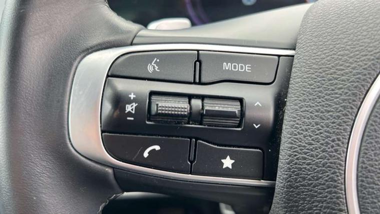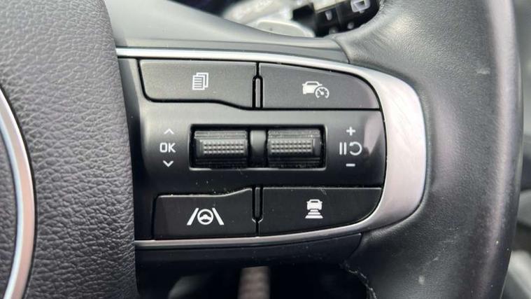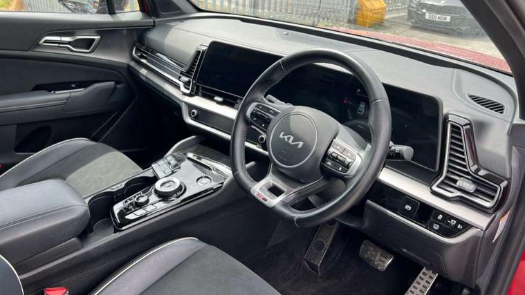 12.3" Display with navigation, 4.2" supervision colour cluster display, Apple car play/Android Auto with voice control, Drive mode selector, E-call, Forward collision avoidance assist (FCA) - city/pedestrian/cyclist/junction covering, Front and rear parking sensors, Highway Driving Assist (HDA), Intelligent speed limit assist, Kia Connect (UVO), Lane Following Assist (LFA), Lane keep assist, Low washer fluid warning, Rear view monitor, Reversing camera system integrated into centre fascia screen, Smart cruise control with stop and go functionality, Speed sensitive power steering, Trip computer, Windscreen washer level indicator, Intelligent Stop and Go, 6 speaker audio system, Bluetooth audio streaming, DAB Radio with MP3, Rear USB port, Steering wheel mounted audio controls, USB port for connection of a media device, All round electric windows with drivers and front passenger auto up/down function, Automatic headlight control system, Automatic window defogger, Backlite glass heated with timer, Body colour and black bumper with silver accents, Body colour door mirrors, Body colour exterior door handles, Body colour radiator upper garnish and door garnish, Electrically adjustable/heated/folding door mirrors with LED indicators, Front and rear chrome skid plates, Gloss black radiator grille, Gloss black side sill and wheel arch body mouldings, High beam assist, Interior electrochromic mirror, LED daytime running lights, LED front fog lamps, LED headlamps (low and high beam - MFR type), LED High mounted stop light, LED rear combination lamp, Rain sensing wipers with aero blades, Rear fog lamp, Rear privacy glass, Rear side wing doors, Rear spoiler, Rear wiper, Satin finished beltline, Silver roof rack, Trailer stability assist, 12V power socket in front centre fascia and luggage compartment, 2nd row personal lamps, 3 seat bench in 2nd row, 3 x passenger assist grips, 40/20/40 split folding rear seat, All-round height adjustable headrests, Black headlining, Centre console storage box, Cupholders in rear armrest, D-Shaped sports leather steering wheel and perforated inserts with GT-Line logo, Door courtesy lamps, Drink holder at centre armrest, Driver and front passenger side sunvisors with illuminated vanity mirrors, Driver's seat manual height adjust, Drivers seat power lumbar support, Front and rear door storage, Front seat and rear pockets, Front/rear centre armrests, Gear shift indicator, Glovebox illumination, Interior door lock/unlock function, ISOFIX Child seat top tethers and anchor fixings outer rear seats, Luggage area light, Luggage area load cover, Luggage net with hooks, Metal paint interior door handles, Overhead console lamp, Paddle shift controls, Rear coat hooks, Single front passenger seat, Sports pedals, Suede leather upholstery, Three zone climate control, Tilt/telescopic adjustable steering wheel, Ventilation ducts to rear compartment, Active front headrests, All round 3-point seatbelts, Anti-lock braking system (ABS), Dual front side airbags, Dual horn, Electronic parking brake, Electronic stability control with downhill brake control, Front passenger airbag cut-off switch, Front seatbelt pretensioners + load limiters, Height adjustable front seatbelts, Hill start assist control (HAC), Impact sensing auto door unlocking, Multi collision brake assist, Rear door child safety locks, Rear seat alert system, Traction control, Twin curtain airbags, Twin front airbags, Tyre pressure monitoring system, Advanced anti-theft system including immobiliser and alarm, Door deadlocks, Engine Start/Stop Button with Smart Entry System, Locking wheel nuts, Speed sensitive auto door locking, Visible vehicle identification number, Aluminium pattern finish centre fascia and door garnish, 18" Alloy wheels, Tyre mobility kit,