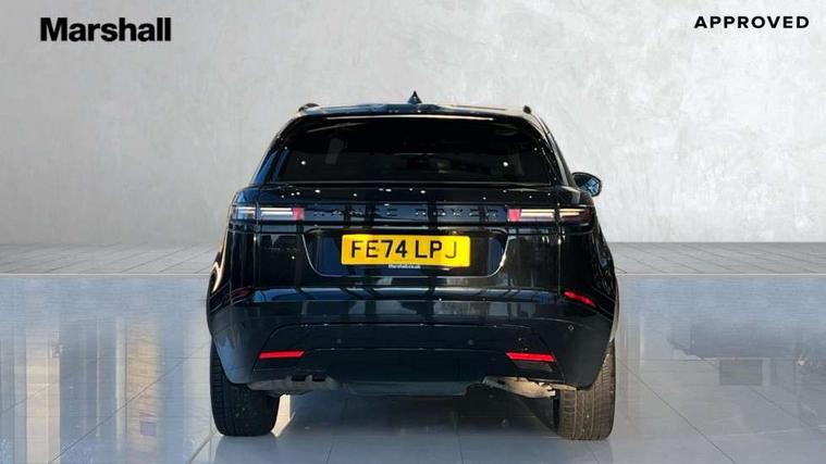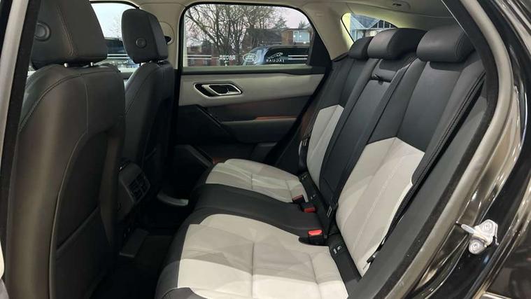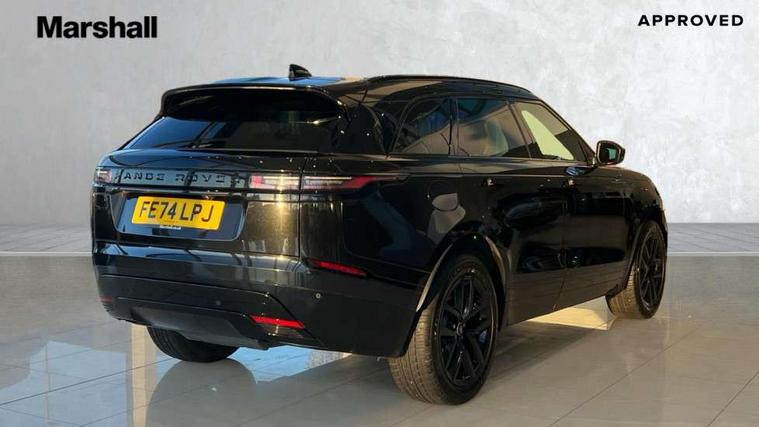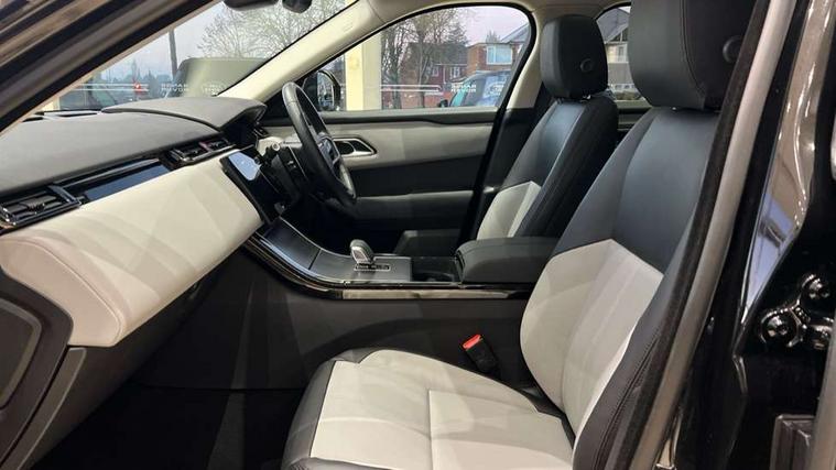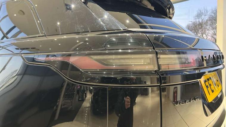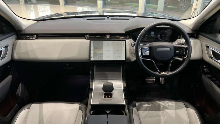 Android Auto, Apple CarPlay, Blind spot assist, Bluetooth connectivity, Brake pad wear indicator warning light, Driver condition monitor, eCall emergency call system, Front and rear parking aid, InControl remote, Land Rover InControl apps, Lane keep assist, Pivi pro with connected navigation, Rear traffic monitor, Service indicator, Speed proportional electronic power assisted steering (EPAS), Traffic sign recognition with adaptive speed limiter, Trip computer, Voice control system, Wireless device charging, 8 speed automatic transmission, All terrain progress control, Coil suspension system, Open differential with torque vectoring by braking, Single speed transfer box, DAB radio, Steering wheel mounted controls, 3rd brake light, Acoustic laminated windscreen, Auto dimming interior rear view mirror, Auto high beam assist, Automatic headlamp levelling, Automatic headlights, Body coloured bumpers, Boot protection plate, Electric windows with one touch open/close and anti trap, Flush deployable exterior door handles, Follow me home headlights, Heated rear window with timer, Heated washer jets, Heated windscreen, LED headlights with signature DRL, Metal front tread plates, Metal load space scuff plates, Power fold, auto-dimming, heated door mirrors with memory and approach lights, Rain sensor windscreen wipers, Rear animated directional indicators, Rear fog lights, Rear side wing doors, Rear wash/wipe, Tailgate/boot lid spoiler, Trailer stability assist, Velar badge, 14 way electrically adjustable front seats with driver's memory function, 3 seat bench in 2nd row, Ambient lighting, Bright metal pedals, Driver/passenger sunvisors with illuminated vanity mirrors, Ebony morzine headlining, Electrically adjustable steering column, Heated steering wheel, Isofix system on outer rear seats, Loadspace cover, Overhead lighting console, Overhead stowage for sunglasses, Passive front headrests, Rear air vents, Rear centre headrest, Single front passenger seat, Twin front cupholders, Twin sliding front centre armrest, Online pack with data plan - Velar, Power socket pack 2 - Velar, 355mm Front and 325mm Rear brakes, 3x3 point rear seatbelts, Anti-lock braking system (ABS), Cornering brake control, Curtain airbags, Customer configurable autolock, Door side intrusion beams, Driver airbag, DSC - Dynamic Stability Control, Electronic brake force distribution, Electronic parking brake, Electronic traction control, Emergency braking, Front and rear seatbelt reminder, Hill descent control, Hill launch assist, Low traction launch, Passenger airbag, Power operated child locks, Rear airbags, Roll stability control, Side airbags, Tyre pressure monitoring system (TPMS), Global lock and unlock switch on driver door, Immobiliser, Intrusion sensor, Keyless entry, Lock only switch on front passenger door, Locking wheel nuts, Perimetric alarm, Remote central locking, All season tyres,