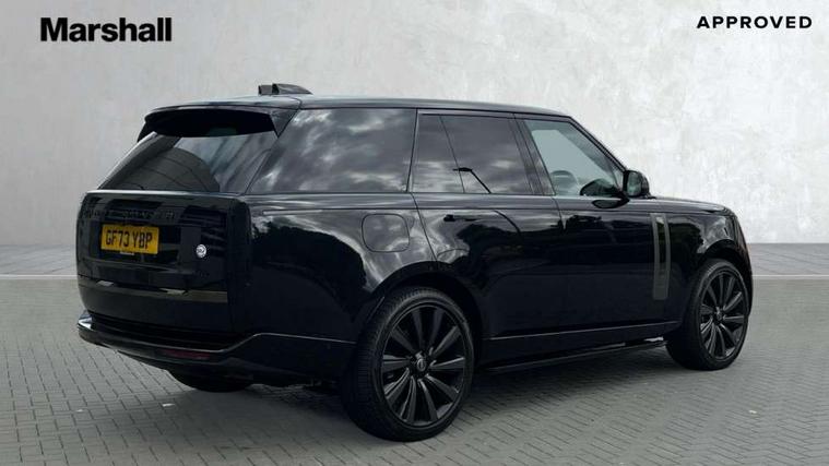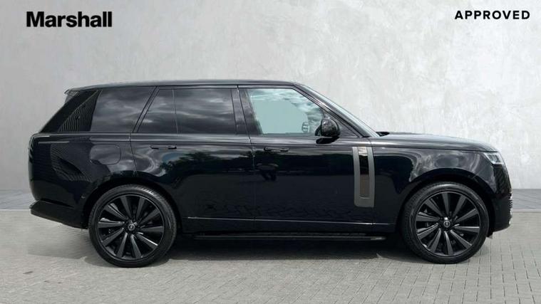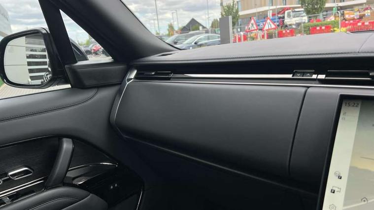 13.1" Touchscreen, 3D surround camera inc frwd traffic detection, vehicle clearance guidance, 3D view, clearsight ground view, manoevure light, 360 parking aid, wade sensing, Adaptive cruise control with steering assist, All Terrain Info Centre, All wheel steering, Android Auto, Apple car play, Blind spot assist, Bluetooth connectivity streaming, Configurable programs, Driver condition response, Eco mode, Electric power assisted steering (EPAS), Emergency call service, Head up Display, Interactive driver display, Lane keep assist, Powered gesture tailgate/boot lid, Rear collision monitor, Rear traffic monitor, Remote, Traffic sign recognition with adaptive speed limiter, Wi-Fi Enabled with data plan, Wireless device charging with phone signal booster, 8 speed automatic transmission, Active damper technology system, Adaptive dynamics, All terrain progress control, All Wheel Drive (AWD), Automatic access height, Electronic active differential with torque vectoring by braking, Electronic air suspension with dynamic response, Terrain Response 2 Auto, Twin speed transfer box, Digital Audio Broadcast radio-DAB, Meridian 1600W signature sound system, Pivi pro including smart settings, Connected navigation pro, nuance speech, USB socket, Acoustic laminated windscreen, Animated directional indicators, Automatic headlights, Automatic levelling headlights, Centre high mounted stop light, ClearSight interior rear view mirror, Digital LED headlights with signature DRL and image projection, Electric windows with one touch open/close and anti trap, Flush deployable exterior door handles, Front and rear recovery eyes, Front fog lights, Headlamp power wash, Heated rear window, Heated washer jets, Illuminated aluminum treadplates with illuminated SV script, Laminated front and rear side glass, LED tail lights, Power fold, auto-dimming, heated door mirrors with approach lights, Rain sensing windscreen wipers, Rear boot, Rear fog lights, Rear side wing doors, Rear wash/wipe, Side repeater indicators in mirror, Solar attenuating windscreen, SV branded puddle lamps, SV etched roundel on side gill inserts, SV exclusive front bumper and grille design, SV exterior badge, SV white ceramic exterior badge with black SV roundel, Trailer stability assist, Winter wiper park position, 12V power sockets, 24-way heated and cooled, hot stone massage electric front seats with Executive Class Comfort Plus rear seats, 3 seat bench in 2nd row, Air quality sensor, Auto folding loadspace cover, Bright metal pedals, Cabin air purification pro, Cabin lighting, Centre console with armrest, Customer configurable single point entry, Driver and passenger front seat armrests, Easy boot loading, Electric rear side window sunblinds, Four zone climate control, Front and rear cupholders, Front and rear grab handles, Front head restraints, Gearshift paddles, Heated steering wheel, Hook in load space, Loadspace light, Luggage tie down in loadspace, Multifunction steering wheel, Rear centre armrest, Rear head restraints, Rear ISOFIX, Single front passenger seat, SV exclusive seat foams and sculpting, SV exclusive seat pattern embroidery/ perforation, SV exclusive speaker grille design, SV start up graphics in IP screen, Twin blade sunvisors with Illuminated vanity mirrors, Upper and lower glovebox, Versatile loadspace floor in tailgate, Online pack with data plan - Range Rover, 3x3 point rear seat belts, Anti-lock braking system (ABS), Brake hold function, Cornering brake control (CBC), Customer configurable autolock, DSC - Dynamic Stability Control, Electronic brake force distribution, Electronic parking brake, Electronic traction control, Emergency brake assist, Emergency braking, Front airbags with passenger seat occupant detector, Front side airbags, Hill descent control, Hill launch assist, Illuminated seat belt buckles, Low traction launch, Occupant protection assist, Power operated child locks, Roll stability control, Tyre pressure monitoring system (TPMS), Immobiliser, Intrusion sensor and alarm, Keyless entry, Locking wheel nuts, Remote central locking, SV exclusive key fob with white and black SV roundel,
