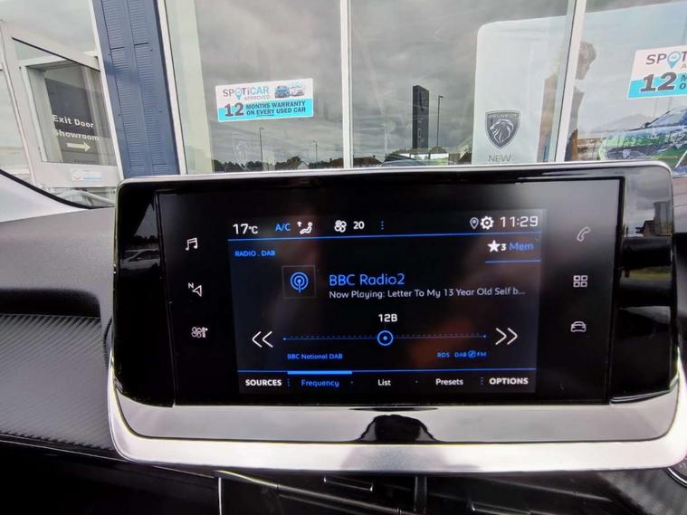 Bluetooth telephone facility, Driver attention warning, Emergency call service, Exterior temperature indicator with ice warning, Lane keep assist, Mirror screen with mirror link, apple carplay and android auto, Multi function trip computer, PEUGEOT i-Cockpit with compact steering wheel, PEUGEOT i-Cockpit with configurable 3D headup instrument panel, Push button start, Smart phone docking station, Speed limit recognition and recommendation, Start/stop system, Visio Park 1 with 180 degree Colour reversing camera, 2 front USB socket with USB-C, 2x USB sockets in rear, 6 speakers radio with mp3 compatible, DAB Digital radio, Voice recognition for radio, navigation and telephony features, 2 X Rear number plate lights, Automatic hazard light activation upon heavy brake application, Automatic lights, Automatic windscreen wipers, Body coloured exterior door handles, Dark tinted rear side and tailgate windows, Diamond black rear spoiler, Eco LED headlights, Electric front windows + one touch + anti-pinch, Electric rear windows with one touch/anti-pinch, Electrically adjustable, heated and power folding door mirrors, Electrochrome rear view mirror, Follow me home headlights, Gloss black finish on B pillar, Gloss black rear cluster connecting strip, Gloss black window surround, Headlights left on audible warning, LED daytime running lights with 3 claw headlight with distinctive tooth design, LED side indicator lights integrated into door mirrors, LED third brake light, Model designation badges front and rear, Nera black door mirror shells, Radiator grille chrome chequered, Rear bumper with gloss black finish, Rear full LED 3D peugeot signature claw effect lights with daylight function, Rear reversing lights, Rear side wing doors, Rear windscreen wiper triggered automatically in reverse gear, Roof mounted aerial, Roof spoiler, Single exhaust tailpipe, Tailgate with heated rear windscreen and wiper blade, Variable front intermittent wipers, 1/3 to 2/3 split folding rear seats, 12V socket, 3 seat bench in 2nd row, Automatic air conditioning, Black rods on rear headrests, Black wheel nut covers, Driver and front passenger comfort seats, Driver and front passenger seat manual adjustment in longitudinal and back rest angle, Driver seat mechanical height adjustment, Electric power steering with reach and rake adjustable steering column, Front centre armrest with storage compartment, Front interior light with 2 reading spotlights, Gear shift indicator, High centre console with 2 cup holders, Leather steering wheel, Map pockets on the backs of the front seats, Piano keys gloss black plated toggle switches to access main functions of the vehicle, Rear centre headrest, Roof lining - light grey, Satin chrome gear lever, Seatbelt unfastened on the move audible and visual alert for front and rear seats, Single front passenger seat, Tri material cloth/leather upholstery, 2x Isofix child seat fitting on outer rear seats, 3 rear 3 point seatbelts, ABS (Anti-lock Braking System) with EBD (Electronic Brakeforce Distribution) and EBA (Emergency Braking Assistance), Adaptive driver and front passenger airbags with passenger airbag deactivation function, Child locking functionality on rear doors, Driver/front passenger side airbags, Electric parking brake, ESP with Hill Assist, Front and rear curtain airbags, Front and rear disc brakes, Front optimised safety headrests and 3 x rear retractable headrests with height adjustable, Front three point retractable seatbelts with force limiters, Pedestrians active safety brake, Tyre pressure sensor, Acoustic vehicle alert system (AVAS), Automatic door locking when moving off, Deadlock, Electronic code immobiliser, Remote central locking, Thatcham cat. 1 alarm with anti lift sensor, Carbon effect Dashboard, front and rear door panel finish, 16" Soho diamond cut alloy wheels, Tyre puncture repair kit,