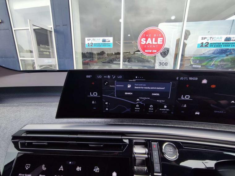 Adaptive cruise control with Stop and Go, Bluetooth with two microphones (Connect up to 2 phones), Drive modes select (Eco, normal and sport) with configurable ambient lighting, Driver foot rest, Driver profile selection, E-call, Exterior temperature indicator with ice warning, Front parking sensor, Front passenger seat detection, Hands free Smart Electric Tailgate (foot operated), Lane keep assist, Manual gear changes via steering mounted paddles, Multi function trip computer, Natural voice recognition, PEUGEOT i-Cockpit - 21" HD panoramic curved display incorporating instrument panel and touchscreen with 3colour themes, PEUGEOT i-connect advanced HD fully customisable touch screen, Navigation with Tom Tom Live updates and over the air map updates, PEUGEOT SOS and assistance, Rear parking sensor, Speed limit and traffic sign recognition and recommendation, Wireless mirror screen with apple carplay and android auto, Wireless smartphone charger with status light and ambient lighting, Dynamic stability control and electronic anti-skid system, AM/FM bi-tuner, DAB Radio (Digital Audio Broadcasting), Peugeot customisable virtual iToggles, USB-C sockets (2 x front and 2 x rear), 3008 model designation badgers front and rear in basalt grey, Acoustic windscreen, Automatic hazard light activation upon heavy brake application, Automatic headlamp activation, Automatic windscreen wiper activation with interval wiping intensity control, Black diamond roof and floating effect rear spoiler finished in nera black metallic, Body coloured exterior door handles, Dark tinted privacy glass for rear door, Tailgate and Quarter windows, Door mirrors - Welcome lighting and integrated LED indicators, Electric adjustable/heated/folding door mirrors, Flat blade wipers with magic wash integrated nozzles, Frameless electrochrome rear view mirror, Front and rear electric windows with one touch, Front grille with body coloured accents, Gloss black connecting strip between rear lights, Gloss black finish B pillar, Grained black lower door claddings and wheel arches, Heated rear window, Hybrid rear badging in basalt grey, Laminated windscreen, LED daytime running lights, LED exterior lighting, LED third brake light, Lower front and rear bumper trims in meteor grey, Orbital gloss black door mirrors, PEUGEOT shield on front wings, Pixel LED Technology headlights with adaptive high beam assist, Rain sensor, Rear full LED 3D peugeot signature claw effect lights with daylight function, Rear side wing doors, 2 cupholders in front centre console, 2 rear cupholders, 3 seat rear bench, 3x 12V sockets (Cabin front and rear and boot), 4 Grab handles retractable and damped, 4 tie down luggage rings, 40/20/40 folding rear seat backrest with fixed base, Aluminium pedals, Arch design central console with concealed storage, Cabin high efficiency filter, Central front armrest with ventilated storage compartment and LED lighting, Chrome finish interior door handles, Compact heated multifunction steering wheel with full grain leather Iced Clay stitching, gloss black and satin chrome detailing and GT badge, Dual zone climate control, Dynamic front seats, e-Toggle compact gear selector, Electric power steering with reach and rake adjustable steering column, Glasses storage box, roof mounted, LED boot light, LED footwell lights, LED front and rear roof lights, LED Glovebox light, LED illuminated driver and passenger concealed sunvisor mirrors, Luggage cover, Luxury front and rear carpet mats with Iced Clay stitching and GT logo, Mistral black pillars and headlining, Quick launch cabin heating/cooling function, Rear air vents, Rear smartphone holder, Roof lining - Meteor grey, Seatbelt unfastened on the move audible and visual alert for front and rear seats, Single front passenger seat, Stainless steel PEUGEOT door sill trims, Two bag hooks, Two position boot floor, 2x Isofix child seat fitting on outer rear seats with zipped cover, 3x3 point rear seat belts, ABS (Anti-lock Braking System) with EBD (Electronic Brakeforce Distribution) and EBA (Emergency Braking Assistance), Adaptive driver and front passenger airbags with passenger airbag deactivation function, Advanced Emergency Braking System with radar (AEBS3) providing night detection of pedestrians and cyclists, Child locking functionality on rear doors, Driver and front passenger side airbags, Electric parking brake, Front and rear curtain airbags, Front optimised safety headrests and 3 x rear retractable headrests with height adjustable, Front/rear disc brakes, Hill start assist, Post collision safety brake, Seatbelts - Front and rear outer seats with pyrotechnic pretensioners and force limiters, Tyre under inflation monitoring and detection (Indirect), 2x Keys (Lock, Unlock, Boot release function with concealed key), Acoustic vehicle alert system (AVAS), Automatic door locking when moving off, Deadlocking system, Electronic code immobiliser, Exterior passenger door lock, Locking wheel nuts, Peugeot Open and Go (keyless entry and push button start), Seatbelts reminder and unfastend warning indicator, Thatcham category 1 Perimetric and volumetric alarm with anti-lift detection, Aluminium printed dashboard and front door panel Alcove decor, Textile decor for dashboard, door panels and centre console arch, 19" YARI diamond cut alloy wheels with star center cap in orbital black, Michelin e-primacy class A tyres, Tyre repair kit includes 12V compressor, Sealant and storage box,