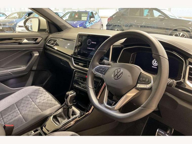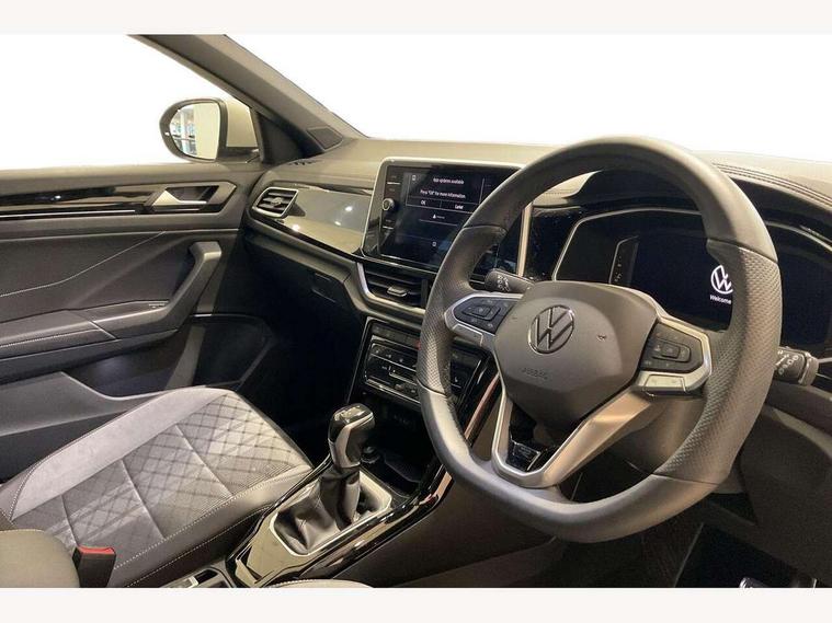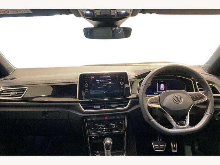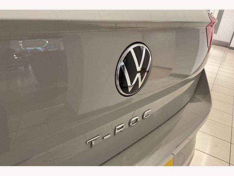 10.25" Digital cockpit pro, Advanced driver attention and drowsiness monitor, Emergency call service, Lane keeping system Lane Assist, Mobile phone interface, Modified key software - reduce switch off time for key status change to Long no motion, Online services, Park assist including front and rear parking sensors, Service interval indicator, Tailgate/trunk lid release from outside, Think blue trainer driver tips and journey analysis, Warning sound and light for front seatbelts unfastened, Wireless app connect, Battery regeneration during braking, Start/stop function with battery regeneration, DAB Digital radio, Diversity antenna for FM reception, Front and rear 6 speakers, Music playback - MP3, WMA and AAC files, Premium USB cable in choice of either Apple or Android smartphone compatibility, SD card slot, Simultaneous pairing of 2 compatible mobile devices, Title and cover art display, We Connect and We Connect Plus functionality, Auto dimming interior rear view mirror, Automatic hazard lights activation under emergency braking, Automatic headlight control with LED separate daytime running lights with coming/leaving home function, Body coloured exterior mirror housings and door handles, Electrically adjustable and heated door mirrors, Extended roof spoiler, Exterior mirrors aspherical on driver side, convex on front passenger side, External USB type C socket and charging sockets, Front windscreen wiper with intermittent wipe and 4 position delay, Heated rear window, LED 3rd brake light, LED rear combination lamps, LED rear number plate lights, Power windows with comfort operation and circuit breaker, Privacy glass for rear side windows and rear window, R-Line design body coloured bumpers, Rain sensor, Rear exhaust tailpipe, Rear fog light on one side and reversing lights on both sides, Rear side wing doors, Rear wash/wipe with intermittent wipe setting, Remote electrically foldable door mirrors, puddle lights and reverse activated passenger's door mirror, 12V power socket in centre console, 3 rear head restraints, 3 seat bench in 2nd row, 4 load lashing points in luggage compartment, Air care climatronic air conditoning system with active combination filter and 2-zone temperature control, Black roof lining, Chrome plated decorative trims, Chrome plated radiator grille inserts, air vent surrounds and light switch surrounds, Door and side trim panel with leatherette insert, Front + rear carpet mats, Front centre armrest, Front cupholders x 2, Front footwell illumination, Front reading light, Front scuff plates with R Line logo, Front seat back storage pockets, Glove compartment door with light, Instrument lighting, white adjustable panel illumination, Interior ambient lighting and surround lighting, Interior light delay, Isofix child seat preparation, Leather gearshift handle, Load-through provision with cup holder when folded down ('Unsplit rear seat bench, split folding backrest, with centre armrest), Luggage compartment lighting, Single front passenger seat, Stainless steel pedals, Storage compartment in left and right luggage area, Storage compartment in rear doors, Storage compartments in driver and front passenger doors, Sunvisors with illuminated vanity mirrors, Variable boot floor, height adjustable and removable, Driver assistance pack without proactive passenger protection - T-Roc, 3 point height adj front seatbelts + pretensioners, 3 point seatbelts in outer rear with ECE label, ABS, Child locks on rear doors, City emergency braking and pedestrian monitoring, Driver and front passenger airbag with front passenger airbag deactivation, Driver and front passenger safety-optimised head restraints, Drivers seatbelt reminder, Electronic parking brake, Electronic Stability Control (ESC) inc EDL (Electronic Differential Lock) and ASR (Traction Control), Front and rear passengers curtain airbag system including front side airbags, Hill start assist, Predictive pedestrian protection, Rear disc brakes, Two tone horn, Tyre pressure loss indicator, Volkswagen roadside assistance, Piano black decorative inserts in dashboard and front door trim panels, Trims for alloy wheels,