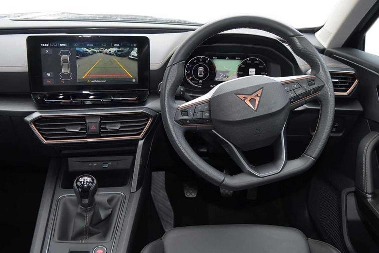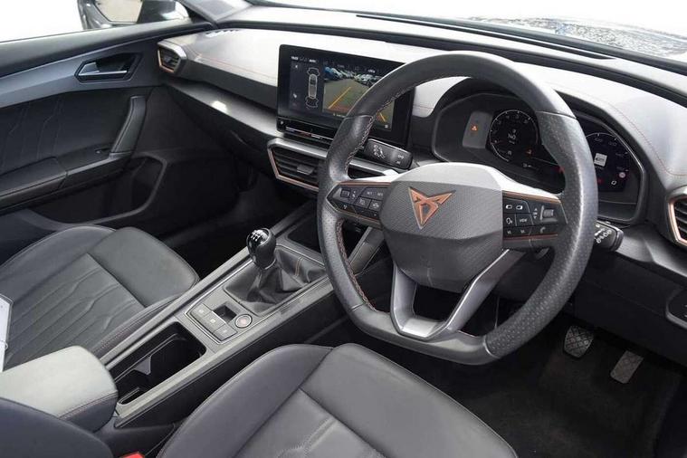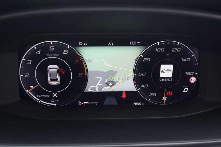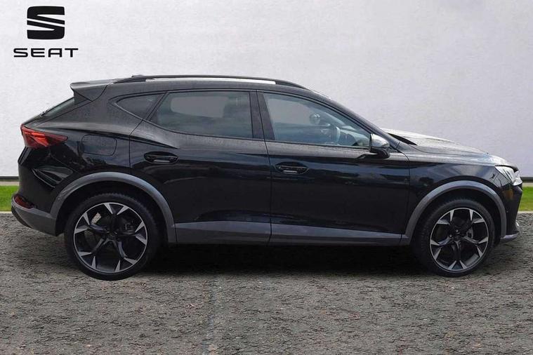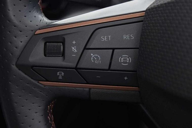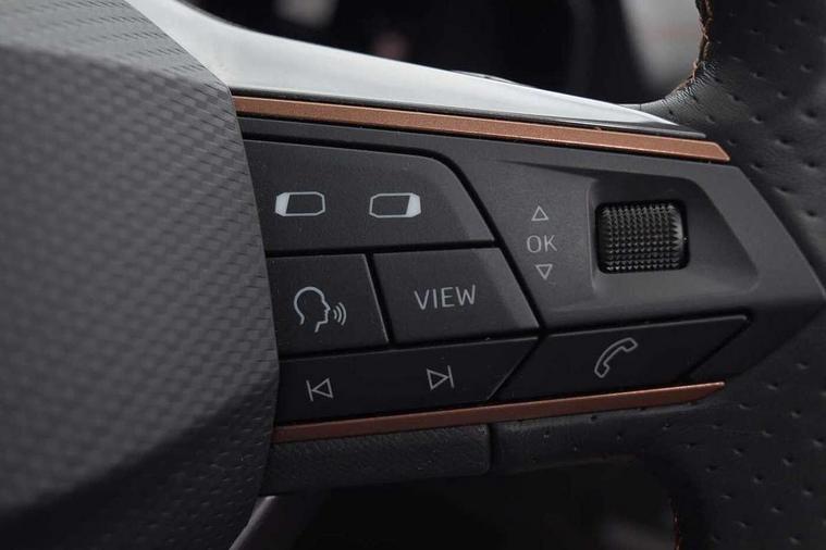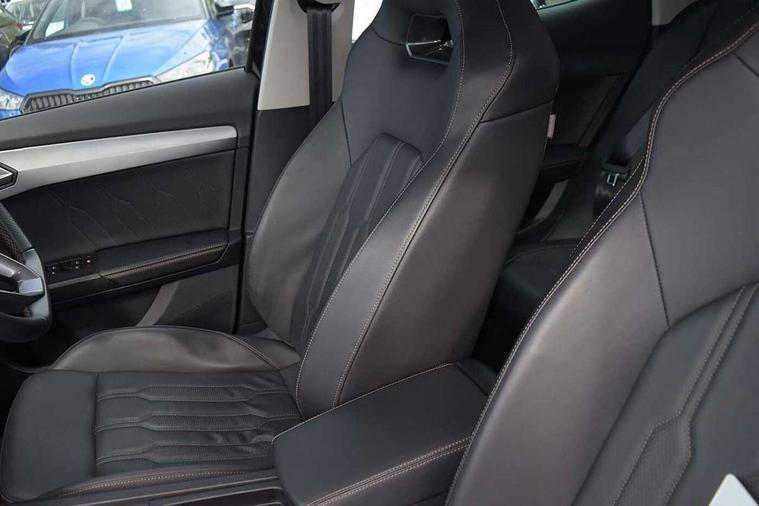 'Lights On' Reminder warning buzzer, 10" Digital cockpit, Digital clock, E-call, Electric speed sensitive power steering, Full Link Smartphone Integration with Mirror Link, Apple Car Play, Google Android Auto with USB Type C cable for Apple and Android compatibility, Lane keeping system, Low fuel warning light, Outside temperature display, Park assist system, Rear view camera, RPM counter, SEAT Drive profile - Four different models normal-sport-eco-individual, steering response, throttle response, Trip computer, Wireless phone charger, 9.2" colour touchscreen with navigation system, voice control and USB port (type c), Bluetooth interface for hands free and audio streaming, DAB digital radio and AM/FM radio, Steering wheel mounted audio controls, Anti theft roof antenna, Auto dimming interior rear view mirror, Automatic activation of hazard warning lights, Body coloured bumpers, Body coloured door handle inserts, Chrome roof rails and window surrounds, Dark tinted rear windows, Electric front/rear windows, Electrically adjustable, heated and folding door mirrors, Front fog lights with cornering function and rear fog light, FULL LED automatic headlights with dynamic headlight range control, coming and leaving home, LED daytime running lights, LED rear tail lights and licence plate lights, Protective side mouldings, Rain sensing wipers, Rear side wing doors, Rear spoiler, Rear window wash/wipe, Roof colour door mirrors, Third brake light, Twin exhaust pipe styling hidden exhaust pipe, Visible VIN plate, 2 cupholders, 3 seat bench in 2nd row, 60/40 split folding rear seat, Aircare filter, Black interior roof, Double boot floor, Driver sunvisor with covered mirror + card holder, Dual zone climate control, Front courtesy light with front reading lights, Front sport seats, Gear shift indicator, Grey interior air vents, Height adjustable front seats, Height/reach adjustable steering column, Illuminated boot, Instrument lighting with brightness control, Interior ambient lighting, Interior light in footwell, central console and door panel, ISOFIX points in outer rear seats with top tether anchorage points, Microsuede cloth upholstery + sports bucket seats, Passenger sunvisor with vanity mirror, Perforated flat bottomed leather steering wheel/gear knob/handbrake with red stitching and FR logo, Potentiometer, Single front passenger seat, Two front and three rear height adjustable headrests, Interior chrome pack - Arona, Safe and driving pack (S) - Arona, 3 point seatbelts on all rear seats, ABS, Active front headrests, Child locks on rear doors, Driver and front passenger airbags with front passenger airbag de activation, front side and curtain airbags, Electronic Stability Control (ESC), Emergency Brake Assist (EBA) and front assist, Front and rear seatbelt reminder, Hill hold control, Multi-Collision braking, Tiredness recognition system, Traction control, Tyre pressure monitoring system, Alarm with back-up horn, Electronic engine immobiliser, KESSY Keyless entry and go, Locking wheel bolts, Remote central locking + deadlocks, Tow away protection, Titan black dashboard, 18" Performance Cosmo grey alloy wheels,