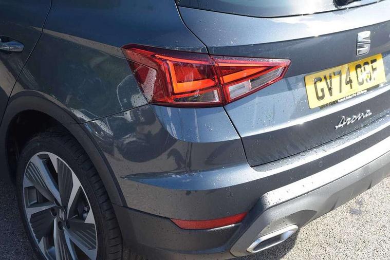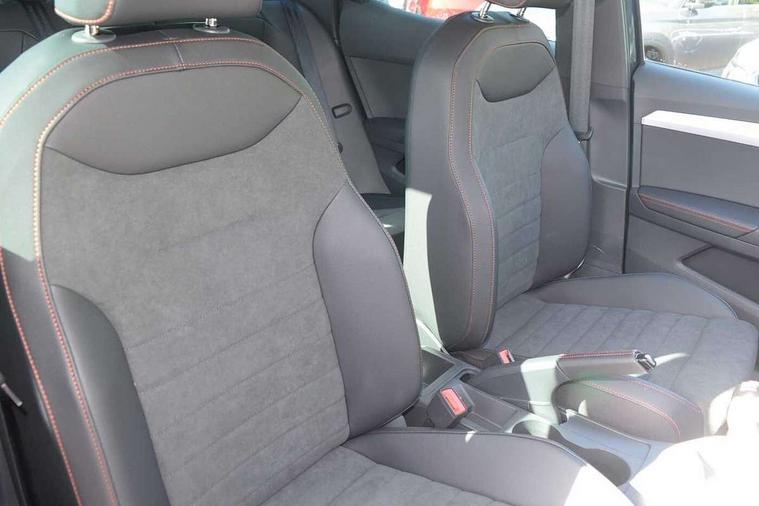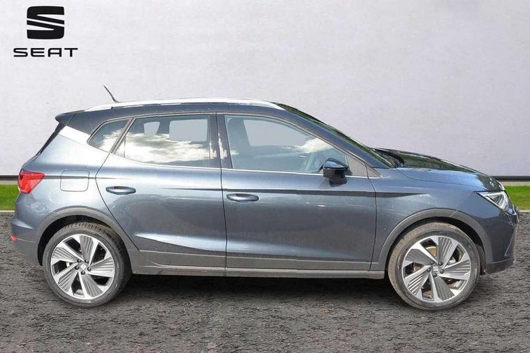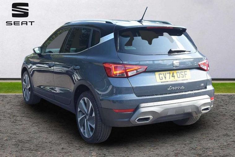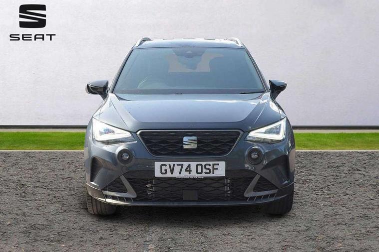 'Lights On' Reminder warning buzzer, 10" Digital cockpit, Digital clock, E-call, Electric speed sensitive power steering, Full link smartphone integration with mirror link, wireless apple carplay, Google android auto + USB Type C cable for apple and android devices, Lane keeping system, Low fuel warning light, Outside temperature display, RPM counter, SEAT Drive profile - Four different models normal-sport-eco-individual, steering response, throttle response, Trip computer, Wireless phone charger, 6 speakers, 9.2" colour touchscreen with navigation system, voice control and USB port (type c), Bluetooth interface for hands free and audio streaming, DAB digital radio and AM/FM radio, Steering wheel mounted audio controls, Anti theft roof antenna, Auto dimming interior rear view mirror, Automatic activation of hazard warning lights, Body coloured bumpers, Body coloured door handle inserts, Chrome roof rails and window surrounds, Dark tinted rear windows, Electric front/rear windows, Electrically adjustable, heated and folding door mirrors, Front fog lights with cornering function and rear fog light, FULL LED automatic headlights with dynamic headlight range control, coming and leaving home, LED daytime running lights, LED rear tail lights and licence plate lights, Protective side mouldings, Rain sensing wipers, Rear side wing doors, Rear spoiler, Rear window wash/wipe, Roof colour door mirrors, Third brake light, Twin exhaust pipe styling hidden exhaust pipe, Visible VIN plate, 2 cupholders, 3 seat bench in 2nd row, 60/40 split folding rear seat, Aircare filter, Black interior roof, Double boot floor, Driver sunvisor with covered mirror + card holder, Dual zone climate control, Front comfort seats, Front courtesy light with front reading lights, Front seat back storage pockets, Gear shift indicator, Heated front seats, Height adjustable front seats, Height/reach adjustable steering column, Illuminated air vent surrounds, Illuminated boot, Instrument lighting with brightness control, Interior ambient lighting, Interior light in footwell, central console and door panel, ISOFIX points in outer rear seats with top tether anchorage points, Microsuede cloth upholstery, Passenger sunvisor with vanity mirror, Perforated flat bottomed leather steering wheel/gear knob/handbrake with red stitching and FR logo, Potentiometer, Single front passenger seat, Two front and three rear height adjustable headrests, Interior chrome pack - Arona, Safe and driving pack (S) - Arona, 3 point seatbelts on all rear seats, ABS, Active front headrests, Child locks on rear doors, Driver and front passenger airbags with front passenger airbag de activation, front side and curtain airbags, Emergency Brake Assist (EBA) and front assist, Front and rear seatbelt reminder, Hill hold control, Multi-Collision braking, Tiredness recognition system, Traction control, Tyre pressure monitoring system, Alarm with back up horn with tow away protection, Deadlock, Electronic engine immobiliser, Locking wheel bolts, Remote central locking, Titan black dashboard, 18" Performance Cosmo grey matt alloy wheels,