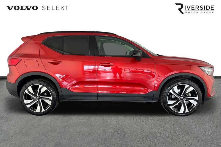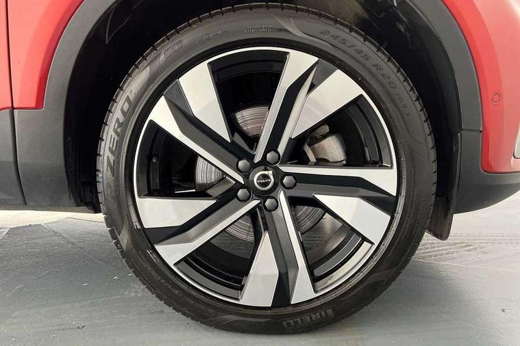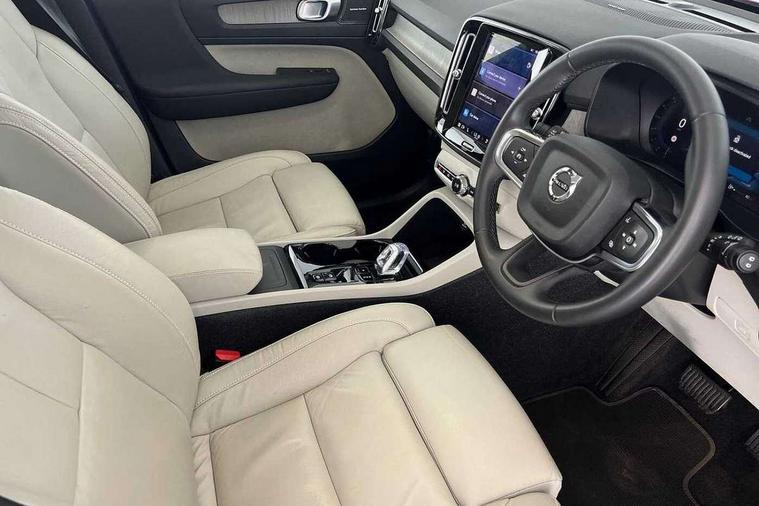 12.3" Progressive Driver Display, 360 degree surround view parking camera with side proximity sensors, 9" centre console portrait touch screen, Adjustable steering wheel force, Bluetooth hands free telephone kit, E-call, Front park assist, Google automatic services - Nav with google maps, apple carplay/android auto, voice recognition with google assistant, Hands free power tailgate, Lane keep assist with driver alert control, Oncoming Lane Mitigation, Rear park assist, Speed limiter, Speed sensitive steering, Wireless/Inductive Mobile Phone Charging, Dynamic chassis, DAB Digital radio, Premium Sound by Harman Kardon, Dolby Pro Logic II Surround Sound, Dirac Unison, 12 speakers/600W and subwoofer, Steering wheel mounted remote controls, Active bending pixel LED headlights with adaptive shadow technology, Active high beam incorporating daytime running lights, Adaptive brake lights with high level LED brake lights, Auto dimming interior mirror, Automatic headlamp levelling, Dark tinted windows for rear door side windows and cargo compartment, Front aluminium tread plates, Front and rear electric windows, Headlight cleaning system, High gloss black front and rear skid plate, High gloss black mesh front grille with high gloss black surround, High gloss black window trim, Home safe and approach lighting, Integrated roof rails in high gloss black, LED front fog lights, Power glass tilt and slide panoramic sunroof with sun curtain, Puddle lights, Rain sensor with automatic windscreen wiper activation, Rear side wing doors, Rear wiper, Roof antenna, Roof spoiler, Visible VIN plate, 12V socket in front tunnel console and luggage compartment, 2-Zone electronic climate control with CleanZone air quality system and pollen filter, 3 seat bench in 2nd row, 3 Spoke tailored steering wheel with chrome trim, 60/40 versatile split folding rear seat, A-pillar parking ticket holder, Ambient front door and instrumental panel lighting, Centre console cupholders and storage, Flexible load floor and grocery bag holder, Floor mats, Front door pocket and front cupholder illumination, Front footwell illumination, Front headrests, Front reading light and theatre lighting, Front seat cushion extensions, Front tunnel pocket, Glovebox bag hook, Heated front seats, Height adjustable passenger seat, Height/reach adjustable steering column, High gloss centre tunnel deco, Illuminated glovebox, Illuminated luggage compartment, Illuminated tailgate, Illuminated vanity mirrors, Integrated waste bin, Isofix attachments on outer rear seats, Load protection net, Multi directional lumbar support, Power driver seat with memory + exterior mirrors memory, Power folding rear headrests, Power passenger seat, Rear armrest / integral cup holders / storage tray, Rear reading and courtesy lights, Single front passenger seat, Underfloor cargo storage, Climate pack without heated front seats - XC40, Driver assist pack - XC40, 3x3 point rear seatbelts, City safety with steering support with Pedestrian + cyclist + front collision warning with full auto brake and rear auto brake, Drivers knee airbag, Dual stage driver/passenger airbags, Electronic parking brake with auto hold, First aid kit, Front and outer rear seatbelt reminder and pretensioners, Front seats SIPS airbags, Hill descent control, Hill start assist, Inflatable curtain, Passenger airbag cut-off device, Power child locks on rear doors, Road sign information display, Run off Road Mitigation, Run off Road Protection, SIPS (Side Impact Protection System), Slippery road and hazard light alert, Stability and Traction Control with Spin control, Engine Drag Control and Corner Traction Control, Tyre pressure monitoring system, Vehicle deceleration control with Anti-lock Brake System, Electronic Brake Distribution and Emergency Brake Assist, Warning triangle, WHIPS whiplash protection system - front, Anti-theft alarm including immobiliser/volume sensor + level sensor, Key integrated remote control central locking + fuel flap with deadlocking system and auto open/close power windows, Keyless drive includes keyless entry and keyless start, Locking wheel nuts,