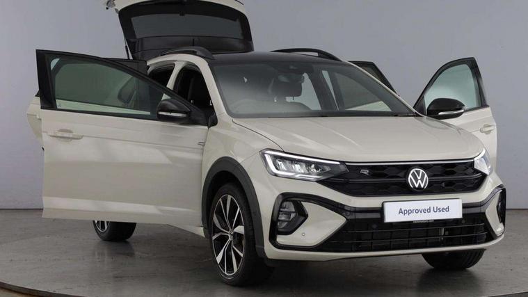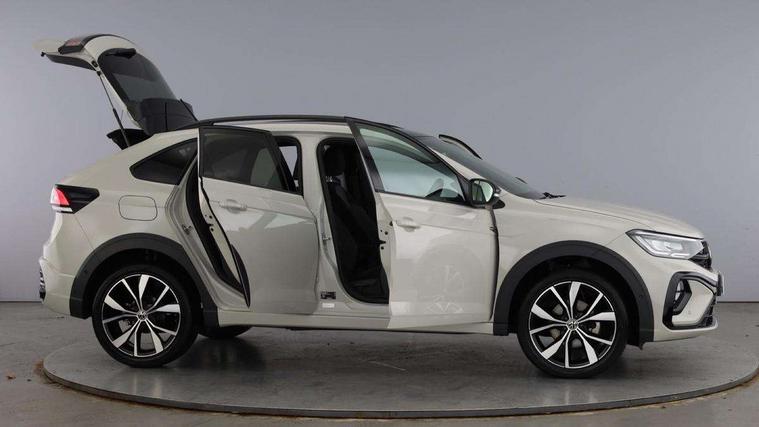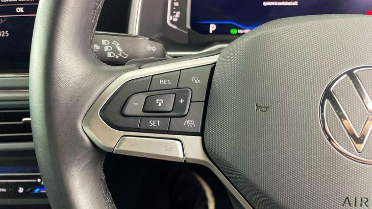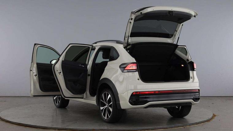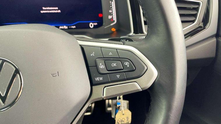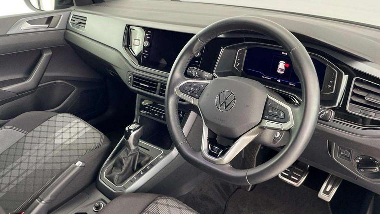 Adaptive cruise control, Advanced driver attention and drowsiness monitor, App-Connect including App-Connect Wireless, Digital cockpit pro - 10.25" high resolution TFT dash display screen with customizable menus and information, Driving profile selection, Dynamic road sign display, e-Call (emergency call), Power Steering, Travel assist including emergency assist, Washer fluid level indicator, Wireless Charging including Bluetooth, Start-stop system with battery regeneration (recuperation - energy recovery during braking), XDS electronic differential lock for improved traction and handling, Digital radio reception (DAB+), Diversity antenna for FM reception, WeConnect plus, Ambient lighting with logo projection, Aspherical driver's exterior mirror, Auto headlights, Body coloured bumpers, Bumpers in R-Line style, Electric windows, External USB type C socket and charging sockets, Front scuff plates with R-Line logo, LED rear combination lamp, LED third brake light, Left convex exterior mirror, Power folding adjustable/heated exterior mirrors and front passenger exterior mirror lowering function, Rear fog light on one side, reversing light on both sides, Rear side wing doors, Rear wash/wipe with intermittent wipe setting, 12V socket in centre console, 2 front reading lights, 3 rear head restraints, 3 seat bench in 2nd row, Air care climatronic air conditoning system with active combination filter and 2-zone temperature control, Black carpets, Black roof lining, Child seat anchor for child seat system i-Size, 2x top tether and child seat anchor in front on front passenger side, Chrome bezel for instrument cluster, vents, door handles + gear shift, Driver and front passenger seat height adjustment, Front + rear carpet mats, Front centre armrest, Front footwell illumination, Front sports comfort seats, Height and reach adjustable steering wheel, Interior ambient lighting and surround lighting, Karoso artvelours cloth upholstery, Leather trimmed gear knob, Leather wrapped multifunction steering wheel, Luggage compartment floor, Luggage compartment light, Lumbar support for driver's and front passengers seat, Seat covers in grey + titanium black, Single front passenger seat, Split folding backrest with centre armrest and unsplit rear seat bench, Stainless steel pedals, Storage compartment under front seats, Sun visors with illuminated vanity mirrors, Chrome Package - Taigo, Drivers assistance pack - Taigo, Light and Sight pack including High beam assist - Taigo, 2 x 3-point seatbelts/outer rear seats with ECE label, 3-point seat belts in front with pretensioner and height adjustment, 3-point seatbelt for centre rear seat, Adaptive driver and front passenger airbags with passenger airbag deactivation function, Driver and front passenger safety-optimised head restraints, Electronic stability control, Extended and predictive pedestrian/ cyclist protection, Front and rear disc brakes, Front curtain and side airbags with center airbag, Hill start assist, Manual rear child locks, Single tone horn, Tyre pressure loss indicator, Anti-theft alarm system with interior monitoring, backup horn, and towing protection, Grey anodised matte decorative inserts in dash and front door panels, Low rolling resistance tyres,
