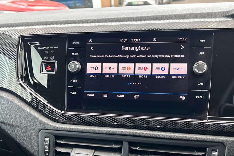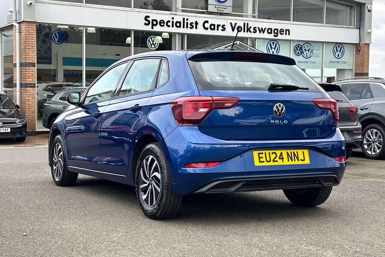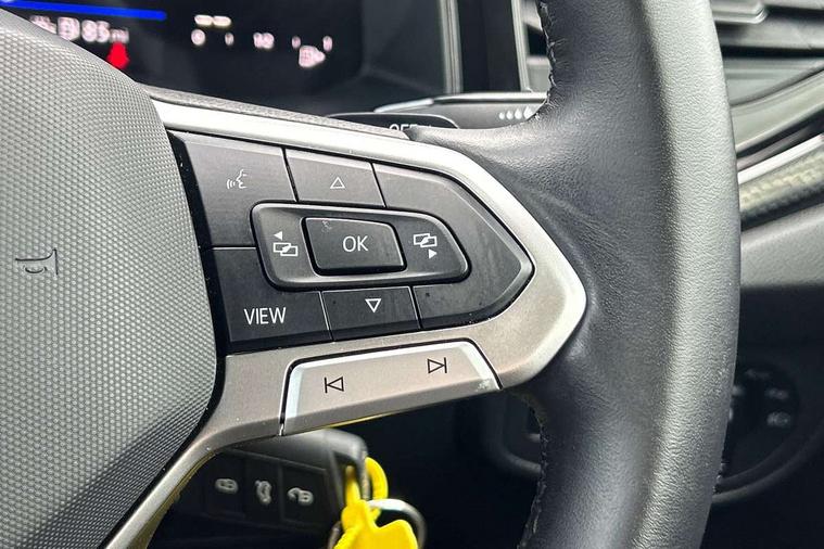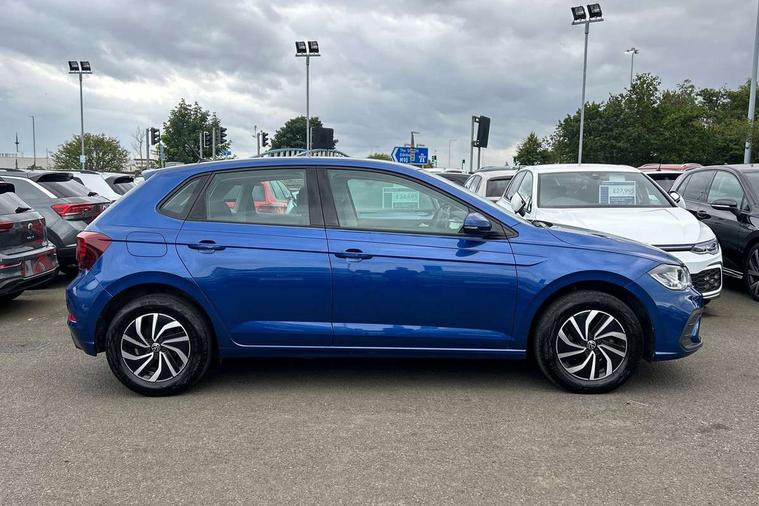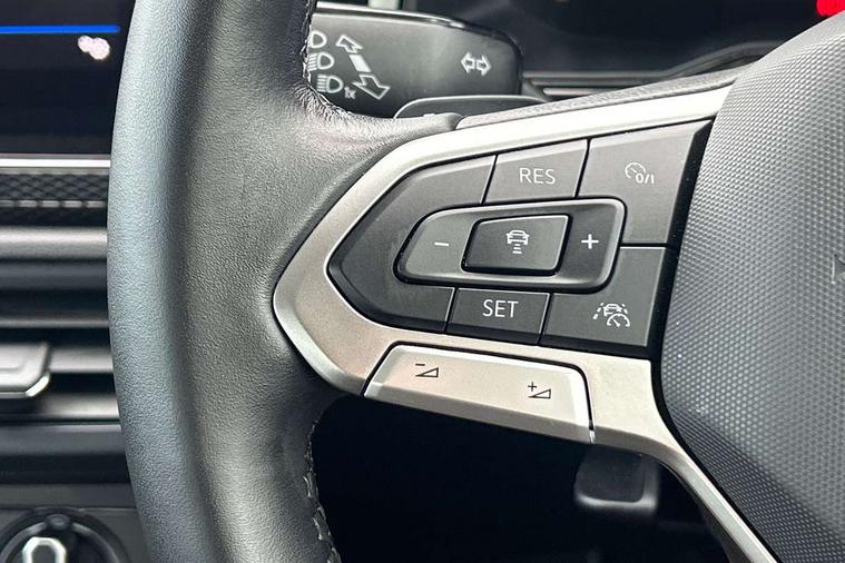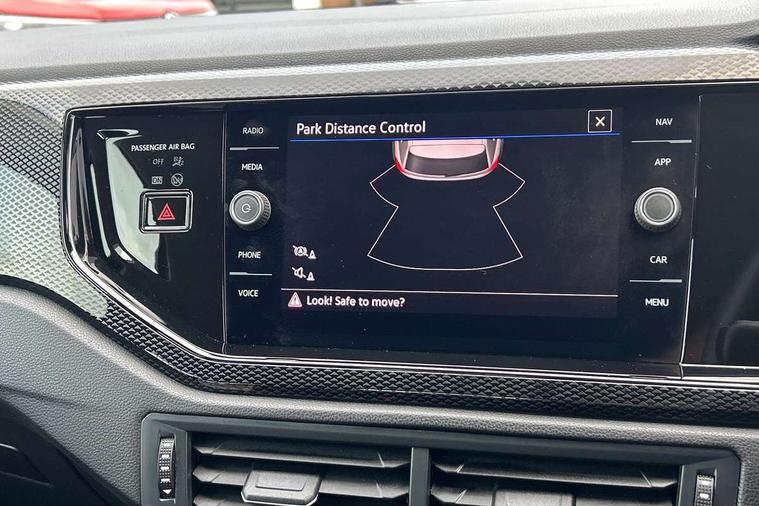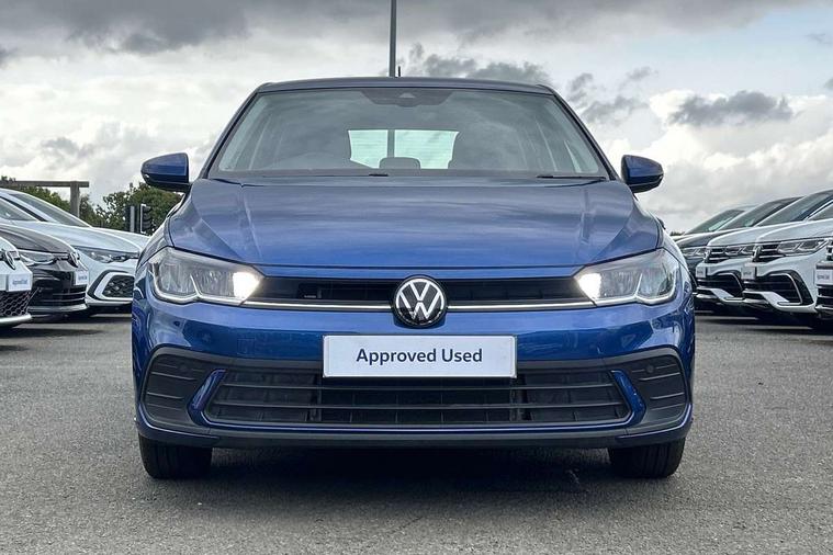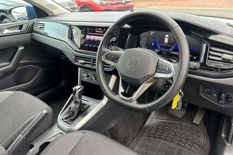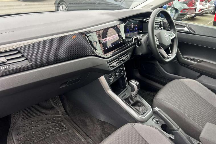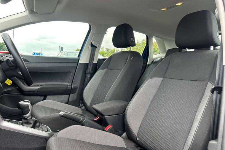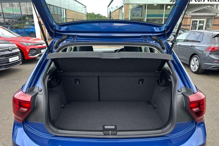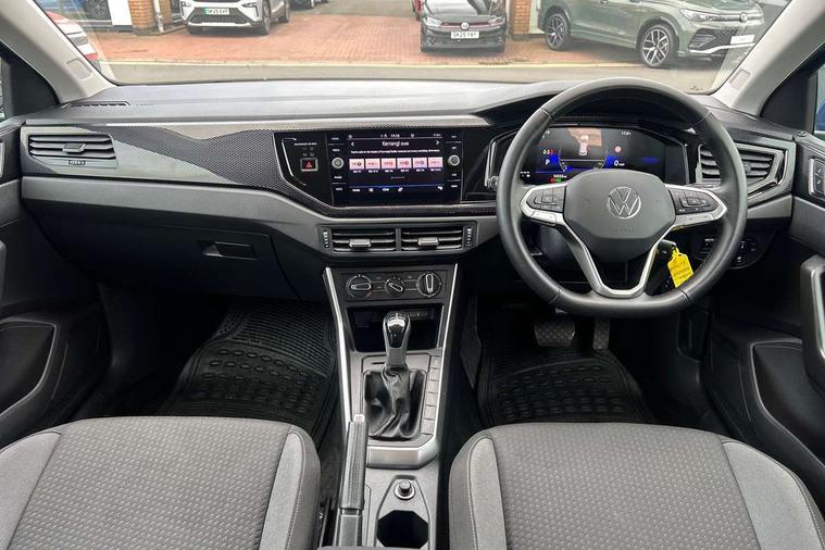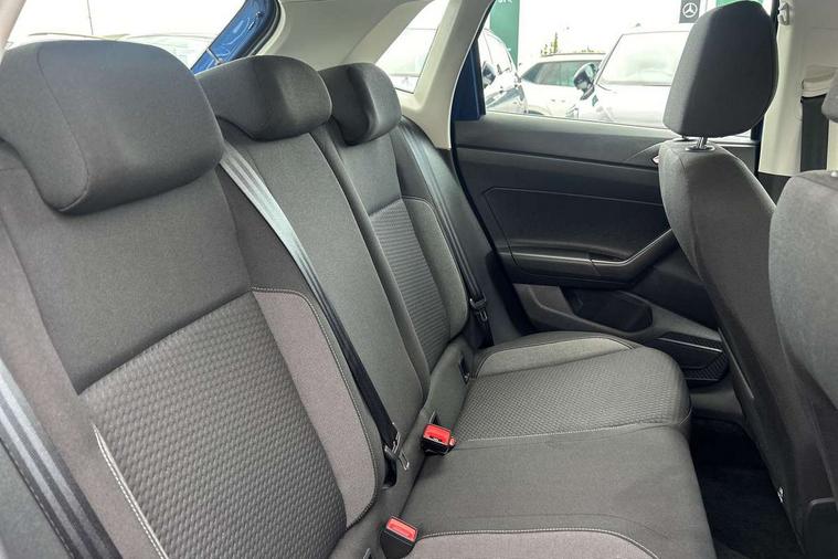 Adaptive cruise control with follow-to-stop and speed limiter, Advanced driver attention and drowsiness monitor, Bluetooth mobile phone interface, Dynamic road sign display, Emergency call service, Power assisted speed sensitive steering, Preparation for navigation system with media and internet package, Preparation for We connect and We connect plus, Speedo and rev counter, electronic odometer, trip, service interval display and exterior temperature gauge, Standard rear axle, Travel Assist - Lane keeping system and traffic jam assist, Travel assist including emergency assist, Trip computer, Warning signal and warning light for front and rear seatbelts not fastened, Washer fluid level indicator, Wireless app connect, Front wheel drive, Rear shock absorpion, Start-stop system with battery regeneration (recuperation - energy recovery during braking), DAB Digital radio, Diversity antenna for FM reception, Automatic dimming interior rear view mirror, Automatic headlight control with LED separate daytime running lights with coming/leaving home function, Body colour bumpers with chrome inserts, Body colour door handles, Body colour door mirrors, Electric front windows, Engine badge deletion, Headlight range adjustment, Heat insulating and laminated safety glass windshield, Heat insulating darkened glass in side and rear windows, Heat insulating glass windscreen, LED Headlights, LED rear combination lamps, Power folding adjustable/heated exterior mirrors and front passenger exterior mirror lowering function, Rain sensor, Rear electric windows, Rear fog light, Rear side wing doors, Rear windscreen washer and wiper with interval delay, Third brake light, 12V power socket in centre console, 2 front and 2 rear reading lights with switch off delay and dimmer, 2 USB-C ports in the front, 2 USB-C charging sockets on the center console in the rear, 3 rear head restraints, 60/40 split folding rear seat and rear seat bench not split, Ceramique roof lining, Chrome plated radiator grille inserts, air vent surrounds and light switch surrounds, Door and side trim panel, Driver and front passenger seat height adjustment, Driver/passenger sunvisors with illuminated vanity mirrors, Front centre armrest, Front seat backrest storage pockets, Front standard seats, Handbrake lever handle in leather, Hartley/Thomas cloth upholstery, Headliner in recycled material, Isofix child seat preparation easy-fit (for two outer rear seats, and front passenger seat) compatible with I-size, Leather trimmed gear knob, Luggage compartment cover, Luggage compartment lighting, Removable luggage compartment floor, Single front passenger seat, Standard climatic zones, Standard pedal cluster, Three spoke leather wrapped multifunction steering wheel with shifting paddles, Light and vision pack - Polo, 3 point height adj front seatbelts + pretensioners, 3x3 point rear seatbelts, ABS, Driver and front passenger airbag with front passenger airbag deactivation, Drivers and front passengers safety optimised head restraints, ESC (Electronic stability control) + EDL (Electronic Differntial lock) and ASR (Traction control), Extended and predictive pedestrian/ cyclist protection, Front assist with autonomous emergency braking (for Adaptive Cruise Control ACC up to 130 mph), Front curtain and side airbags with center airbag, Front disc brakes, Hill hold control, Manual child lock in rear doors, Rear drum brakes, Single tone horn, Tyre pressure loss indicator, Alarm with interior protection, Anti-theft alarm system with interior monitoring, backup horn, and towing protection, Anti-theft wheel bolts, Electronic engine immobiliser, Lava stone black gloss/matt decorative inserts in dash and front door panels, Low rolling resistance tyres,
