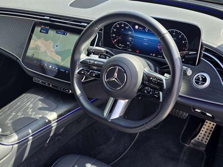 12.3" high resolution cockpit display, 14.4" high resolution central media display with latest MBUX generation, 5G Communications module, Attention assist, Blind spot assist, Bluetooth, Brake wear warning display, Direct steer speed sensitive steering, ECO start/stop function, Evasive manoeuvre support, Fluorescent jacket for driver, Hard disc navigation, MBUX navigation premium, MBUX voice control, Mercedes me connect including emergency call system, accident recovery, breakdown and maintenance management, Outside temperature display, Preinstallation for live traffic, Remote Services Premium, Service indicator (ASSYST), Status display for rear seat belts in instrument cluster, Trip computer in multifunction display showing current fuel consumption, Wireless charging, Wireless smartphone integration with Apple CarPlay and Android auto, 48V Mild hybrid technology, 66 litre fuel tank, 9G TRONIC automatic transmission, Agility control suspension with selective damping system and lowered by 15mm, Integrated starter generator Gen 2, Sporty engine sound system, DAB Digital radio, Preinstallation for MBUX Entertainment Plus, 3rd brake light, Adaptive brake lights, Aerial integrated in rear window, AMG Line exterior, Auto dimming driver's door mirror, Auto dimming rear view mirror, Digital air vent control, Electric folding door mirrors, Electric windows with one touch opening/closing and obstruction sensors, Electrically adjustable and heated door mirrors, Heat insulating privacy glass, LED daytime running lights, LED high performance headlights with adaptive highbeam assist, Pre-installation for roof rail systems, Rear boot, Rear side wing doors, Surround lighting with logo projection, 3 seat bench in 2nd row, 4 way lumbar support, Ambient lighting, AMG brushed stainless steel sports pedals with rubber studs, AMG floor mats, AMG line interior, Automatic child seat recognition sensor, Central stowage compartment with USB socket for use with Android Auto and Apple CarPlay, Climatised front seats, Comfort seats, Courtesy lights in rear grab handles with reading light functionality, Folding rear seat backrest, Front centre armrest with stowage compartment, Gearshift paddles in galvanised silver, Glove compartment - lockable, air conditioned and illuminated, Head restraints for driver and front passenger (four-way adjustability) and in rear (two-way), Heated front seats, Instrument panel and door beltlines in artico nappa look leather, ISOFIX child seat attachment points two outer rear seats, Leather upholstery, Multifunction sports steering wheel in nappa leather, Roof liner in black fabric, Seat occupancy sensor for front passenger seat, Single front passenger seat, Steering wheel touch control buttons for audio and onboard settings, Sunvisors with illuminated vanity mirrors, THERMATIC 2 zone automatic climate control, Night pack - E class, Parking package with 180 degree camera - E Class, USB plus package - E Class, 3x3 point rear seatbelts, Active bonnet pedestrian safety measure which detects an impact and raises bonnet, Adaptive brake system with HOLD function and brake drying in the wet, Anti-lock braking system (ABS), Automatic front passenger airbag deactivation, Central airbag, Childproof locks manually operated for rear doors and electrically operated for rear power windows, Driver and adaptive front passenger airbags, Electronic parking brake, Electronic Stability Programme, Hill start assist, Knee airbags, Pedestrian protection, Pre-Safe anticipatory safety system, Tyre pressure monitoring system, Warning triangle and first aid kit, Window airbags, Alarm system/interior protection/immobiliser, Central locking with interior switch, automatic locking and crash sensor with emergency opening function, Guard 360 degree vehicle protection, Increased anti theft protection, Keyless Go, Urban guard vehicle protection plus, Centre console in black open pore ash wood trim and dash trim with laser cut backlit Mercedes-Benz star pattern, 18" AMG 5 twin spoke design alloy wheels painted in tantalite grey, Summer tyres, Tirefit,