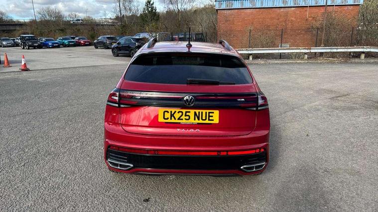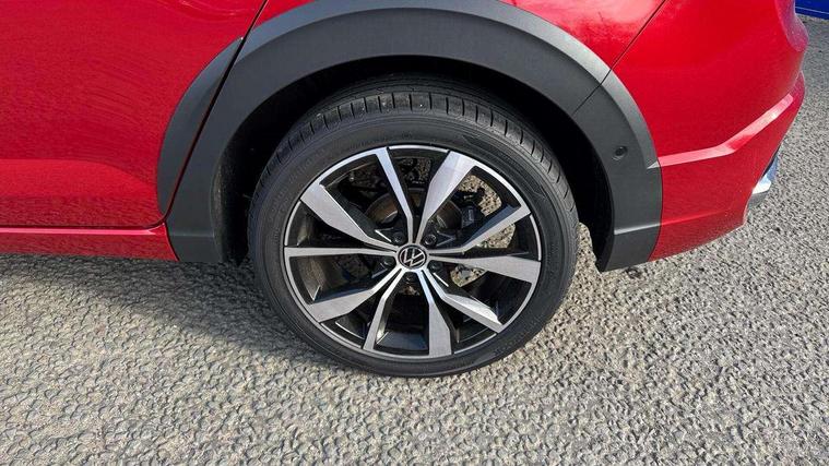 Adaptive cruise control, Advanced driver attention and drowsiness monitor, App-Connect including App-Connect Wireless, Digital cockpit pro - 10.25" high resolution TFT dash display screen with customizable menus and information, Driving profile selection, Dynamic road sign display, e-Call (emergency call), Power Steering, Travel assist including emergency assist, Washer fluid level indicator, Wireless Charging including Bluetooth, Start-stop system with battery regeneration (recuperation - energy recovery during braking), XDS electronic differential lock for improved traction and handling, Digital radio reception (DAB+), Diversity antenna for FM reception, WeConnect plus, Ambient lighting with logo projection, Aspherical driver's exterior mirror, Auto headlights, Body coloured bumpers, Bumpers in R-Line style, Electric windows, External USB type C socket and charging sockets, Front scuff plates with R-Line logo, LED rear combination lamp, LED third brake light, Left convex exterior mirror, Power folding adjustable/heated exterior mirrors and front passenger exterior mirror lowering function, Rear fog light on one side, reversing light on both sides, Rear side wing doors, Rear wash/wipe with intermittent wipe setting, 12V socket in centre console, 2 front reading lights, 3 rear head restraints, 3 seat bench in 2nd row, Air care climatronic air conditoning system with active combination filter and 2-zone temperature control, Black carpets, Black roof lining, Child seat anchor for child seat system i-Size, 2x top tether and child seat anchor in front on front passenger side, Chrome bezel for instrument cluster, vents, door handles + gear shift, Driver and front passenger seat height adjustment, Front + rear carpet mats, Front centre armrest, Front footwell illumination, Front sports comfort seats, Height and reach adjustable steering wheel, Interior ambient lighting and surround lighting, Karoso artvelours cloth upholstery, Leather trimmed gear knob, Leather wrapped multifunction steering wheel, Luggage compartment floor, Luggage compartment light, Lumbar support for driver's and front passengers seat, Seat covers in grey + titanium black, Single front passenger seat, Split folding backrest with centre armrest and unsplit rear seat bench, Stainless steel pedals, Storage compartment under front seats, Sun visors with illuminated vanity mirrors, Chrome Package - Taigo, Drivers assistance pack - Taigo, Light and Sight pack including High beam assist - Taigo, 2 x 3-point seatbelts/outer rear seats with ECE label, 3-point seat belts in front with pretensioner and height adjustment, 3-point seatbelt for centre rear seat, Adaptive driver and front passenger airbags with passenger airbag deactivation function, Driver and front passenger safety-optimised head restraints, Electronic stability control, Extended and predictive pedestrian/ cyclist protection, Front and rear disc brakes, Front curtain and side airbags with center airbag, Hill start assist, Manual rear child locks, Single tone horn, Tyre pressure loss indicator, Anti-theft alarm system with interior monitoring, backup horn, and towing protection, Grey anodised matte decorative inserts in dash and front door panels, Low rolling resistance tyres,