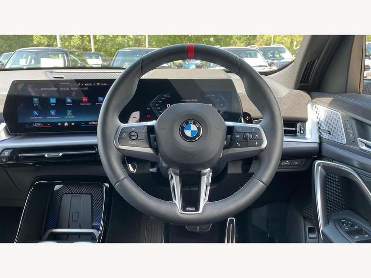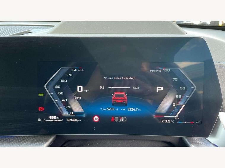 4G LTE connectivity, Attentiveness assist, Automatic start/stop function, Bluetooth / Wi-Fi interface with hands free system, BMW ConnectedDrive store and BMW Remote softwre upgrade, BMW Intelligent Personal Assistant, BMW Live Cockpit Plus - Widescreen display with 10.25" instrument cluster and 10.7" CID display, BMW Maps, BMW Operating System 9 with variable, confirgurable widgets, BMW Teleservices, Brake pad wear indicator, Condition based service, Connected drive services, Drive off assistant, Electrically opening/closing tailgate with opening/closing with remote control and contactless opening and closing, Gear display in instrument cluster including recommended gear, iDrive controller, Language version English, My modes (Personal / Efficient / Sport), Parking assistant with reversing assistant, active PDC, lateral parking aid and rear view camera, Personal Profile, Servotronic PAS, Smartphone integration for Apple CarPlay/Android Auto, Speed limiter, Touch operation on control display, Dynamic stability control, Larger Fuel Tank, M Adaptive suspension, Performance Control, Petrol Particulate Filter, Steptronic transmission with double clutch and gear shift paddles, BMW Personal eSim, DAB Digital radio, Harman Kardon HiFi loudspeaker system, Tuner with diversity reception and RDS, AM radio and FM radio, 4 exhaust tailpipes with tailpipe trims in pearl chrome, B-pillar and front/rear door trim panels and exterior mirrors in M styling in black high gloss, BMW kidney Iconic Glow, BMW M radiator grille with horizontal struts in high gloss black including M badge, Contoured M rear spoiler in vehicle colour with side aeroblades in high gloss black, Dynamic brake lights, Electric adjustable heated door mirrors, Electric windows - front and rear, with open/close fingertip control, anti-trap facility and comfort closing, Folding door handles integrated flush with surface, Front and rear bumper panel in M styling, Front door exit lights, Heated rear window, Home light, LED 3rd brake light integrated in rear window frame, LED daytime running lights, LED number plate light, M identification on the sides, M signature on front right/ left side panel, Matt black roof strips, Rain sensor including auto headlights activation, Rear side wing doors, Rear wiper, Roof mouldings in vehicle colour, Side sill trim panel in M styling, Sun protection glass, Trailer stabilisation logic, Welcome lighting, Window recess finisher strips and side window frames in black high gloss, Windscreen washer nozzle for rear view camera, Windscreen wipers front with heated washer nozzles, 12V - Power sockets with front centre console and luggage compartment, 12V socket in right side trim panel, 2 bag hooks in luggage compartment, 2 cup holders in front centre console, 2 front reading lights, 2 x USB Type C ports for charging and data transmission (front centre console) and 2 x USB Type C ports for charging (rear centre console), 3 rear headrests, 3 seat bench in 2nd row, 3 upper retaining strap clips integrated into rear panels of seat backrests, 40:20:40 split folding rear seats, Ambient interior lighting, Anthracite front and rear floor mats, Bottle trays in all doors, Child seat ISOFIX attachment for two outer rear seats and front passenger seat with anchorage points, Driver and front passenger heated seats, Dual zone automatic air conditioning, Flat air vents on instrument panel in high gloss black, adjustable seats with elements in pearl chrome, Footrest and pedals in stainless steel look, Front and rear door pockets, Front and rear footwell lights, Front armrest with integrated control panel, Front centre console storage compartment, Front/rear adjustable head restraints, Glove compartment, Interior door handle recess light on all doors, Light on right in luggage compartment, M headliner Anthracite-A pillar trim panels, headliner in anthracite & B, C, D pillar upper trim panels, sun visors, grab handles, microphone cover in black, M leather steering wheel, Map pockets on the seats (version depending on equipment), Middle centre console storage compartment, One piece parcel shelf opens together with tailgate and removable, Rear armrest in door trim panel, Rear coat hooks, Selector lever with toggle operation, Single front passenger seat, Storage compartment lighting in centre console and storage tray in centre stack, Storage compartment net in left side trim panel, Storage compartment with folding cover under centre console armrest cushion, Storage tray in right side trim panel, Sun visors with illuminated vanity mirrors, Tilt adjustment incl. cargo function of 2nd row of seats, ABS, Automatic hold function, BMW emergency call, Braking readiness, Child lock for rear electric windows, Cornering brake control (CBC), Crash Sensor - activates hazard/interior lighting + unlocks doors, Driver/Front Passenger airbags, Driver/front passenger side airbags, Dry braking, Dynamic brake control, Electromechanical parking brake, Energy recovery system, First aid kit, Front and rear brake discs, Front centre airbag between driver and front passenger seats, Front passenger airbag deactivation, Head airbags for all 4 outer seats, Integrated brake system, Locking of doors after driving off, M Sport brakes with dark blue metallic calipers, PC iBrake PostCrash approach control warning with light braking function, Rear door child safety locks, Three point seat belts in all seats, Tyre pressure monitor, Warning triangle, Alarm system with tilt sensor, monitoring doors, bonnet interior and tailgate, Closing system with central locking including 2 vehicle keys with integrated emergency key, Locking wheel bolts, Front centre console trim in high gloss black, Luxury instrument panel, Tyre repair kit plus,