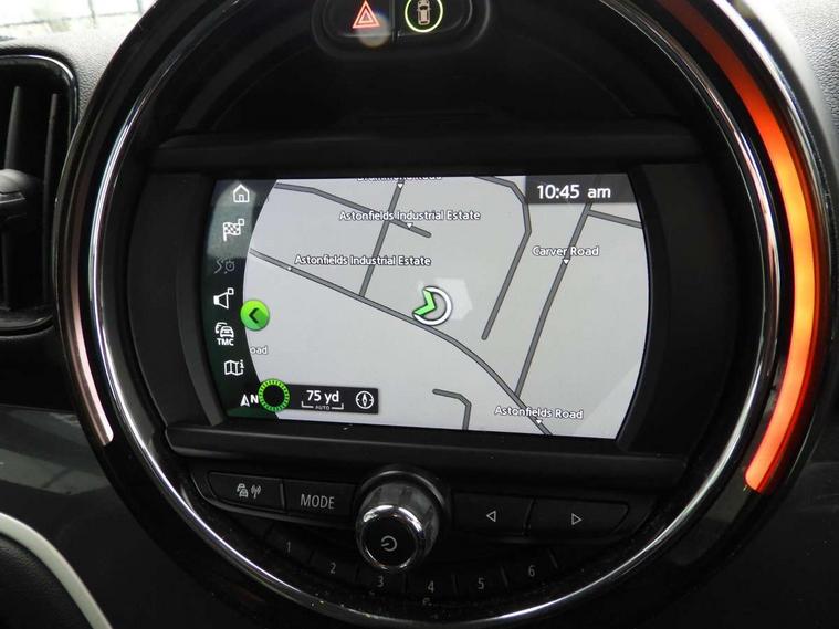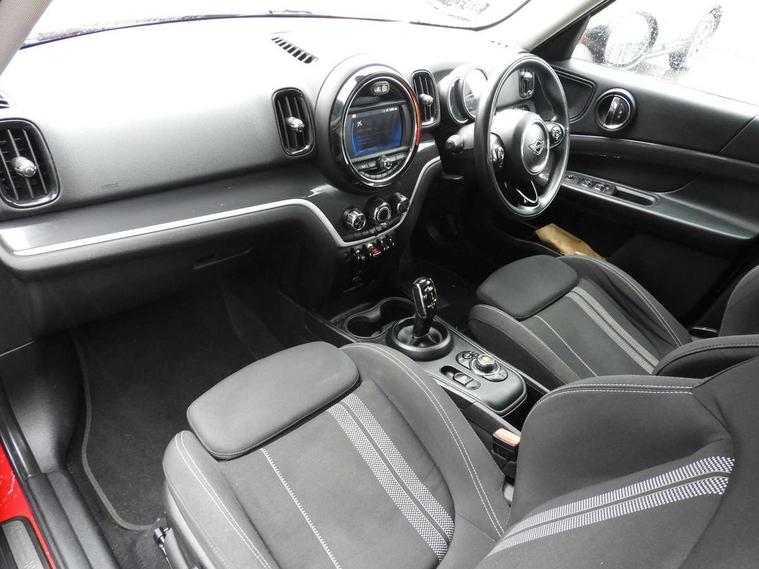 Active Guard incl speed limiting and lane departure functions with auto steering, and front collision warning with brake intervention, Automatic start/stop function with brake energy recuperation, Electro-mechanical speed dependant steering assistance, Instrument cluster, Mini E-call, MINI TeleServices, On board computer, Rear parking distance control, Double Vanos system, Fully variable valve control, High precision injection, Performance Control, Steptronic transmission with double clutch, FM tuner and DAB digital radio, Bonnet scoop, Chrome border honeycomb structure radiator grille with S badge, Chrome fuel filler cap, Day time driving lights, Dynamic brake lights, Electric windows, Heated rear window, Heated windscreen washer jets, Metal door sill strips with Cooper S imprint, Model logo, Model logo on Tailgate, Rain sensor with auto headlights, Rear fog lights, Rear window wiper, Side scuttle panel with integrated indicator, Split rear doors, Sun/heat protection glass, Twin exhaust tailpipe, White indicator lenses, 12V Accessory socket in centre console, 360L luggage compartment capacity, 4 lashing eyes in luggage compartment, 40:20:40 split folding rear seats, Chrome interior highlights, Colour line - Carbon black, Cupholders, English handbook, Front headrests, Glove compartment, Headliner with grab handles and clothes hooks, Height and length steering column adjustment, Interior lighting with 12 basic colours selectable via toggle switch in roof, Isofix rear child seat preparation, Leather gearshift lever and handbrake gaiters, LED reading lights, vanity mirror lights, front foot well light and spotlight on front seats, Manual air conditioning, Mechanical seat adjustment, driver seat height adjust, forward/back and front seats backrest, Multifunction steering wheel, Passenger seat height adjuster, Rear headrests, Storage compartments in doors, Sunvisors with vanity mirrors, Excitement pack - Countryman, Navigation pack - Countryman, 2 tone horn, 3 point seatbelts on all seats, 6 Airbags - front, side, head and seat belt tensioners, Anti-lock braking system (ABS), DSC - Dynamic Stability Control, Electronic handbrake, Front and rear disc brakes, Hill start assist, Tyre pressure monitoring system, Alarm system with tilt sensor, monitoring doors, bonnet interior and tailgate, Auto drive away locking, Deadlocking function, Electronic vehicle immobiliser, Locking wheel bolts, Start/stop toggle with keyless go, Tool kit,