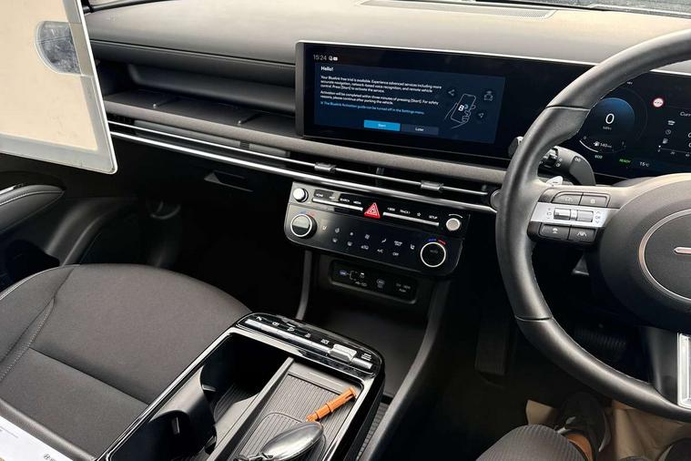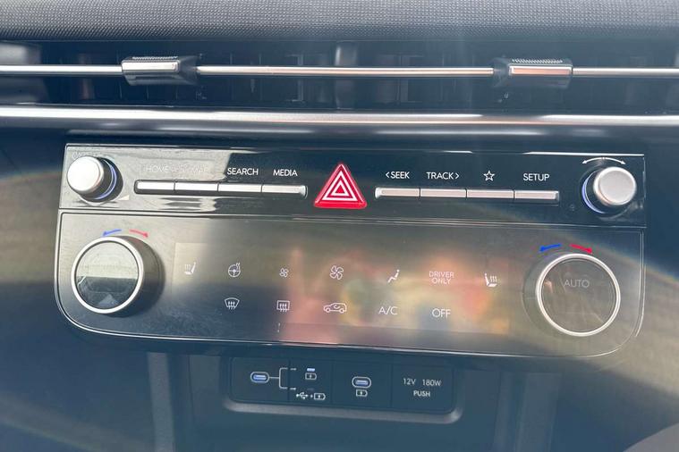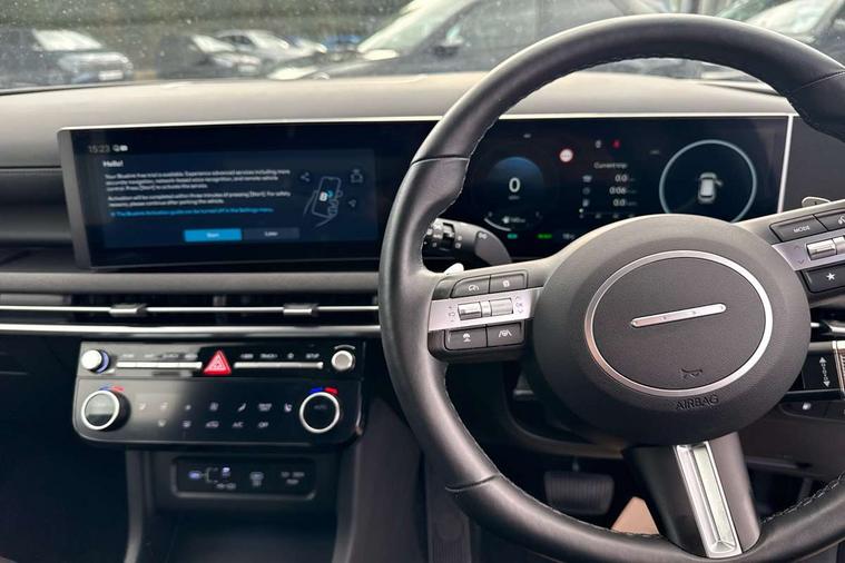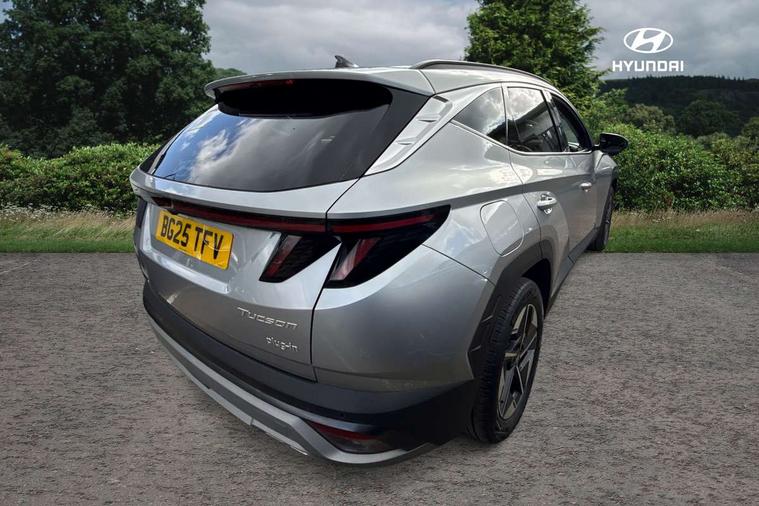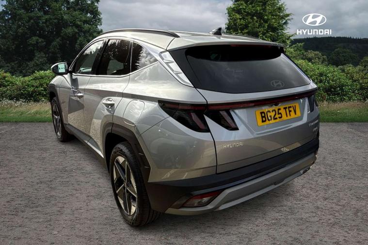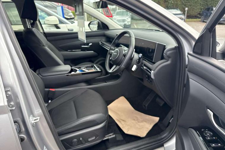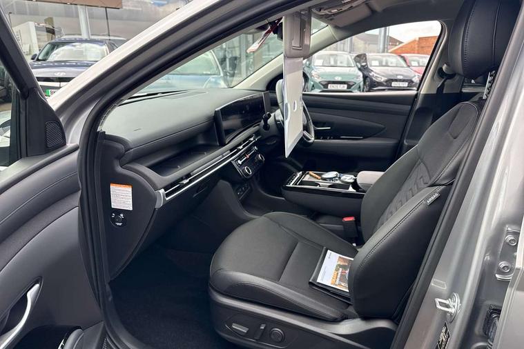 12.3" LCD display with driver's supervision instrument cluster, 12.3" widescreen navigation with bluelink and mapcare, Bluetooth system, Cruise control - smart adaptive speed control with stop and go function, Digital clock, Drive mode selector, Driver attention warning, E-call, Emergency stop signalling system, Forward Collision Avoidance Assist (FCA) - Car, Pedestrian and Cycle, Forward Collision Avoidance Assist Junction Turning (FCAJX), Front and rear parking sensors, Highway Driving Assist (HDA), Hyundai road side assistance, Intelligent speed limit assist, Lane follow assist, Lane keep assist, Over the air updates(OTA), PAS, Rear camera and guidance parking system, Rev counter, Smart power tailgate, Tailgate open warning light, Trip computer, Trip odometer, Voice recognition, Water temperature gauge, Windscreen washer fluid sensor and warning indicator, Wireless Apple CarPlay/Android Auto, Wireless phone charging pad, Charging cable - 7 pin type 2, Charging cable - Emergency 3 pin connector mode 2 (ICCB), 2 front and 2 rear USB-C ports, DAB Digital radio, Krell premium audio system with 8 speakers and subwoofer, Steering wheel mounted audio/phone controls, Adjustable intermittent front windscreen wipers with aero wiper blade, Auto dimming rear view mirror, Automatic defog system, Automatic headlights with dusk sensor, Automatic windscreen wipers with rain sensor, Black wheel arches, Body colour bumpers, Body colour door mirrors with integrated indicators, Body colour exterior door handles, Electrically adjustable, heated and power folding door mirrors, Follow me home headlights, Front and rear electric windows with anti-trap mechanism and one touch control, Front fog lights, LED 3rd brake light, LED daytime running lights, LED Headlights, LED rear lights, Positioning Lights - LED, Privacy glass - Rear windows and tailgate, Rear side wing doors, Rear wash/wipe with intermittent wipe setting, Roof rails, Soft touch rear door paneling, Tinted glass with windscreen shade band, Trailer stability assist, 12V power outlets in front console and luggage compartment, 3 seat bench in 2nd row, 40/20/40 split folding rear seat, 64 colours interior ambient lighting, Adjustable head restraints (Up and down), Cupholders in rear armrest, Door courtesy lights, Driver and passenger sunvisors with illuminated LED vanity mirrors, Driver's seat electric adjustments, Dual zone climate control, Front and rear door pockets, Front armrest with storage box, Front centre console and door bottle holders, Front passenger's seat electric adjustments, Heated front seats, Heated rear seats, Heated steering wheel, Height/reach adjustable steering column, Illuminated/air conditioned glove compartment, ISOFIX child seat anchorage points attached on outer rear seats, Leather wrapped steering wheel and gear knob, LED interior lighting, Luggage compartment lighting, Luggage cover, Luggage hooks, Luggage net, Map and reading lights, Premium cloth/leather upholstery, Rear seat remote folding function, Rear side window sunblind, Reclining rear seats, Retractable load cover, Single front passenger seat, Sunglasses holder, Touch sensitive climate controls with temperature dials, TUCSON branded metal door scuff plate, Underfloor boot compartment, Trailer wiring package - Tucson, 3x3 point rear seatbelts, Active bonnet, Airbag - Front, front side, curtain and centre front airbags, Anti-lock brake system (ABS), Brake assist function, Childproof rear door locks, Curtain airbag roll over sensor, Downhill brake control, Electric parking brake, Electronic stability control, Front and rear seatbelt reminder, Front passenger airbag deactivation switch, Front seatbelt pretensioners, Hill start assist control (HAC), Multi-Collision braking, Outer rear seatbelt height adjustment, Seatbelt height adjustment for front seats, Traction control, Tyre pressure monitoring system with individual tyre pressure display - TPMS, Vehicle stability management, Deadlocks, Immobiliser, Locking wheel nuts, Remote control central locking, Smart key with keyless entry and engine start/stop button, Speed sensitive auto door locking, Thatcham category 1 alarm, 18" Alloy wheels, Tyre repair kit,