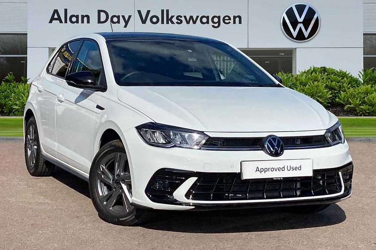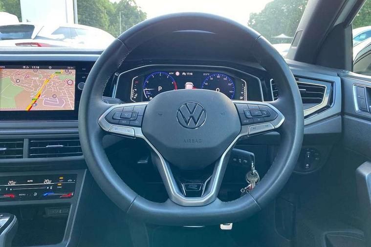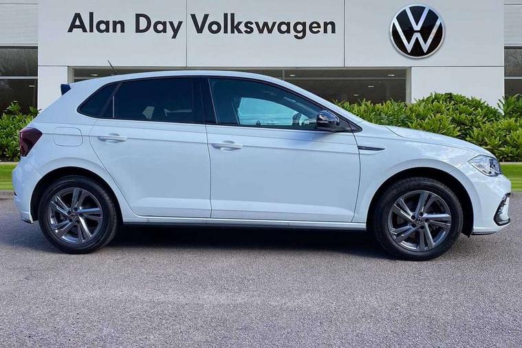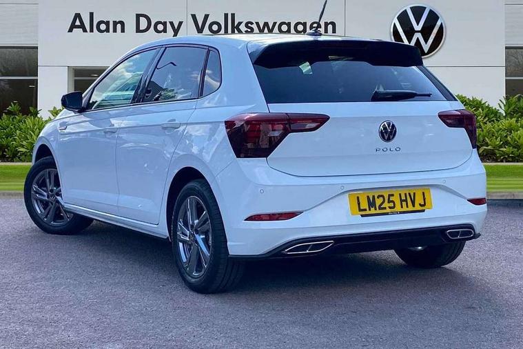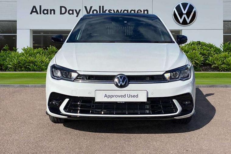 Adaptive cruise control with follow-to-stop and speed limiter, Advanced driver attention and drowsiness monitor, Bluetooth mobile phone interface, Digital Cockpit Pro with 10.25" Display, Dynamic road sign display, Emergency call service, Multifunction camera, Power assisted speed sensitive steering, Preparation for We connect and We connect plus, Speedo and rev counter, electronic odometer, trip, service interval display and fuel gauge, Standard rear axle, Travel Assist - Lane keeping system and traffic jam assist, Travel assist including emergency assist, Trip computer, Warning signal and warning light for front and rear seatbelts not fastened, Washer fluid level indicator, Wireless app connect, Front wheel drive, Rear shock absorpion, Start-stop system with battery regeneration (recuperation - energy recovery during braking), DAB Digital radio, Diversity antenna for FM reception, Front and rear 6 speakers, Body colour bumpers, Body colour door handles, Electric front windows, Front scuff plates with R-Line logo, Heat insulating glass windscreen, Power folding adjustable/heated exterior mirrors and front passenger exterior mirror lowering function, Rear electric windows, Rear fog light, Rear side wing doors, Rear windscreen washer and wiper with interval delay, Third brake light, 12V power socket in centre console, 2 USB-C ports in the front, 2 USB-C charging sockets on the center console in the rear, 3 rear head restraints, 60/40 split folding rear seat and rear seat bench not split, Air care climatronic air conditoning system with active combination filter and 2-zone temperature control, Black roof lining, Carpet mats, front and rear, Chrome plated radiator grille inserts, air vent surrounds and light switch surrounds, Door and side trim panel, Driver and front passenger seat height adjustment, Driver/passenger sunvisors with illuminated vanity mirrors, Front centre armrest, Front footwell illumination, Front seat backrest storage pockets, Front sports comfort seats, Handbrake lever handle in leather, Headliner in recycled material, Isofix child seat preparation easy-fit (for two outer rear seats, and front passenger seat) compatible with I-size, Karoso artvelours cloth upholstery, Leather trimmed gear knob, LED interior light with switch off delay and dimmer, 2 reading lights front and rear, Luggage compartment cover, Luggage compartment floor, Luggage compartment lighting, Lumbar adjustment for front seats, Single front passenger seat, Stainless steel pedals, Standard pedal cluster, Three spoke leather wrapped multifunction steering wheel with shifting paddles, Light and sight pack - Polo R-Line/Black Edition, 3 point height adj front seatbelts + pretensioners, 3x3 point rear seatbelts, ABS, Driver and front passenger airbag with front passenger airbag deactivation, Drivers and front passengers safety optimised head restraints, ESC (Electronic stability control) + EDL (Electronic Differntial lock) and ASR (Traction control), Extended and predictive pedestrian/ cyclist protection, Front curtain and side airbags with center airbag, Front/rear disc brakes, Hill hold control, Manual child lock in rear doors, Single tone horn, Tyre pressure loss indicator, Alarm with interior protection, Anti-theft alarm system with interior monitoring, backup horn, and towing protection, Anti-theft wheel bolts, Electronic engine immobiliser, Chrome applications on rotary light, mirror adjustment, window regulator switches, outlet with frame in black, Dark grey anodised matt decorative inserts in dash and front door panels, 16" Coventry alloy wheels, Low rolling resistance tyres,