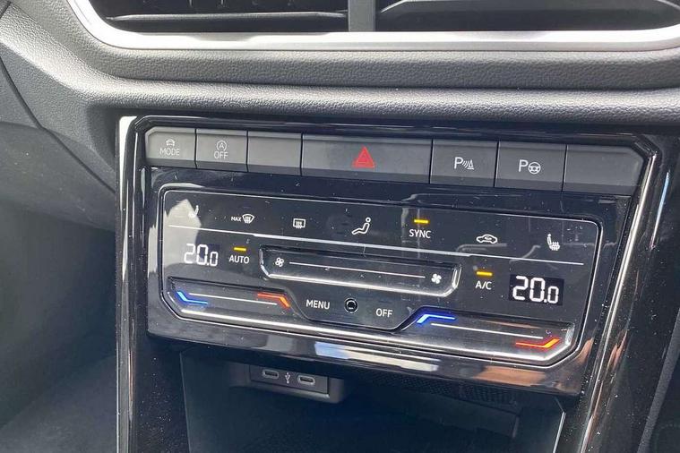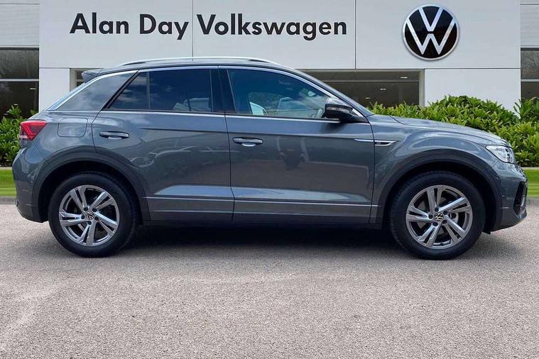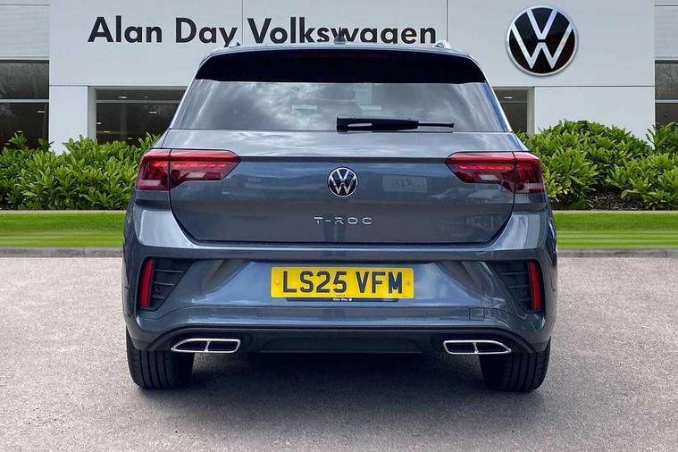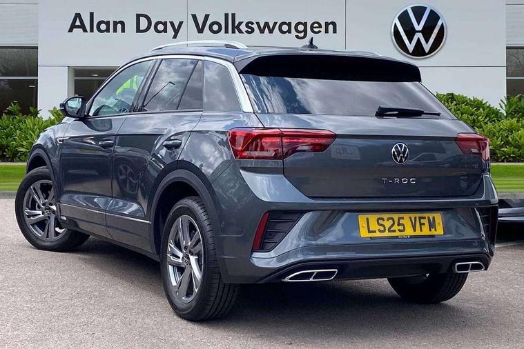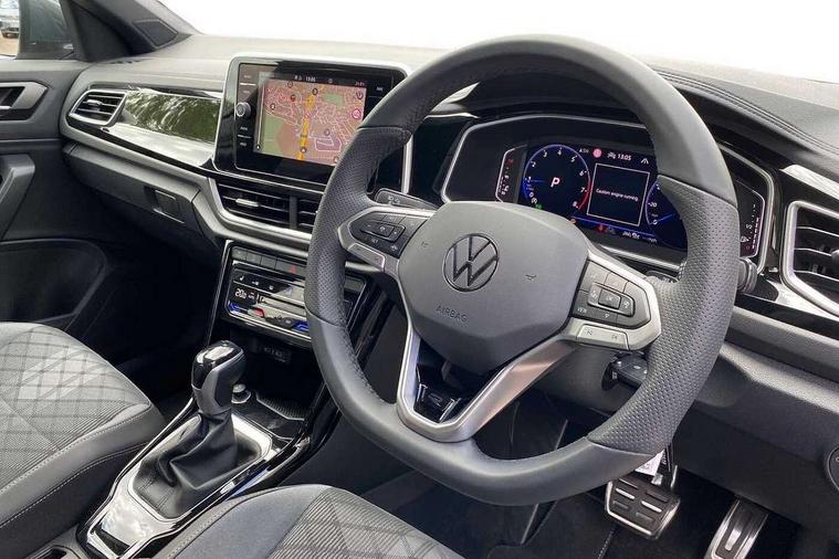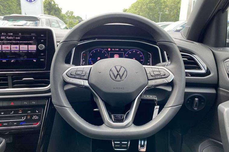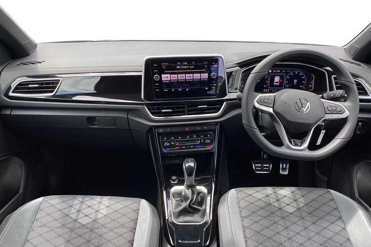 10.25" Digital cockpit pro, Advanced driver attention and drowsiness monitor, Emergency call service, Lane keeping system Lane Assist, Mobile phone interface, Modified key software - reduce switch off time for key status change to Long no motion, Online services, Park assist including front and rear parking sensors, Service interval indicator, Tailgate/trunk lid release from outside, Think blue trainer driver tips and journey analysis, Warning sound and light for front seatbelts unfastened, Wireless app connect, Battery regeneration during braking, Start/stop function with battery regeneration, DAB Digital radio, Diversity antenna for FM reception, Front and rear 6 speakers, Music playback - MP3, WMA and AAC files, Premium USB cable in choice of either Apple or Android smartphone compatibility, SD card slot, Simultaneous pairing of 2 compatible mobile devices, Title and cover art display, We Connect and We Connect Plus functionality, Auto dimming interior rear view mirror, Automatic hazard lights activation under emergency braking, Automatic headlight control with LED separate daytime running lights with coming/leaving home function, Body coloured exterior mirror housings and door handles, Electrically adjustable and heated door mirrors, Extended roof spoiler, Exterior mirrors aspherical on driver side, convex on front passenger side, External USB type C socket and charging sockets, Front windscreen wiper with intermittent wipe and 4 position delay, Heated rear window, LED 3rd brake light, LED rear combination lamps, LED rear number plate lights, Power windows with comfort operation and circuit breaker, Privacy glass for rear side windows and rear window, R-Line design body coloured bumpers, Rain sensor, Rear exhaust tailpipe, Rear fog light on one side and reversing lights on both sides, Rear side wing doors, Rear wash/wipe with intermittent wipe setting, Remote electrically foldable door mirrors, puddle lights and reverse activated passenger's door mirror, 12V power socket in centre console, 3 rear head restraints, 3 seat bench in 2nd row, 4 load lashing points in luggage compartment, Air care climatronic air conditoning system with active combination filter and 2-zone temperature control, Black roof lining, Chrome plated decorative trims, Chrome plated radiator grille inserts, air vent surrounds and light switch surrounds, Door and side trim panel with leatherette insert, Front + rear carpet mats, Front centre armrest, Front cupholders x 2, Front footwell illumination, Front reading light, Front scuff plates with R Line logo, Front seat back storage pockets, Glove compartment door with light, Instrument lighting, white adjustable panel illumination, Interior ambient lighting and surround lighting, Interior light delay, Isofix child seat preparation, Leather gearshift handle, Load-through provision with cup holder when folded down ('Unsplit rear seat bench, split folding backrest, with centre armrest), Luggage compartment lighting, Single front passenger seat, Stainless steel pedals, Storage compartment in left and right luggage area, Storage compartment in rear doors, Storage compartments in driver and front passenger doors, Sunvisors with illuminated vanity mirrors, Variable boot floor, height adjustable and removable, Driver assistance pack without proactive passenger protection - T-Roc, 3 point height adj front seatbelts + pretensioners, 3 point seatbelts in outer rear with ECE label, ABS, Child locks on rear doors, City emergency braking and pedestrian monitoring, Driver and front passenger airbag with front passenger airbag deactivation, Driver and front passenger safety-optimised head restraints, Drivers seatbelt reminder, Electronic parking brake, Electronic Stability Control (ESC) inc EDL (Electronic Differential Lock) and ASR (Traction Control), Front and rear passengers curtain airbag system including front side airbags, Hill start assist, Predictive pedestrian protection, Rear disc brakes, Two tone horn, Tyre pressure loss indicator, Volkswagen roadside assistance, Piano black decorative inserts in dashboard and front door trim panels, Trims for alloy wheels,