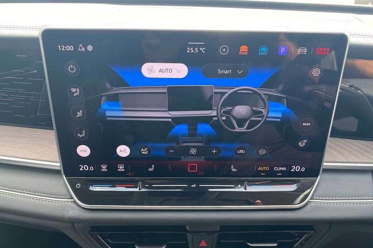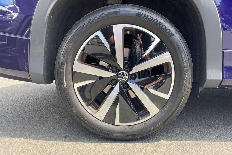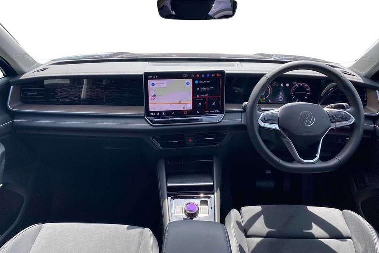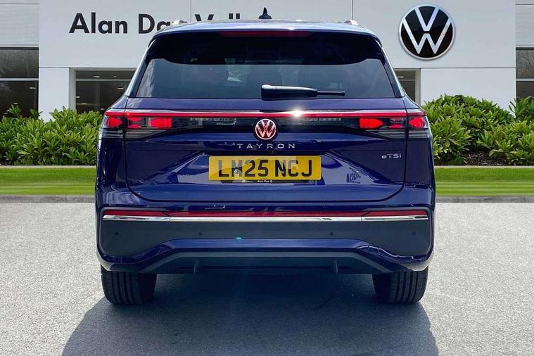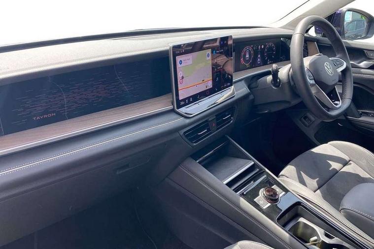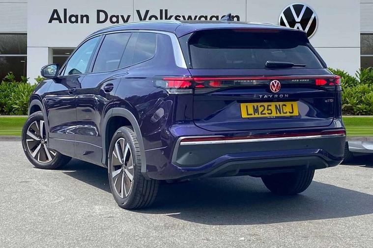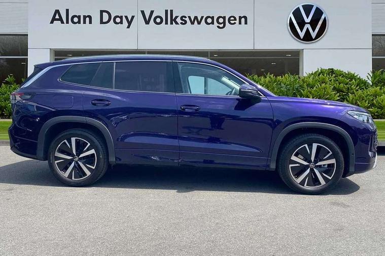 Adaptive cruise control (ACC), Digital Cockpit Pro - 10.25" high resolution dash display screen with customisable menus and information, Driver alert system, Driver attention monitoring system, Dynamic road sign display, E-Sim card for online connectivity, eCall emergency call system, Lane change system, Side assist, Rear traffic alert and Exit warning system, Multifunction front facing camera, Oncoming vehicle braking when turning including swerve support, Start/stop system with regenerative braking, Voice activation spoken voice commands for telephone and navigation system, Warning signal and warning light for front and rear seatbelts not fastened, Wireless App-Connect, Front wheel drive, Digital radio reception (DAB), Diversity antenna for FM reception, Auto dimming interior rear view mirror, Automatic headlight control system, Body colour door handles, Body coloured bumpers and air intake with chrome trim, Body-coloured exterior mirror housings, Chrome moldings on the side windows, Coming/leaving home lighting function, Dynamic headlight range control with dynamic cornering light, Exterior mirrors convex on the left and aspherical on the right, Heat insulating glass in side and rear windows, Illuminated Volkswagen logo rear with animation, Laminated safety glass from B-pillar backwards 90% tinted, Laminated safety glass winshield, heat insulating, LED 3rd brake light, LED separate signature day time running light, Puddle lights, Rain sensor windscreen wipers, Rear fog light on one side, reversing light on both sides, Rear side wing doors, Rear wiper, Reverse activated passenger's door mirror, Silver roof rails, Surround lighting with welcome light, Volkswagen logo in front, illuminated lighting animation with wake up/goodbye scenario and illuminated door handles, 12V socket in centre console, 3 rear headrests, 3 rear seat bench in 2nd row, backrest split folding with centre armrest and 2 seats in 3rd row of seats, Carpet mats, front and rear, Centre console with illuminated storage compartment with sliding cover and two drinks holders, Chrome elements on the mirror switch and power window switches and door pulls, Door and side trim panel featuring foam film with leatherette insert, Flat luggage compartment floor, Front centre armrest, Front scuff plates in alumium, Interior ambient lighting with 30 colour options, ISOFIX anchors for child seats on outer rear seats and front passenger seat. Compatible with i-Size, Mechanical rear seat release, Power adjustable lumbar support in front, Single front passenger seat, Sports comfort seats in front, Sun visors with illuminated vanity mirrors, Comfort package with park assist pro - Tayron, Driver assistance package - Tayron, 3 Point seat belts in front with pretensioners, 3 point seatbelts in outer rear with ECE label, Autonomous emergency braking front assist with pedestrian and cyclist monitoring, Driver and front passenger airbag with front passenger airbag deactivation, Electronic parking brake with auto hold, First aid kit with warning triangle and safety vest, Front and rear curtain airbags, Front and rear side airbags, Front centre airbag, Front disc brakes, Hill start assist, Rear disc brakes, Two tone horn, Decorative material set Elegance with inserts in ornamental wood ash in the dashboard, Interior door handle in matte chrome,