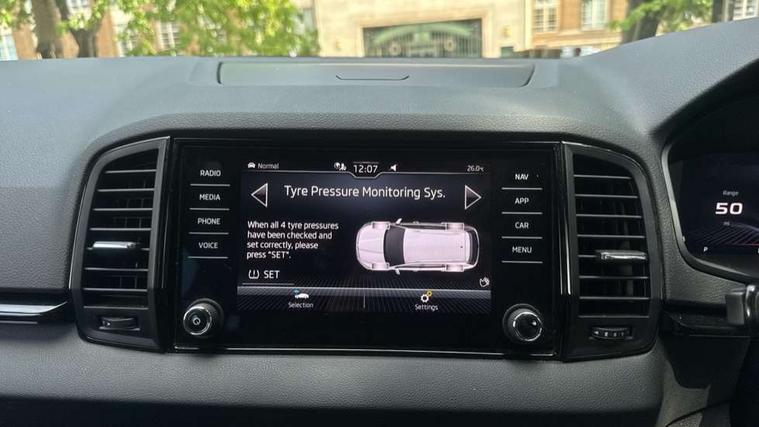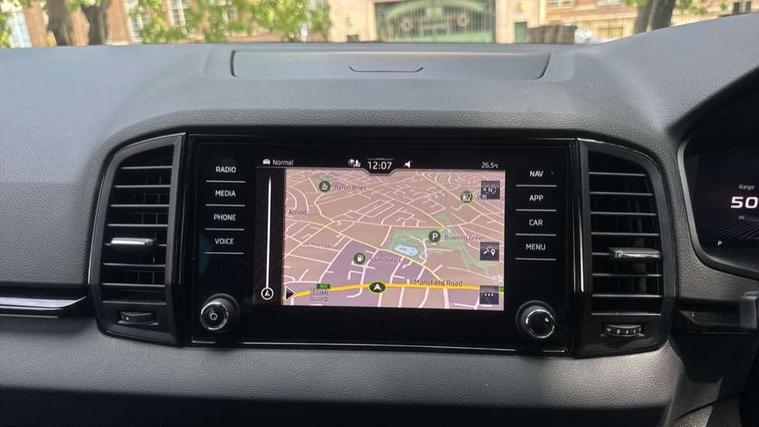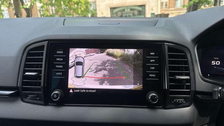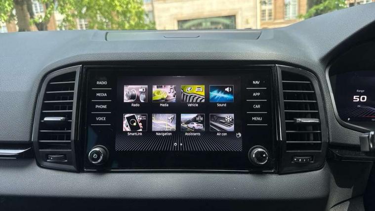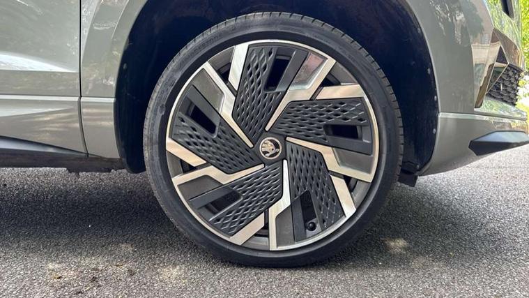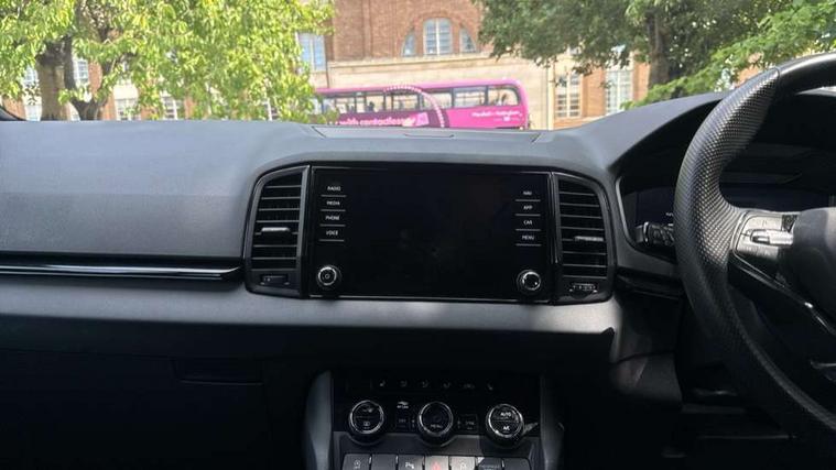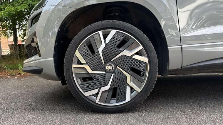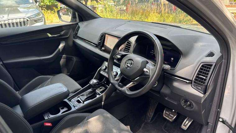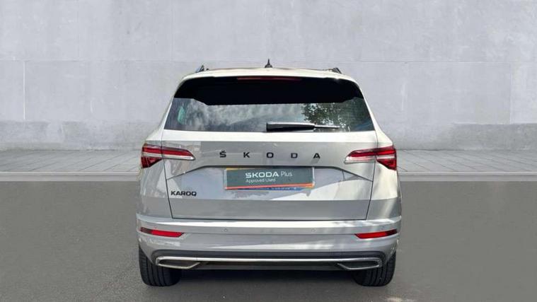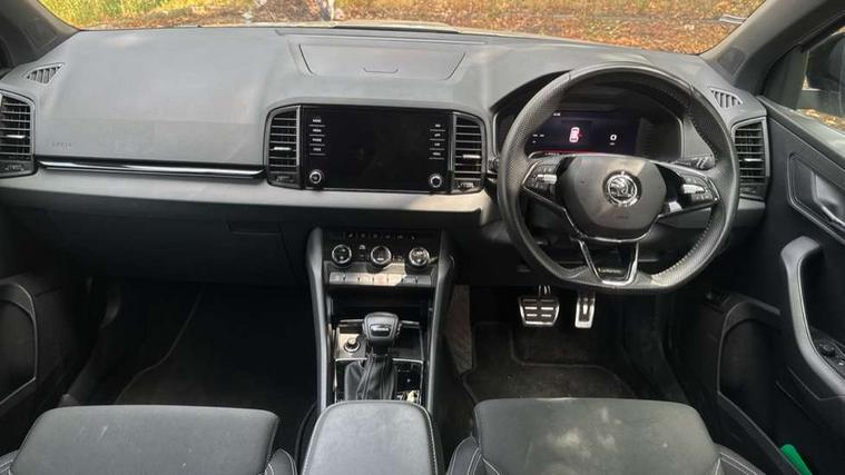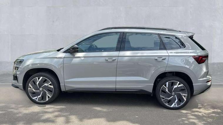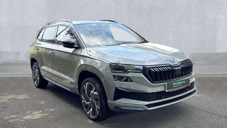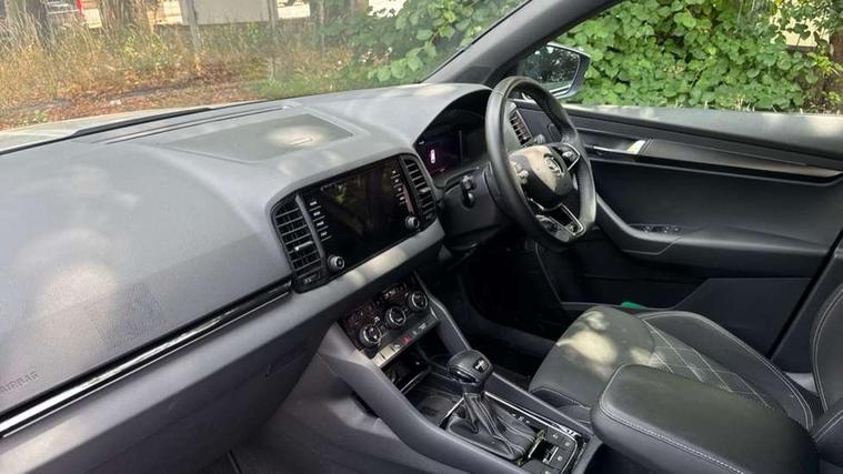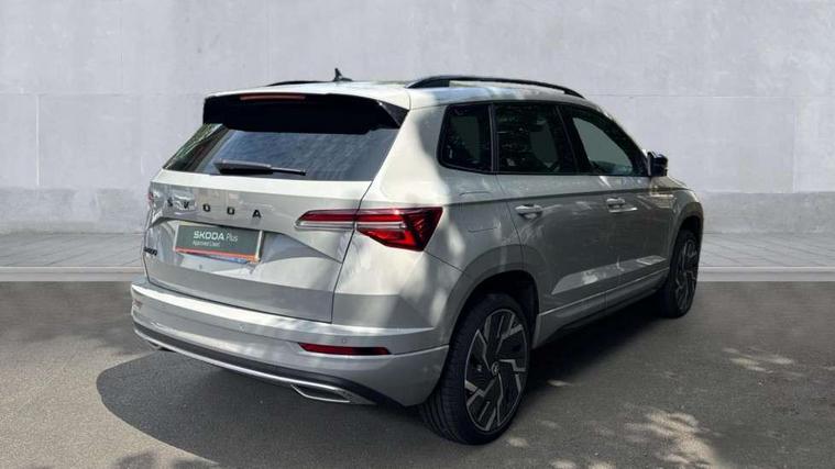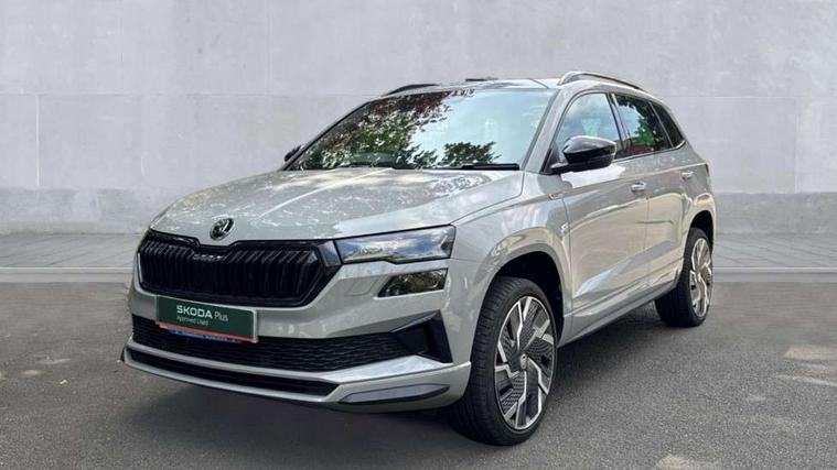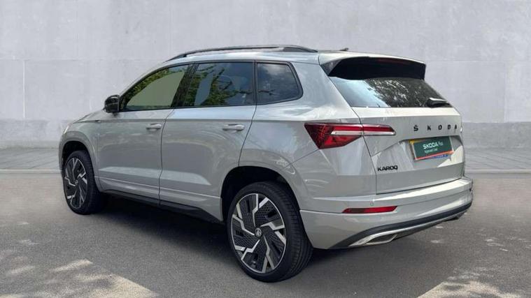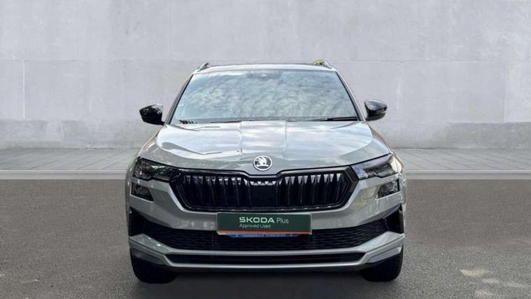 8" Digital display, Care connect, Driver fatigue sensor, Emergency services call system, Outside temperature gauge, Service interval indicator, SmartLink wireless for Apple and wired for Android, Start/stop system with regenerative braking, USB C Port x 2 in front centre console, Virtual cockpit, Virtual pedal with electrically operated boot door, 8 Speakers, DAB radio with Bluetooth, USB connection, Wireless charging without wireless aerial connection, Acoustic glass, Aero front windscreen wipers with intermittent function, Auto dimming rear view mirror with light and rain sensors, Black door mirrors, Black electric window control buttons, Black radiator grille, Black roof rails, Body colour door handles, Electric front and rear windows with child proof lock, Front door steps with SportLine logo, Heated rear windscreen, LED daytime running lights, LED rear lights with high functionality welcome effect and dynamic indicators, Light assistant (coming/leaving home/tunnel light), Panoramic sliding sunroof, Plastic scuff plates, Privacy glass, Protective door side sills in body colour, Rear diffuser, Rear side wing doors, Rear spoiler, Rear window wiper with washer system and intermittent control, Safety reflectors on front doors, Skoda lettering on tailgate in black, Sportline badge on front fender, Sportline decorative inserts with badging, Sports front and rear bumpers, 1.5 litre bottle holders in driver and front passenger door panels, 12V socket in boot, 12v socket in front centre armrest with storage compartment and rear air vents, 3 rear height adjustable headrests, 3 seat bench in 2nd row, 3 spoke leather sports multifunction steering wheel and silver stitching with gear shift paddles, 4 foldable roof handles with rear coat hooks, Black floor carpet, Black roof headlining, Chrome inner door handles, Double sided boot floor, Foldable hooks in the boot, Front head restraints, Height adjustable front three point seats belts with tensioners, Height/reach adjust steering wheel, Ice scraper, Illuminated glovebox, Illuminated luggage compartment, Isofix child seat preparation outer rear, Manual lumbar support for front seats, Pen holder, Pollen filter, Rear boot cover, Rear reading lights, Rear seats fixed folding and divided 60:40, Rubbish bin door, Safety vest holder, Single front passenger seat, Storage box in upper central dashboard closed, Sunvisors with illuminated vanity mirrors, Textile floor mats, Ticket holder, Titan black interior ceiling, Welcome animation with sportline logo, Boot pack - Karoq, Light Pack - Karoq, Parking pack - Karoq, Automatic door unlocking in case of crash, Automatic fuel cut off in case of crash, Child locks on rear doors, Driver airbag, Electronic parking brake with auto hold function, Emergency rear braking signal, ESC including ABS, MSR, ASR, EDS, HBA, DSR, RBS, MKB and traction control, Front side airbags, Hill hold control, Knee airbags, Passenger airbag with switch-off function, Pedestrian monitor, Seatbelt reminder signalisation and pretensioner for all seats, Three point seatbelts rear, Two tone horn, Tyre pressure display, Tyre pressure monitor, Alarm with interior monitoring, back up horn and tilt sensor with safe function, Electronic engine immobiliser, Keyless entry and start/stop, Remote central locking with 2 remote folding keys, Black air vent surround, Black centre console, Satin black dashboard, Satin black door trim, 19" Sagitarius anthracite alloy wheels with matt black aero inserts, Anti-theft wheel bolts protection, Matt black aero hub caps, Tool kit,