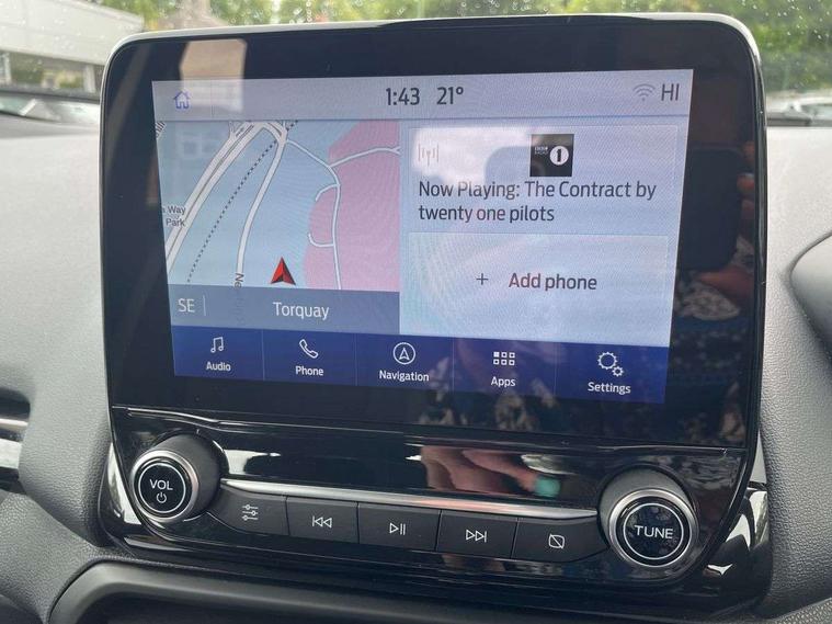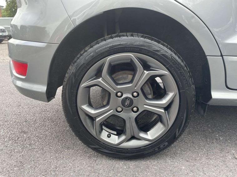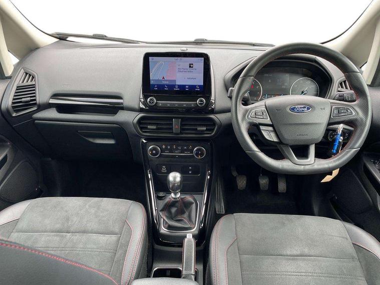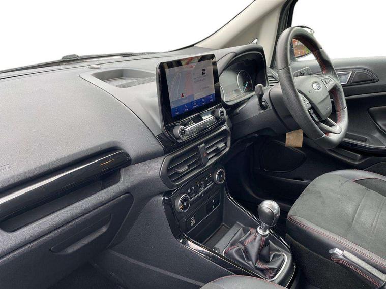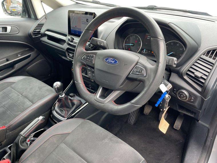 Cruise control, e-Call (emergency call), Easy fuel capless refuelling system, Ford SYNC 3 nav system with DAB radio, 8" screen, emergency assistance, Apple car play/Android auto, 2x USB, 6 speakers, Ford pass connect, Intelligent speed limiter, PAS, Rear parking sensors, Rear view camera, Traffic sign recognition, Trip computer, Sports suspension, Steering wheel mounted audio controls, Auto dimming rear view mirror, Automatic front wipers, Automatic headlights, Black roof rails, Body colour door handles, Body coloured bumpers, Chrome lower window surround, Electrically adjustable and heated door mirrors, Front fog lights, Front grille bars and surround in black, Headlight levelling control, Large rear roof spoiler, LED day running lights, LED third brake light, Power front and rear windows, Puddle lights, Quick-clear heated windscreen, Rear side wing doors, Rear wiper, ST Line body styling kit - Black headlamp bezel, front and rear sport bumpers, body colour lower door claddings, 12V socket in front and rear, 3 seat bench in 2nd row, 60/40 split rear seats, Ambient lighting, Centre console with sliding front armrest, Cooled glovebox, Courtesy lights with map reading light, Driver seat height/lumbar adjust, Driver's side glovebox, Driver/passenger sunvisors and lidded vanity mirrors, EATC - Electronic Auto Temperature control, Folding grab handles, Front head restraints, Front seat back map pockets, Illuminated glovebox, Illuminated luggage compartment, Isofix system on outer rear seats, Luggage compartment carpet, Neosuede/Partial sensico leather upholstery, Overhead console with sunglasses holder, Rake adjustable rear seats, Reach + rake adjustable steering column, Rear headrests, Sensico trimmed steering wheel, handbrake and gearshift gaiter with red stitching, Single front passenger seat, ST-Line Front floor mats with red stitching, Stainless steel sports pedals, Storage drawers under front seats, Tie down hooks, Variable boot floor, 3x3 point rear seatbelts, ABS, Autonomous emergency braking, Child locks on rear doors, Curtain airbags, Driver airbag, Drivers knee airbag, Electronic Stability Programme with hill launch assist, Front passenger airbag deactivation, Front side airbags, Passenger airbag, Pre collision assist system with AEB, Seatbelt reminder for driver and front passenger, Traction control, Tyre pressure monitoring system, Immobiliser, MyKey system, Remote central locking, Thatcham 1 volume sensing alarm, Low rolling resistance tyres, Tyre inflation kit,