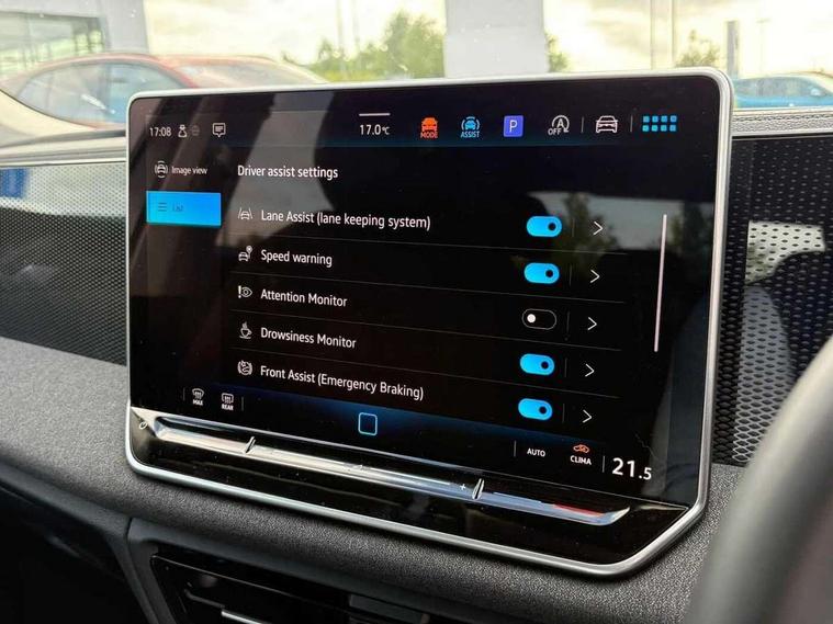 Advanced driver attention and drowsiness monitor, Bluetooth mobile phone interface, Car2X technology, Digital Cockpit Pro - 10.25" high resolution dash display screen with customisable menus and information, Dynamic road sign display, E-Sim card for online connectivity, eCall emergency call service, Front and rear parking sensors, Front Assist - Autonomous emergency braking with pedestrian and cyclist monitoring, Lane change system, Side assist, Rear traffic alert and Exit warning system, Lane keeping system Lane Assist, Multifunction front facing camera, Oncoming vehicle braking when turning including swerve support, Power assisted steering with speed sensitive, Rear view camera, Start/stop system with regenerative braking, Tailgate/trunk lid unlocking from outside, Warning signal and warning light for front and rear seatbelts not fastened, Wireless App-Connect, Front wheel drive, 12.9" infotainment display, 8 Speakers, Digital radio reception (DAB), Diversity antenna for FM reception, Auto dimming interior rear view mirror, Automatic headlight control system, Black roof rails, Body coloured bumpers, Body coloured door handles, Body-coloured exterior mirror housings, Coming/leaving home lighting function, Electrically adjustable and heated door mirrors, Headlight range control, Heat insulating and laminated safety glass windshield, Heat insulating glass in side and rear windows, Heated rear window, High level 3rd brake light, LED headlamps, LED rear combination lamps, LED separate daytime running light, Rain sensor windscreen wipers, Rear fog light on one side, reversing light on both sides, Rear side wing doors, Rear wiper, 12V outlet in center console rear and in luggage compartment, 12V socket in centre console, 3 rear seat bench in 2nd row, split folding, longitudinally movable and folding with load-through hatch, Carpet mats, front and rear, Ceramique headlining, Cloth upholstery, Door and side trim panel in foam film and woven fabric, Front centre armrest, Front seats with manual height adjustment, Front standard seats, ISOFIX anchors for child seats on outer rear seats and front passenger seat. Compatible with i-Size, Leather wrapped multifunction steering wheel with paddle shift, Safety optimised front head restraints, Single front passenger seat, Standard rear seat release, Sun visors with illuminated vanity mirrors, Three rear head restraints, 3 point seat belt for centre rear seats, 3 Point seat belts in front with pretensioners, 3 point seatbelts in outer rear with ECE label, Driver and front passenger airbag with front passenger airbag deactivation, Electronic parking brake with auto hold, Front and rear curtain airbags, Front and rear side airbags, Front centre airbag, Front disc brakes, Manual child proof rear door locks, Rear disc brakes, Two tone horn, Tyre pressure loss indicator, Warning triangle, Alarm with interior protection, Anti theft wheel bolts, Central locking system Keyless Go, Soul instrument panel, 17" Bari alloy wheels, Tool kit for tyre mobility set, Tyre mobility kit including compressor and sealing foam,