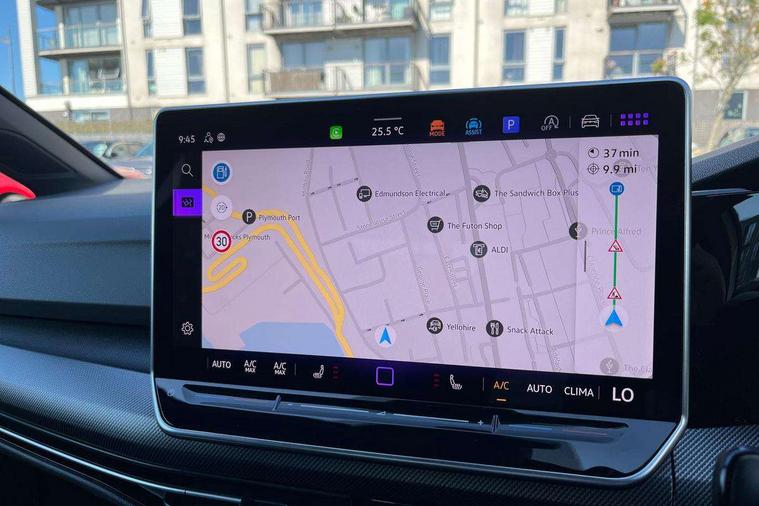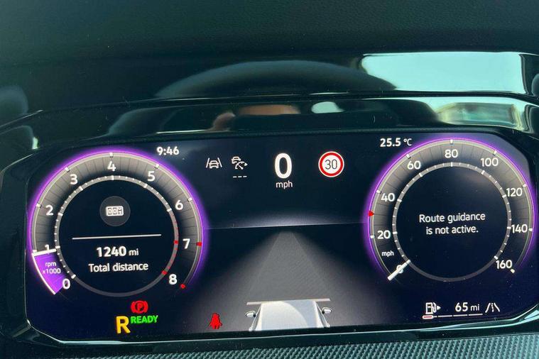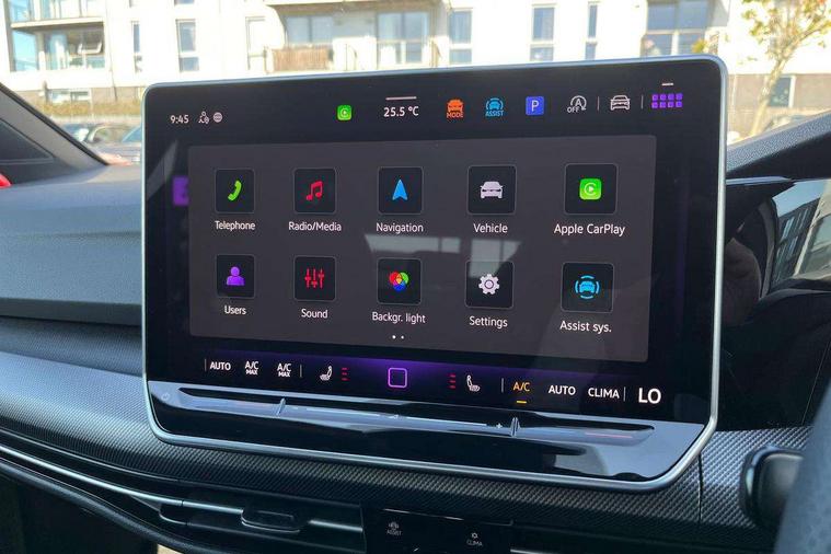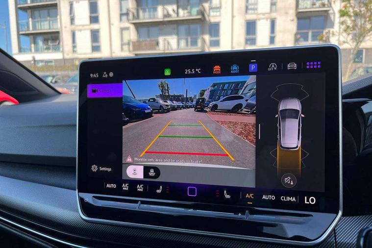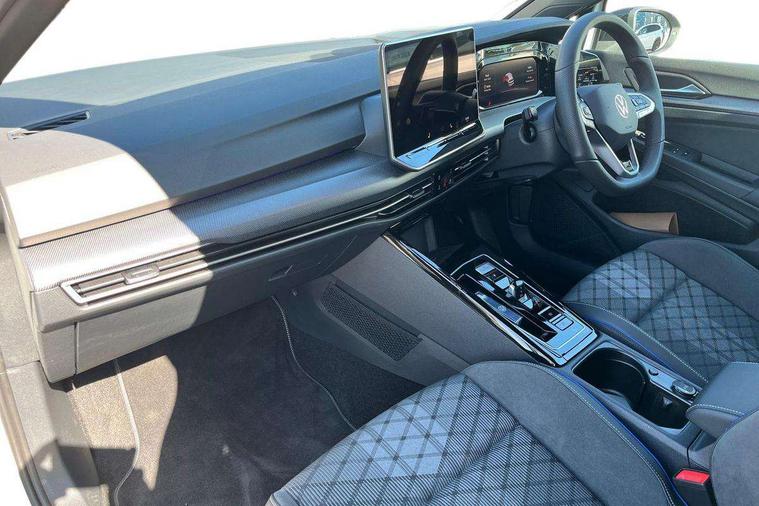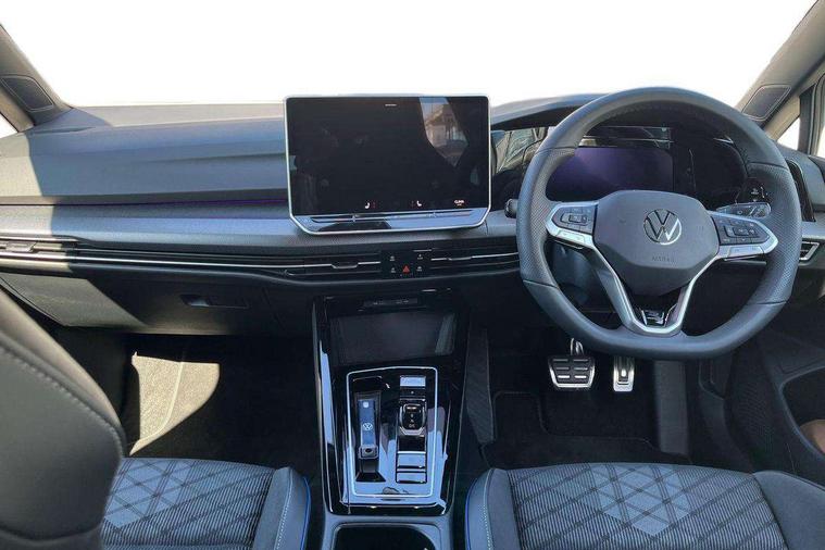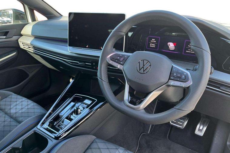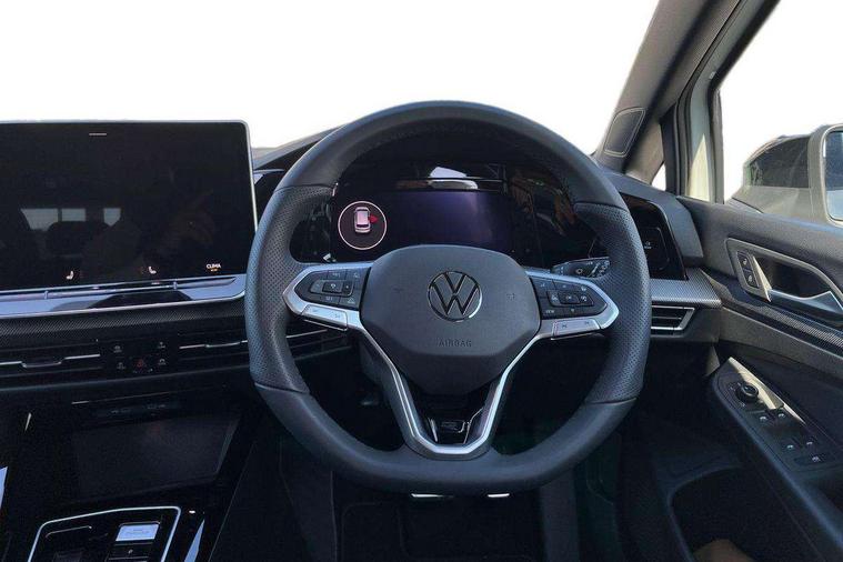 Activated carbon canister, Adaptive cruise control (ACC), Advanced driver attention and drowsiness monitor, Dynamic road sign display, Dynamic steering, E-Sim card for online connectivity, eCall emergency call system, Emergency assist, Lane keeping system Lane Assist, Multi-color Digital cockpit pro, selection of different info profile possible, Multifunction front facing camera for distance control, Navigation system, Oncoming vehicle braking when turning including swerve support, Preparation for light assist system, Speed limiter, Speedo, rev counter, electronic odometer, trip, service interval display, exterior temperature and fuel gauge, Traffic jam assist, Voice enhancer and voice control, Warning signal and warning light for front and rear seatbelts not fastened, We connect plus preparation, We connect preparation, Wireless app connect, Hybrid propulsion system, Petrol Particulate Filter, Start-stop system with battery regeneration (recuperation - energy recovery during braking), XDS electronic differential lock for improved traction and handling, 2 USB C ports in front, 2 USB charging sockets on the centre console in the rear charging capacity upto 45W, Comfort telephony + wireless charging, without wireless aerial connection, Digital radio reception (DAB), Diversity antenna for FM reception, Gaming platform via car app, Infotainment system with 12.9" display, Mobile phone interface with inductive charging feature, 3rd brake light, Auto dimming rear view mirror, Auto headlights, Automatic headlamp activation with Coming home and Leaving home feature, Body colored bumpers in R-Line style, Body colour door handles, Exterior mirrors convex on the left and aspherical on the right, Front and rear electric windows, Heat insulating windshield made of laminated glass, LED daytime running lights, Rain sensor, Rear exhaust tailpipe, Rear fog light on one side and reversing lights on both sides, Rear side wing doors, Rear windscreen washer and wiper with interval delay, Remote electrically foldable door mirrors, puddle lights and reverse activated passenger's door mirror, Volkswagen logo in front, illuminated lighting animation with wake up/goodbye scenario and illuminated door handles, Welcome light with surround lighting, 12V socket in front centre console, 12V socket in luggage compartment, 3 rear head restraints, 3 seat bench in 2nd row, Ambient lighting with 30 colour incl. LED light unit in front footwell with selectable light colour, Brushed stainless steel pedals, Carpet mats, front and rear, Chrome plated radiator grille inserts, air vent surrounds and light switch surrounds, Front centre armrest, Front seat lumbar support adjuster, Heated front seats, Integrated front head restraints, ISOFIX anchors for child seats on outer rear bench seats and on front passanger seat compatible for i-Size, Luggage compartment lighting, Manual height adjustable front seats, Plastic gear knob, Premium sports seats in front, Rear cupholder and loadthough, Sardegna cloth upholstery with front and outer rear seats Art Velour inner sides of bolsters, Single front passenger seat, Soul black instrument panel, Split folding backrest with centre armrest and unsplit rear seat bench, Storm grey roof lining, Sun visors with illuminated vanity mirrors, Black exterior Styling package with Matrix LED headlights - Golf, Winter package - Golf DSG Estate/Hatchback, 3 point height adj front seatbelts + pretensioners, 3 rear three point seatbelts, ABS, Autonomous emergency braking front assist with pedestrian and cyclist monitoring, Child locks on rear doors, Driver and front passenger airbag with front passenger airbag deactivation, Electronic parking brake with auto hold, ESC (Electronic Stability Control), Extended pedestrian protection measures, Hill start assist, Rear disc brakes, Two tone horn, Tyre pressure loss indicator, Volkswagen roadside assistance, Anti theft wheel bolts, Preparation for alcohol interlock, Decorative inserts carbon grey for dashboard and front door trim panels, 18" Leeds alloy wheels, Tool kit for tyre mobility set, Tyre mobility kit Includes 12V compressor and tyre sealant,