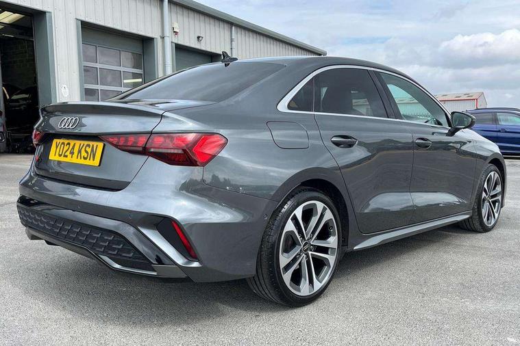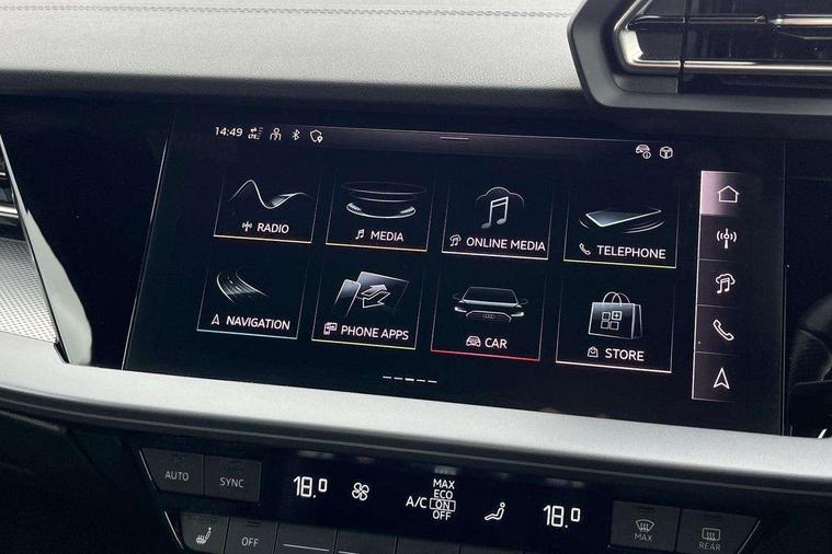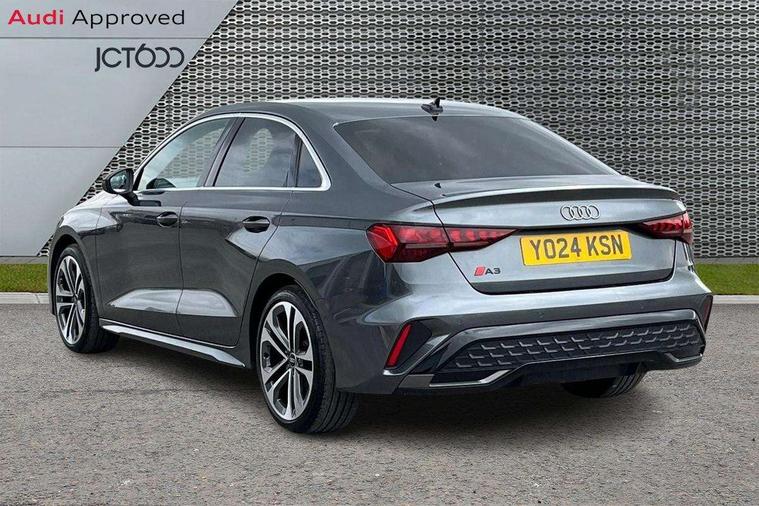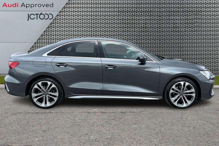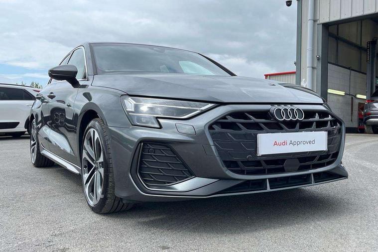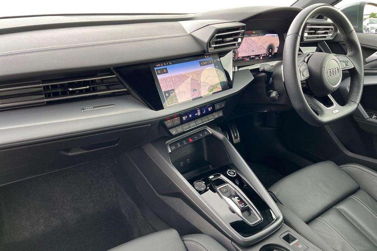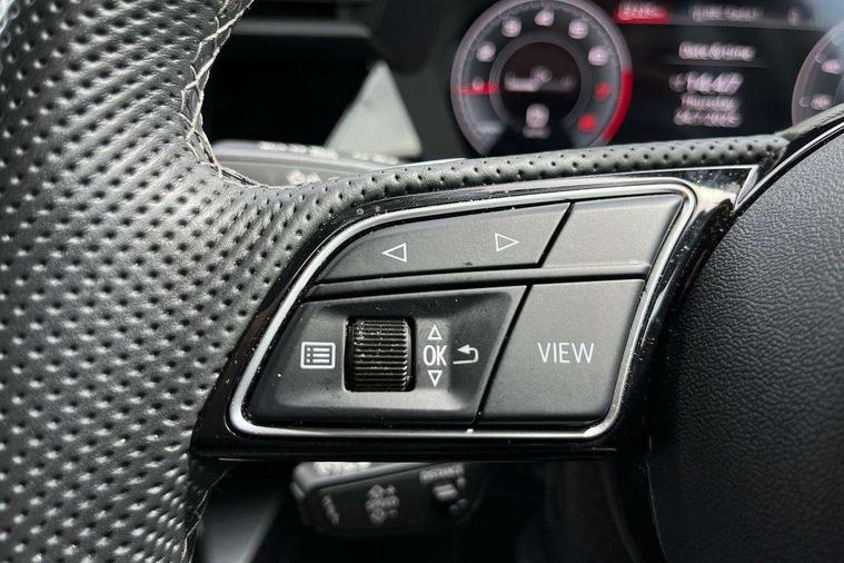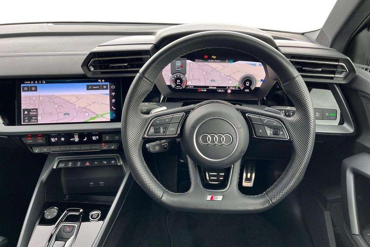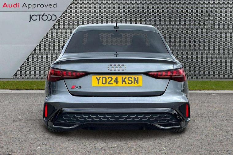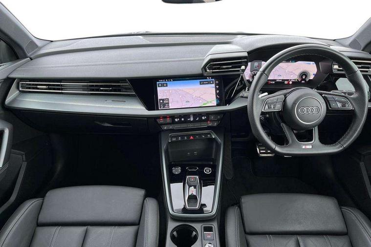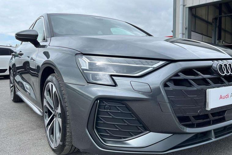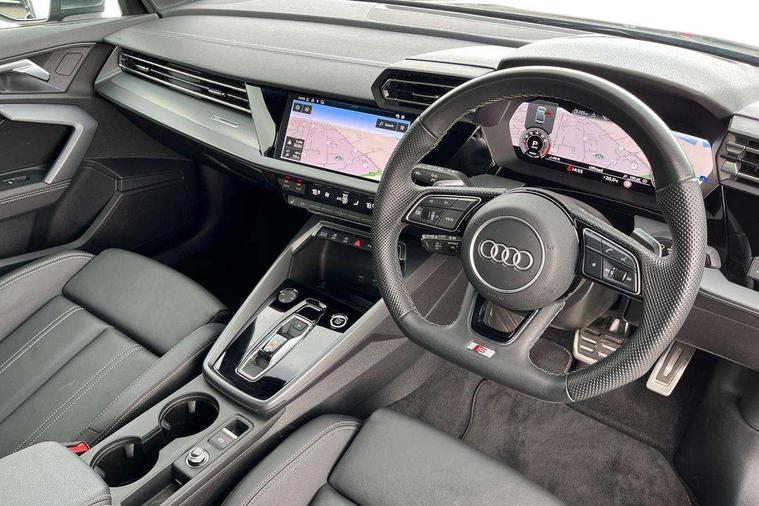 Adjustable speed limiter, Audi drive select, Audi smartphone interface with app store includes wireless Apple carplay, Android auto and Amazon alexa integration, Audi virtual cockpit plus - 12.3" full HD resolution dynamic digital instrument cluster, Automatic start/stop system with recuperation, Bluetooth interface, Camera based traffic sign recognition, Collision avoidance assistant, Cruise control, Distraction and Fatigue warning, e-Call (emergency call), Electromechanical power speed sensitive steering, Lane departure warning system, MMI Navigation Plus with high resolution 10.1" colour touch screen display, Park Assist with parking system Plus, Service indicator, Trip computer, Voice control system with natural language interaction, Sports suspension, Audi Phonebox light with wireless charging, Audi sound system - 10 loudspeakers including centre loudspeaker and subwoofer, DAB Digital radio, USB ports with charging function in the rear, Acoustic glass windscreen, Aluminium window trim, Auto dimming frameless rear view mirror, Body colour exterior mirrors, Chrome exhaust tailpipes, Electrically adjustable/heated/folding/auto dimming door mirrors with integrated LED indications + kerb view function for passenger side, Exterior model badging, Front and rear side air inlets in grained matt black with dark liquid chrome frame, Front electric windows, Front radiator grill in high gloss dark chrome, Heat insulating glass windscreen, Illuminated door sills with aluminium inserts at the front with S logo, LED 3rd brake light, LED daytime running lights, LED headlights with LED rear lights and dynamic rear indicators, Light and rain sensors, Privacy glass - dark tinted rear window, rear door and side windows, Rear boot, Rear diffuser and grill in grained matt black with inlay in dark liquid chrome, Rear electric windows, Rear side wing doors, S line bumpers, Side S line emblems on front wings, Side sill trim in dark liquid chrome, 12V socket and storage compartment in front centre console, 3 seat bench in 2nd row, 3 spoke flat bottomed leather multifunction sport steering wheel with gear shift paddles, 3-zone deluxe automatic air conditioning, 4 way electrically adjustable lumbar support for driver and front passenger, 40/20/40 split folding rear seat bench, Black cloth headlining, Front and rear centre armrest in artificial leather, Front and rear headrests, Front/rear floor mats, Heated front seats, Height and reach adjustable steering wheel, Manual boot compartment lid, Manually adjustable front seats, S badging on the steering wheel, Seat side bolsters, Single front passenger seat, Stainless steel pedals and front footrest in black, Twin leather upholstery with front sports seats S embossed logo, Aluminium interior elements pack - A3, Multi-coloured LED interior lighting package - A3, 3x3 point rear seat belts, Driver and front passenger airbag with passenger airbag deactivation, Electronic Stabilisation Control (ESC) including ABS, ASR and EDL, First aid kit with warning triangle and 2 safety vests, Front side airbags with head airbags and interaction airbag, Hill hold assist, Pre-sense front with pedestrian and cyclist detection, Seatbelt monitoring, Tyre pressure loss indicator, Anti theft alarm, Anti-theft wheel bolts, Electronically operated child locks, Immobiliser, Remote control central locking, Dash & door Inlay in dark aluminium Spectrum,