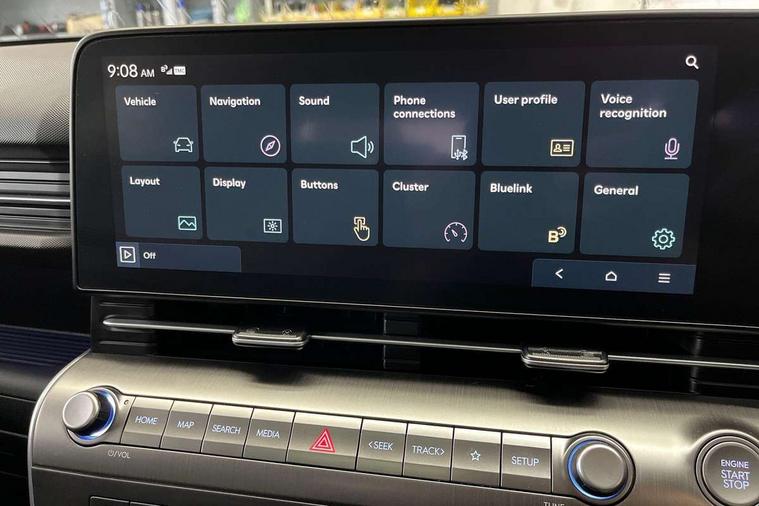 12.3" touchscreen centre console display satellite navigation with bluelink, live services and mapcare, Blind spot collision avoidance assist, Blind spot view monitor, Bluetooth connectivity with voice recognition, Digital clock, Driver status monitor (DSM), Driver supervision instrument cluster with 12.3" LCD display, eCall emergency call system, Feature on demand - Enabled, Forward collision avoidance assist (FCA 1.5) - Car, pededstrian, cycle and junction turning, Front parking sensor, HDA - Highway Drive Assist Level 1.5, Height adjustable power tailgate, Intelligent speed limit assist, Lane follow assist, Lane keep assist, Leading vehicle departure alert (LVDA), Parking Collision Avoidance Assist-Reverse (PCA-R), Parking distance warning - side, Parking system with rear camera and guidance system, PAS, Rear cross traffic collision avoidance (RCCA), Rear parking sensor, Roadside assistance, Safe exit warning (SEW), Smart cruise control with stop and go functionality, Surround view monitor, Windscreen washer fluid sensor and warning indicator, Wireless phone charging pad, Wireless Smartphone Integration includes Apple CarPlay and Android auto, 2 front USB C and 2 rear USB C charging points, Bose Premium Audio system with 7 premium speakers + subwoofer, DAB Digital radio, Steering wheel audio, phone and cruise controls, Auto dimming rear view mirror, Automatic headlights with dusk sensor, Automatic windscreen wipers with rain sensor, Black painted wheel arch inserts, Body colour bumpers, Body colour exterior door handles, Body coloured door mirrors, Door mirror LED indicator lights, Electric front windows with anti-trap mechanism and one touch control, Electric rear windows, Electric sunroof, Electrically adjustable and heated door mirrors, Horizon centre LED DRL, LED projector headlights, LED upper and lower rear lights, Power folding door mirrors, Privacy glass - Rear windows and tailgate, Rear roof spoiler with integrated LED brake light, Rear side wing doors, Rear skid plate - silver, Rear wiper, Roof rails, Solar glass with front door glass and windscreen, Tinted glass in front and rear doors, Windscreen auto defog function, 12V power outlet in front console, 2 zone climate control, 3 seat bench in 2nd row, 40/20/40 split folding rear seat, Adjustable head restraints, Ambient lighting, Driver and passenger front seat pockets, Driver's seat electric adjustments, Driver's seat lumbar support, Driver/passenger sunvisors and illuminated vanity mirrors, Floor mats, Front passenger's seat electric adjustments, Heated front seats, Heated rear seats, Heated steering wheel, Height/reach adjustable steering column, Isofix rear child seat fastenings, Leather upholstery, Leather wrapped steering wheel, LED centre interior light, LED front interior light, Luggage compartment LED lighting, Luggage net, Luggage shelf, Metal paint effect interior door handles, Parcel shelf, Rear centre armrest with cupholders, Rear centre console with air vents, Shift by wire SBW, Single front passenger seat, Ventilated front seats, Vertical adjustment rear head restraints, Trailer wiring package - Kona, Airbag - front, front side, curtain and centre front airbag, Anti-lock brake system (ABS), Childproof rear door locks, Downhill brake control, EBD + Brake Assist, Electric parking brake, Electronic stability control, Fasten seatbelt reminder, Fixed 3 point for second row centre passenger seatbelt, Front seatbelt pretensioners, Height adjustable front seatbelts, Hill start assist control (HAC), Passenger airbag deactivate switch, Rear seat alert, Traction control, Tyre pressure monitoring system, Alarm/immobiliser, Deadlocks, Folding key, Locking wheel nuts, Rear occupant alert, Remote central locking, Smart key with keyless entry and start/stop button, Five year annual vehicle health checks, 18" Alloy wheels, Temporary mobility kit (TMK),
