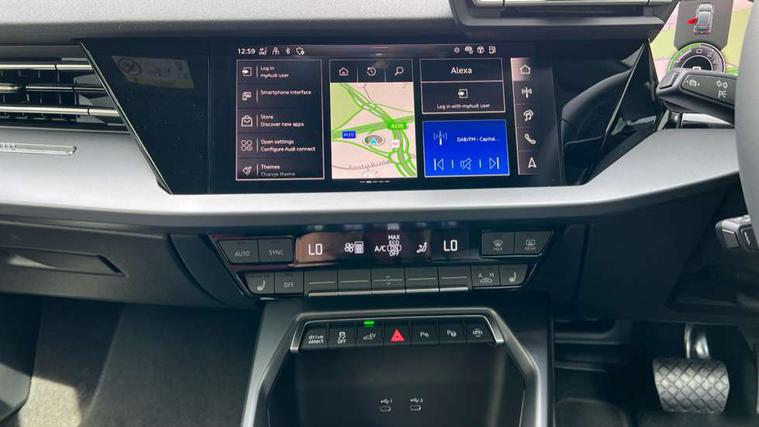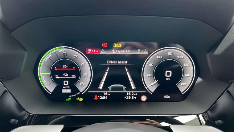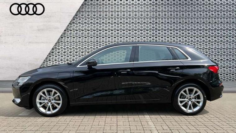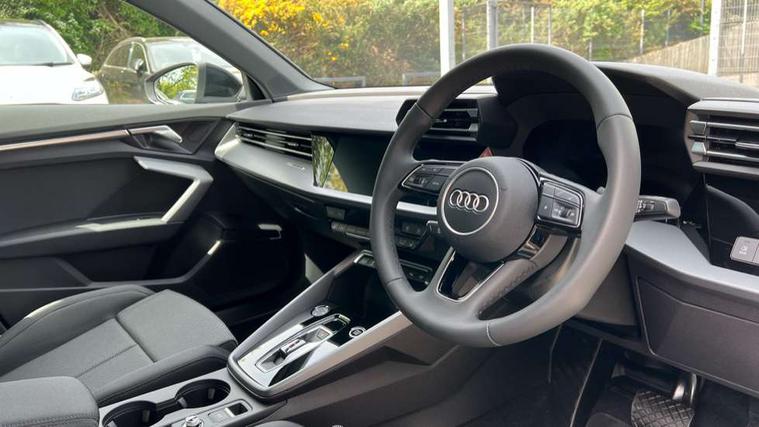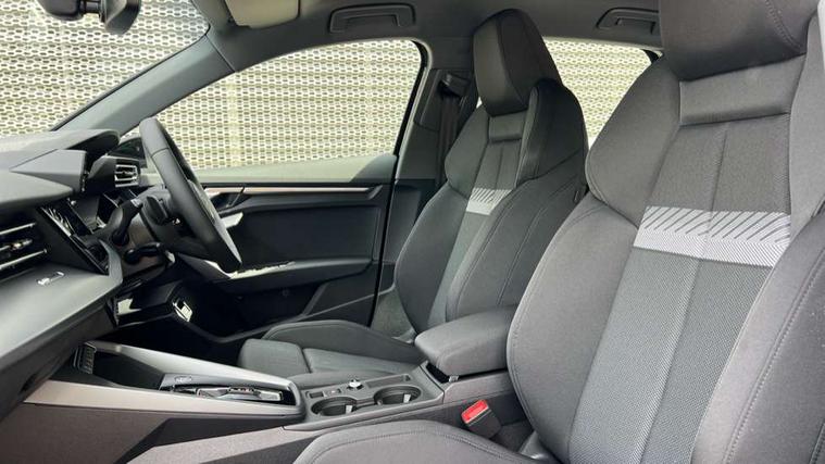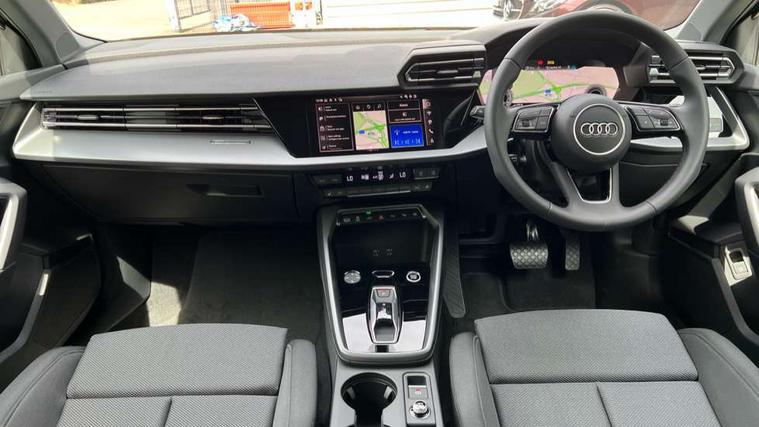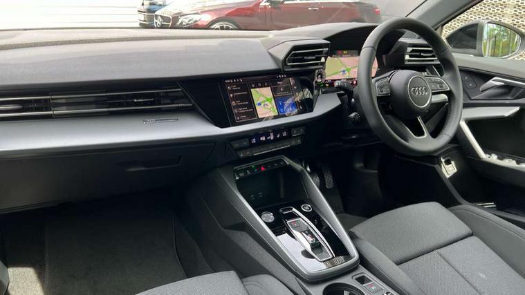 Adjustable speed limiter, Audi drive select, Audi smartphone interface with app store includes wireless Apple carplay, Android auto and Amazon alexa integration, Audi virtual cockpit plus - 12.3" full HD resolution dynamic digital instrument cluster, Automatic start/stop system with recuperation, Bluetooth interface, Camera based traffic sign recognition, Collision avoidance assistant, Cruise control, Distraction and Fatigue warning, e-Call (emergency call), Electromechanical power speed sensitive steering, Emergency assist, Lane departure warning system, MMI Navigation Plus with high resolution 10.1" colour touch screen display, Park Assist with parking system Plus, Service indicator, Trip computer, Voice control system with natural language interaction, 3 pin 10 amp domestic charging cable, CCS socket for DC charging, Charging cable for public charging, mode 3 (type 2), 32 A, Compact charging system, Industrial connector CEE 32 A, 230 V, length 1.6 m, Standard suspension, Type 2 socket for AC charging, Audi Phonebox light with wireless charging, Audi sound system - 10 loudspeakers including centre loudspeaker and subwoofer, DAB Digital radio, USB ports with charging function in the rear, 3rd brake light, Acoustic glass windscreen, Aluminium window trim, Auto dimming frameless rear view mirror, Body colour exterior mirrors, Body colour roof spoiler, Dipped beam, main beam, position light and turning light, Electrically adjustable/heated/folding/auto dimming door mirrors with integrated LED indications + kerb view function for passenger side, Exterior model badging, Front electric windows, Front radiator grill in high gloss dark chrome, Front side air inlets in grained matt black with silver frame, Heat insulating glass windscreen, LED daytime running lights, LED headlights and halogen rear lights, Light and rain sensors, Rear diffuser and grill in grained matt black with silver frame, Rear electric windows, Rear side wing doors, Rear window, rear door windows and rear side windows in clear glass, Rear wiper, 12V socket and storage compartment in front centre console, 3 seat bench in 2nd row, 3 spoke leather multifunction steering wheel with gear shift paddles, 3-zone deluxe automatic air conditioning, 4 way electrically adjustable lumbar support for driver and front passenger, 60/40 split folding rear seat bench, Black front and rear floor mats, Convenience auxiliary air conditioning, Front and rear headrests, Front centre armrest, Front door sill trims with aluminium inlay, Heated front seats, Height and reach adjustable steering wheel, Manual boot compartment lid, Manually adjustable front seats, Routine cloth upholstery with front sports seats, Seat side bolsters, Single front passenger seat, Steel grey cloth headlining, Aluminium interior elements pack - A3, LED interior lighting pack -A3, 3x3 point rear seat belts, Acoustic vehicle alerting system, Driver and front passenger airbag with passenger airbag deactivation, Electronic Stabilisation Control (ESC) including ABS, ASR and EDL, First aid kit with warning triangle and 2 safety vests, Front side airbags with head airbags and interaction airbag, Hill hold assist, Pre-sense front with pedestrian and cyclist detection, Seatbelt monitoring, Tyre pressure loss indicator, Anti theft alarm, Anti-theft wheel bolts, Electronically operated child locks, Immobiliser, Remote central locking with safelock, Black dashboard, Inlays in volcano grey fine paint finish, Tyre repair kit,