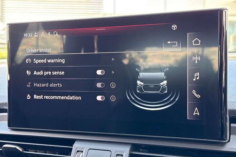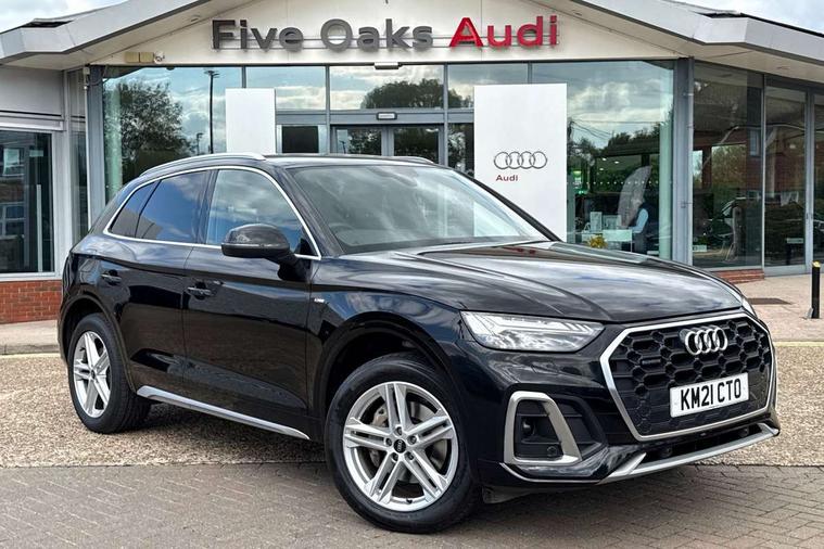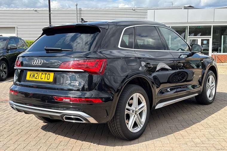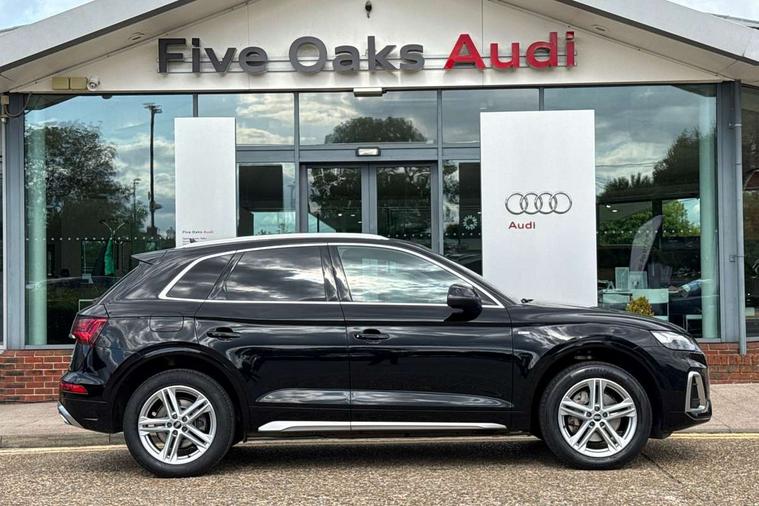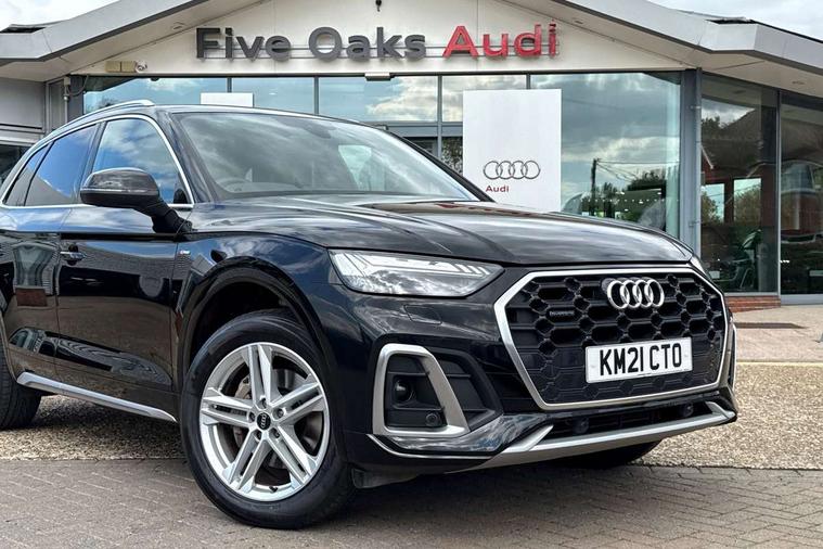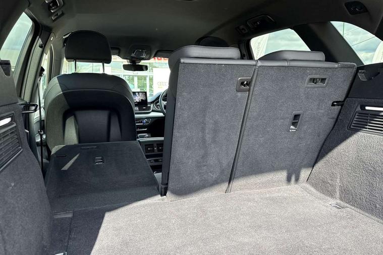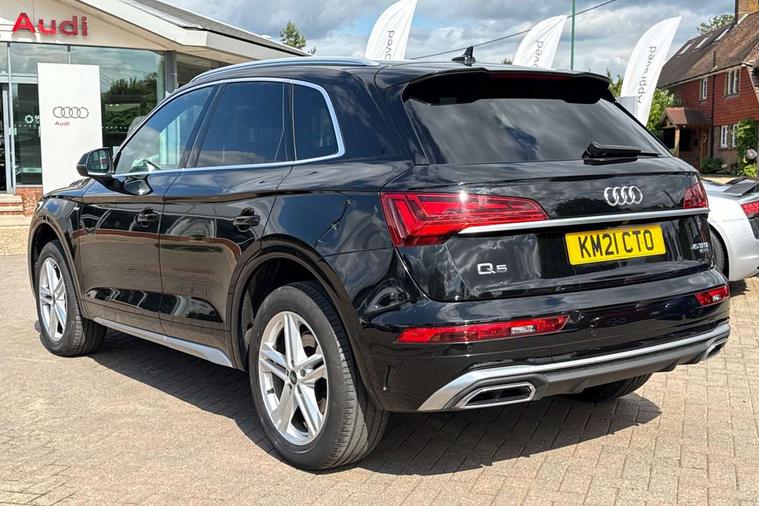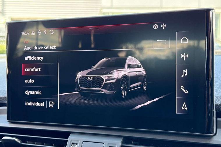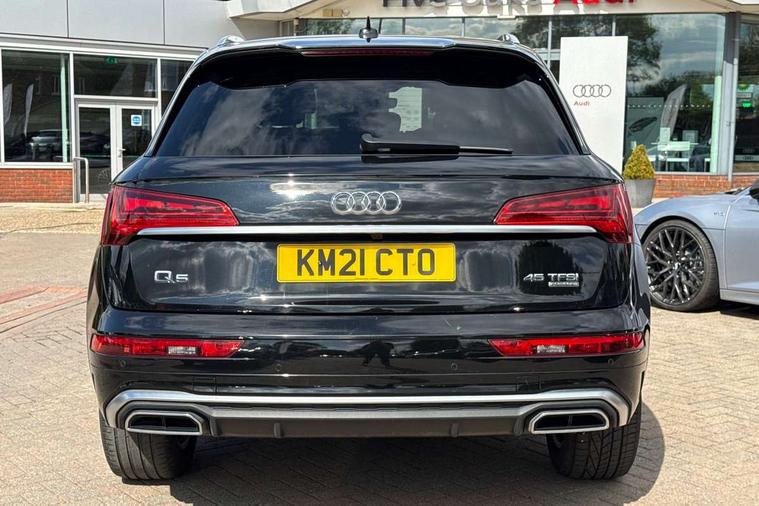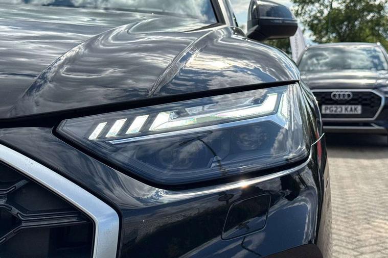 Audi connect safety and service (e-call), Audi connect with Amazon Alexa Integration, Audi drive select, Audi virtual cockpit plus with 12.3" screen and three different layout designs, Audi wireless smartphone interface, Automatic start-stop system with coasting functionality and efficiency programme, Bluetooth interface, Electro - mechanical power assisted steering, MMI navigation plus with 10.1" touch screen, Power tailgate, Reversing camera, Service interval indicator, Voice control system with Audi hotword activation "Hey Audi", Quattro on demand, S line sports suspension, DAB Digital radio, Acoustic windscreen, Aluminium roof rails, Audi matrix LED headlights with dynamic front and rear indicators, Auto dimming rear view mirror, Automatic headlights and windscreen wipers, Body colour bumpers, Body colour door mirrors, Body colour rear diffuser with matt aluminium silver surrounds, Body colour underbody protection, Chrome plated exhaust trims, Door sills in Selenite silver, Electric adjustable/heated/folding door mirrors, Front air inlet surrounds in aluminium, Front and rear electric windows, Front radiator grille in honeycomb design, Headlight washers, Lower bumpers painted in contrast Manhattan grey, Rear chrome trim strip below lights, Rear privacy glass and rear side windows, Rear spoiler, Rear wiper, Roof bars, S Line badges on the front wings, S Line front and rear bumpers, S Line side skirts, 2 x USB charging port with aux input socket, 3 rear headrests, 40:20:40 split folding rear seat with rear centre armrest, Black cloth headlining, Comfort front centre armrest, Contrast stitching on seats, steering wheel and gear lever gaiter, Deluxe 3 zone electronic climate control, Front/rear floor mats, Gear lever in black leather, Heated front seats, Height adjustable front head restraints, Height/reach adjustable steering column, Illuminated door sill trims with S logo, ISOFIX child seat mounting and top tether, Luggage compartment cover, Manual seat adjustment with 4-way electric lumbar support, Removable luggage compartment floor, Stainless steel pedals, Sunvisors with vanity mirrors, High gloss pack - Q5, LED interior light pack - Q5, 3 point seatbelts on all seats, 6 airbags - Driver, front passenger, curtain and side airbags, Electrically operated child locks on rear doors, Electromechanical parking brake, Electronic stabilisation control including ABS, ASR and EDL, Front passenger airbag deactivation, Hill descent control, Hill hold assist, Multi collision brake assist, Pop-up bonnet for pedestrian protection, Pre sense city, Seat belt force limiter, Seatbelt monitoring, Tyre pressure warning, Warning triangle and first aid kit, Anti theft alarm, Anti-theft wheel bolts, Keyless Go access/ignition system, Matt brushed aluminium inlays,