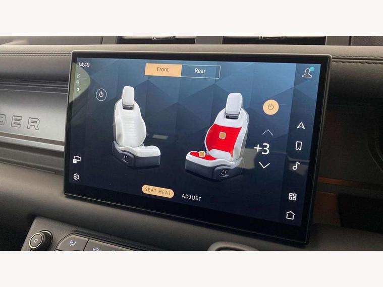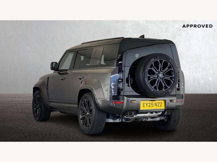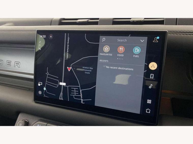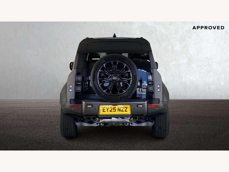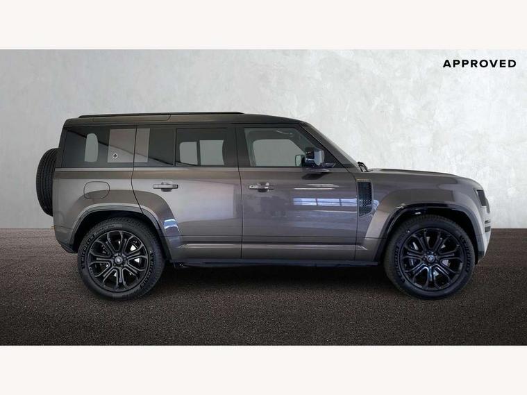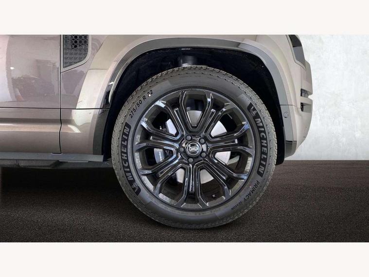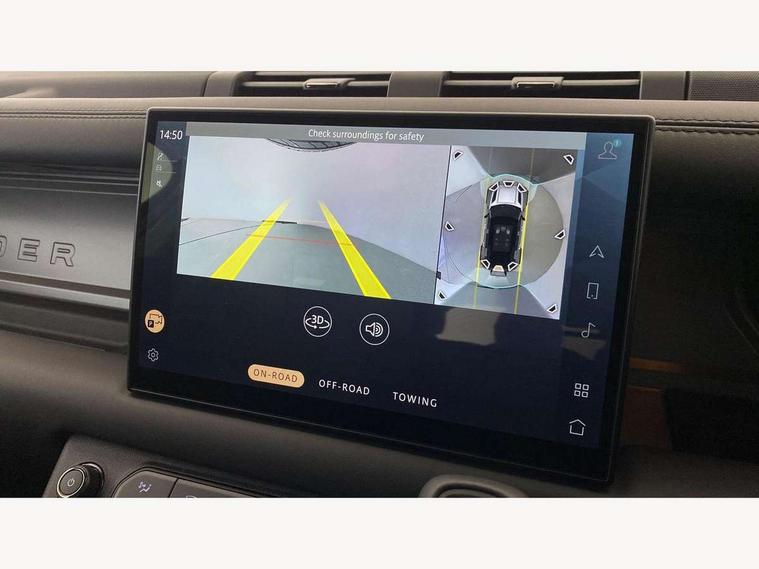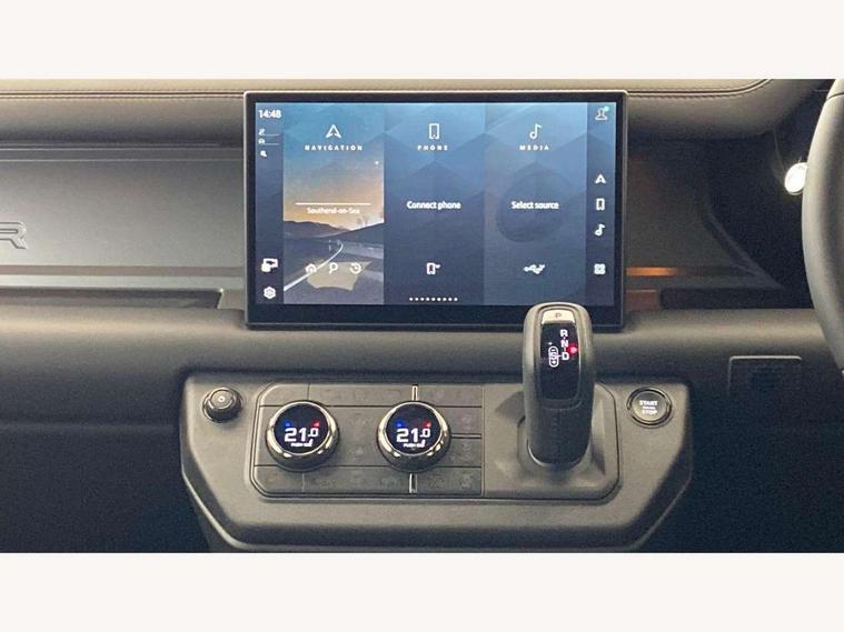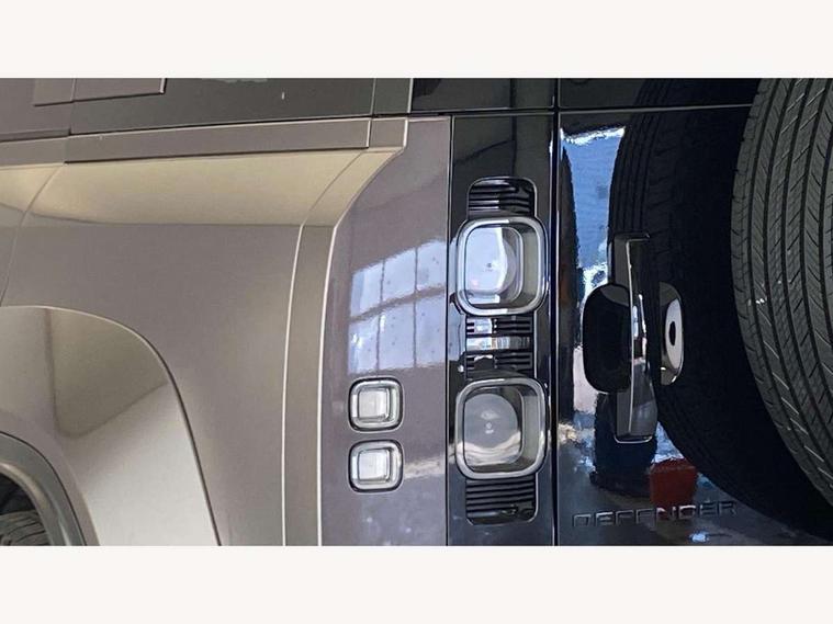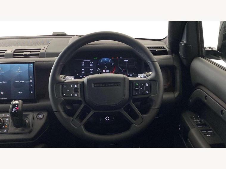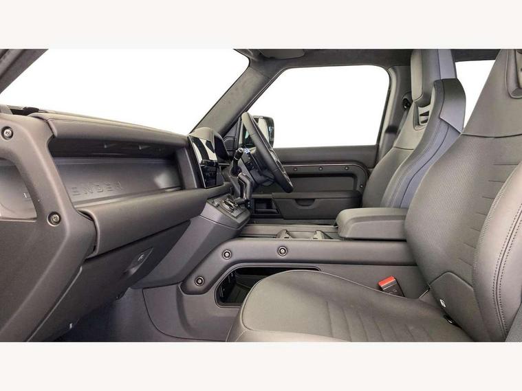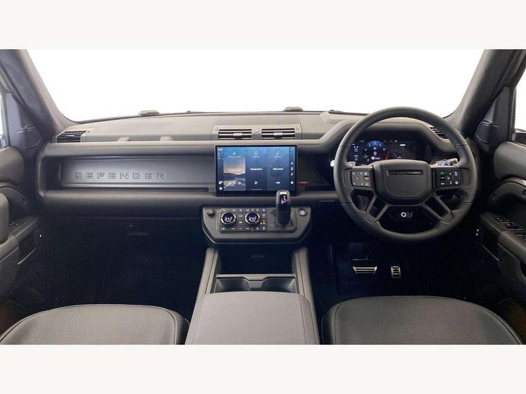 1 x USB-C (power only) & 1 x USB-C (power & data) in Row 1, 2 x USB-C in Row 2, 11.4" touchscreen, 360 degree parking aid, 3D Surround Camera with 360 View, 180 Rear View, Front Traffic Detection, Forward Vehicle Guidance, Tow Hitch Assist and clear sight Ground View, Adaptive cruise control, Android Auto, Apple CarPlay, Blind spot assist, Bluetooth system, Brake pad wear indicator, Clear exit monitor, Configurable programs, Connected navigation pro, Driver condition monitor, Electric power assisted steering (EPAS), Garage door opener (Homelink), Head up Display, Interactive driver display, Lane keep assist, Push button start, Rear collision monitor, Rear traffic monitor, Traffic sign recognition with adaptive speed limiter, Trip computer, Wade Sensing, Wireless device charging, 6D Dynamics, 8 speed automatic transmission, All terrain progress control, All wheel drive system, Electronic active differential with brake torque vectoring, Terrain Response 2 with dynamic program, Twin speed transfer box, DAB Radio (Digital Audio Broadcasting), Meridian 700w surround sound audio system with 15 speakers, Pivi pro connected, Advanced tow assist, Automatic headlight levelling, Automatic headlights, Black contrast roof, Black contrast tail door, ClearSight interior rear view mirror, Darkened LED tail lights, Electric heated/power fold door mirrors with approach lights and auto dimming driver side, Electric windows with one touch open/close and anti-trap, Follow me home lighting, Front fog lights, Graphite front undershield, Headlamp power wash, Heated rear window with timer, Heated washer jets, Heated windscreen, Illuminated metal treadplates with brand name script, LED 3rd brake light, Matrix LED headlights with signature DRL, Octa badge, Phosphor bronze exposed rear recovery eyes, Privacy glass, Puddle lights, Rain sensing windscreen wipers, Rear fog lights, Rear side wing doors, Rear wiper, Satin black exhaust finisher, Side hinged tailgate, Signature graphic (with interior storage), Sliding panoramic roof, Solar attenuating windscreen, Trailer stability assist, 12V power socket in loadspace, 14 way heated and cooled electric memory performance front seats, 3 seat bench in 2nd row, 40:20:40 folding, heated rear seats with centre armrest, Air quality sensor, Alpine lights, Body and soul seat, Bright metal pedals, Cabin Air Purification plus, Configurable cabin lighting, Domestic plug socket, Durable rubber cabin flooring, Durable rubber loadspace flooring, Edge illuminated paddle shifters, Electric cabin pre conditioning, Electric reach + rake adjustable steering column, Electrically adjustable steering column, Footwell lights, Front centre console refrigerator compartment, Front head restraints, Front passenger isofix child seat attachment, Heated steering wheel, Loadspace cover, Loadspace Hook, Multifunction steering wheel, No flat load floor storage, Overhead stowage for sunglasses, Rear headrests, Rear ISOFIX, Rear reading lights, Signature carpet mats, Signature interior upgrade, Single front passenger seat, Soft close tail door, Standard seat configuration, Storage glovebox, Sunvisors with illuminated vanity mirrors, Three-zone Climate Control with Rear Cooling Assist, Twin front cupholders, Non-smoker package, Online pack with data plan - Defender, Satin moonlight exterior pack - Defender, 5 x 3 point seatbelts, ABS, Black brake calipers, Brake hold function, Cornering brake control (CBC), Cross car beam in metallic grey powder coat brushed finish, Customer configurable autolock, Driver and passenger airbags, DSC - Dynamic Stability Control, EBD - Electronic brakeforce distribution, Electric parking brake (EPB), Emergency brake assist, Emergency braking, ESP + traction control, Front airbags with passenger seat occupant detector, HDC - Hill descent control, Hill launch assist, Low traction launch, Power operated child locks, Remote for (e-Call, Optimised assistance call, InControl app, Climate, beep and flash and door), RSC - Roll stability control, Seat belt reminder, TPMS (Tyre pressure monitoring system), Alarm, Immobiliser, Intrusion sensor, Keyless entry, Locking wheel nuts, Secure tracker pro,